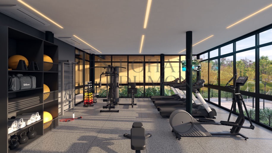 Academia completa e áreas verdes planejadas.