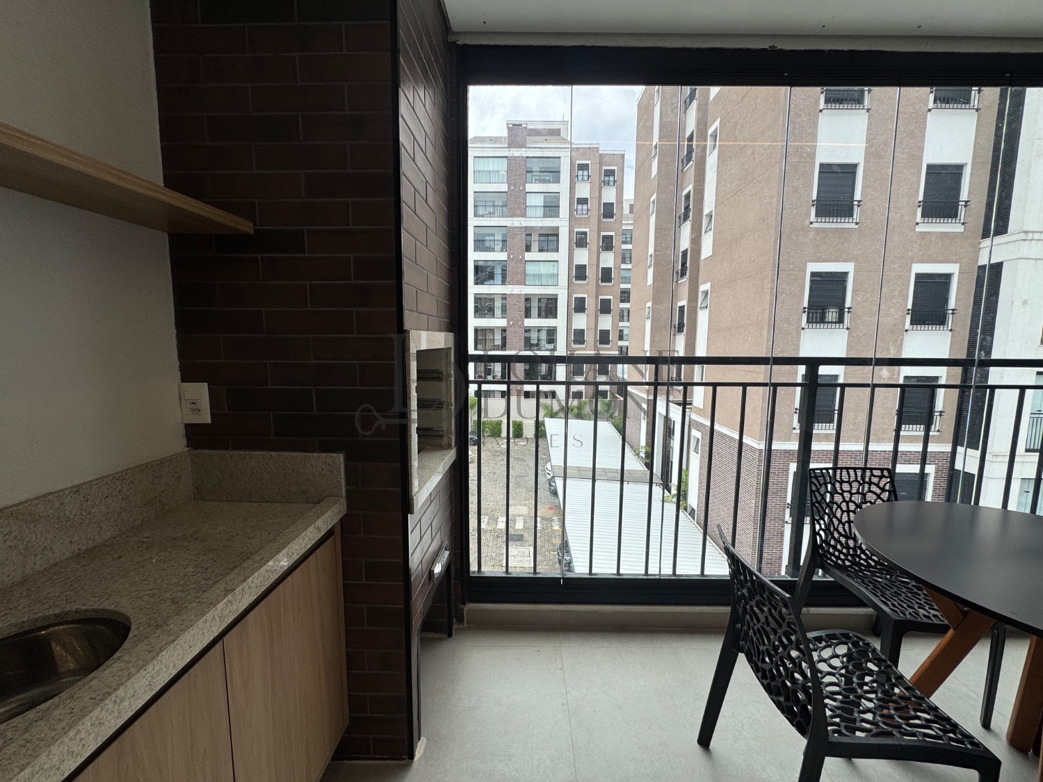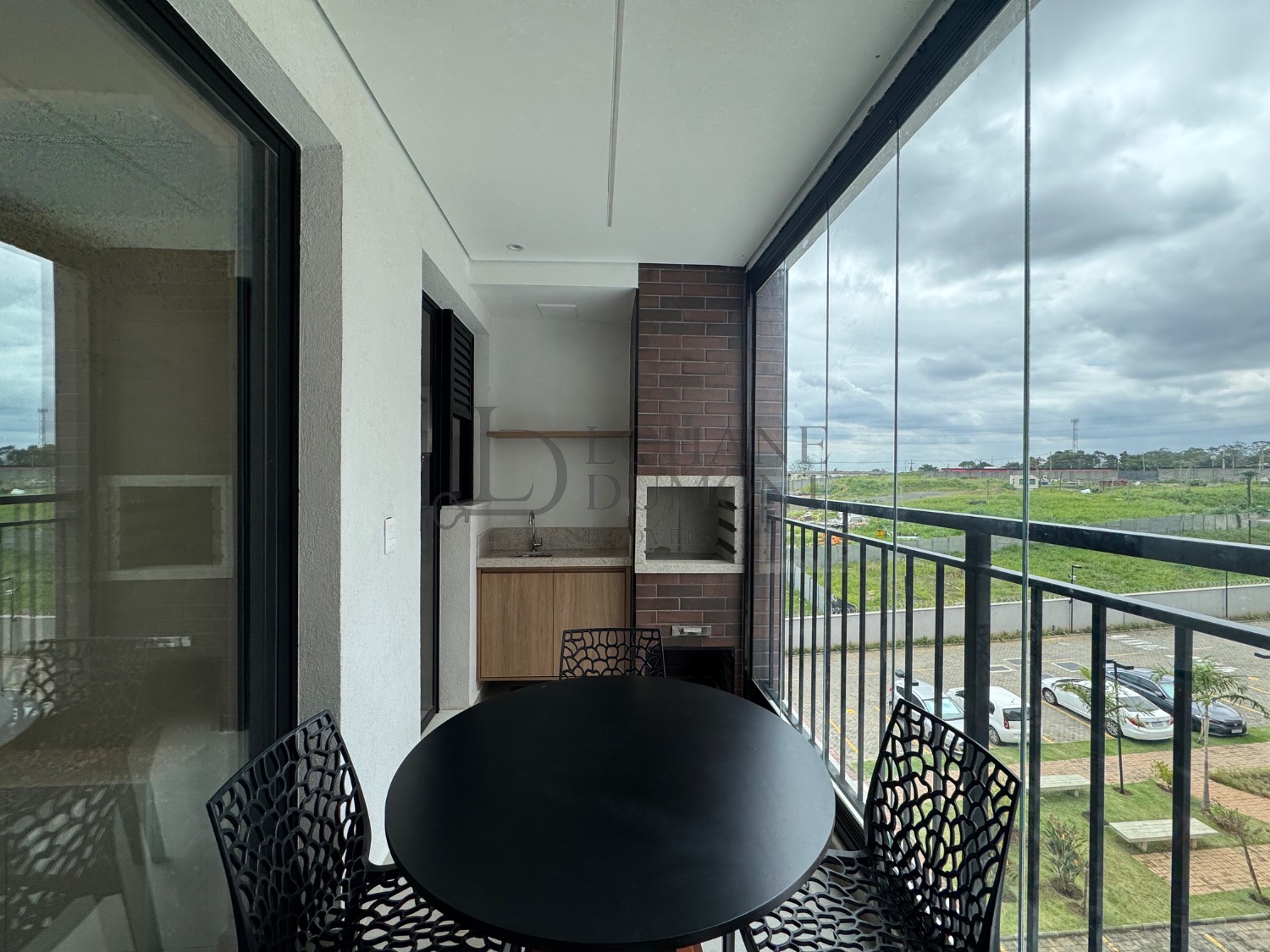 A varanda integrada, com churrasqueira, amplia o espaço social e é perfeita para momentos de lazer e convivência.