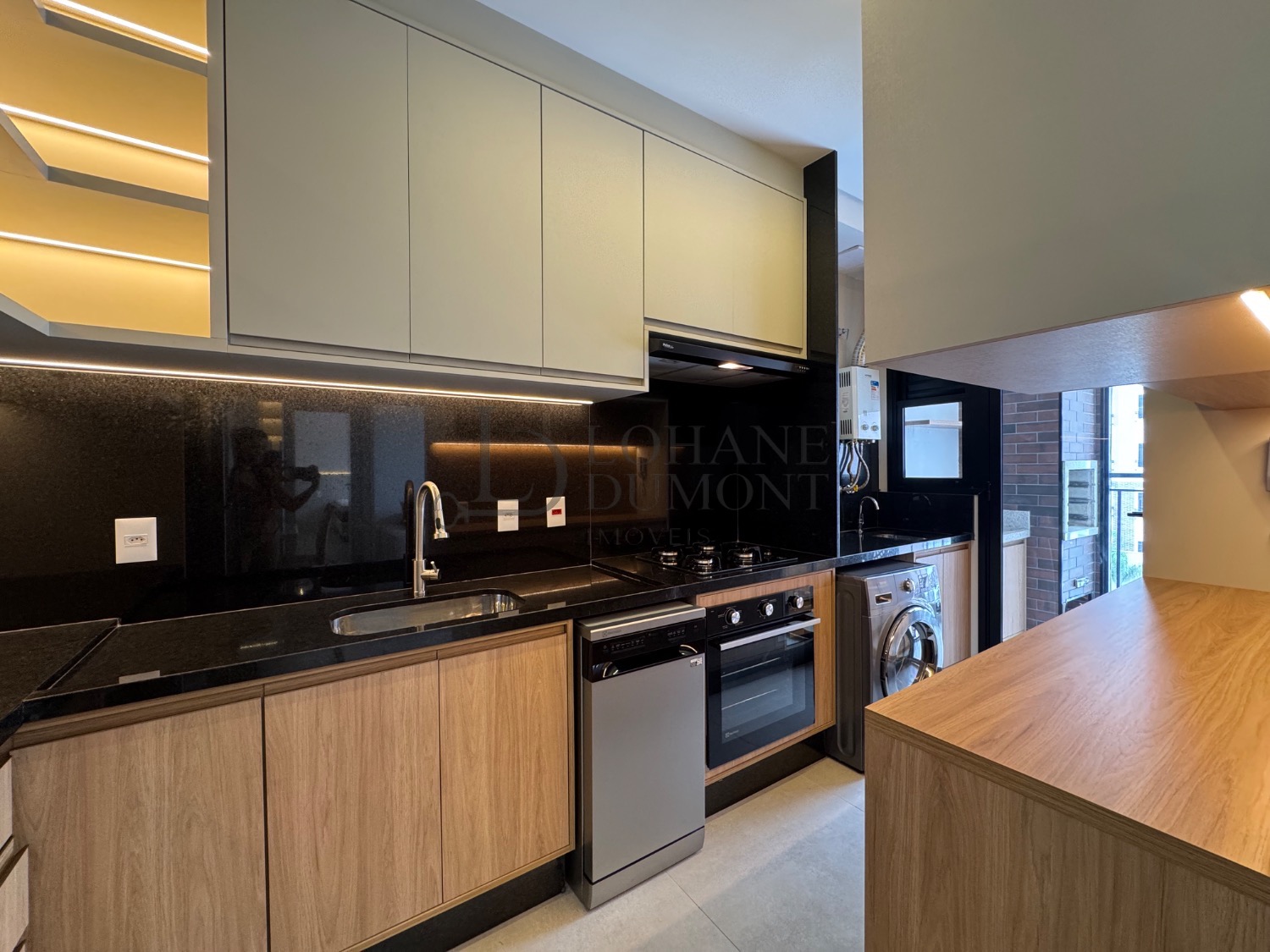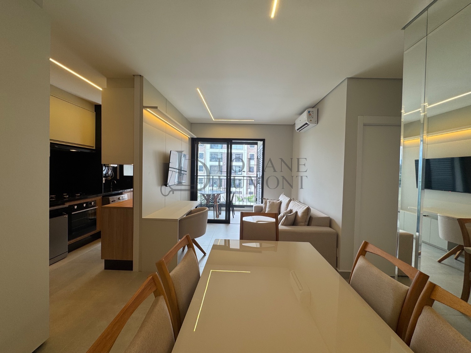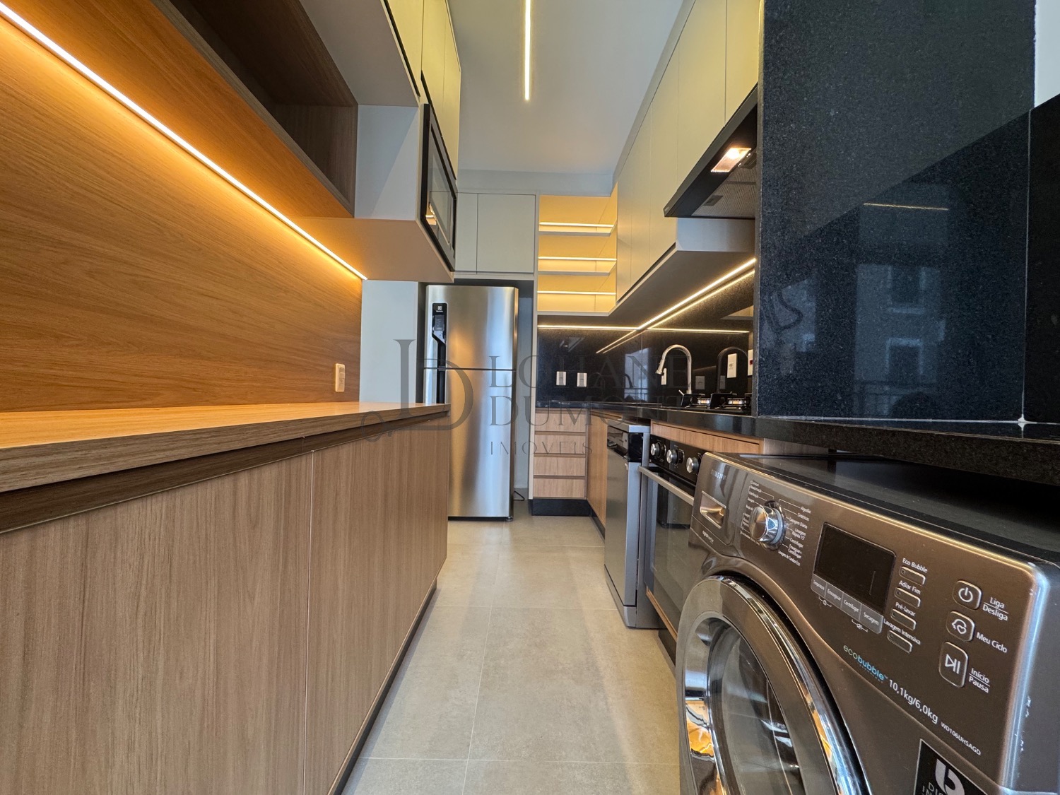O imóvel é mobiliado, com marcenaria completa, iluminação em LED, ar-condicionado, aquecimento a gás, gás encanado e eletrodomésticos novos, oferecendo praticidade e comodidade para quem busca um apartamento pronto para morar.