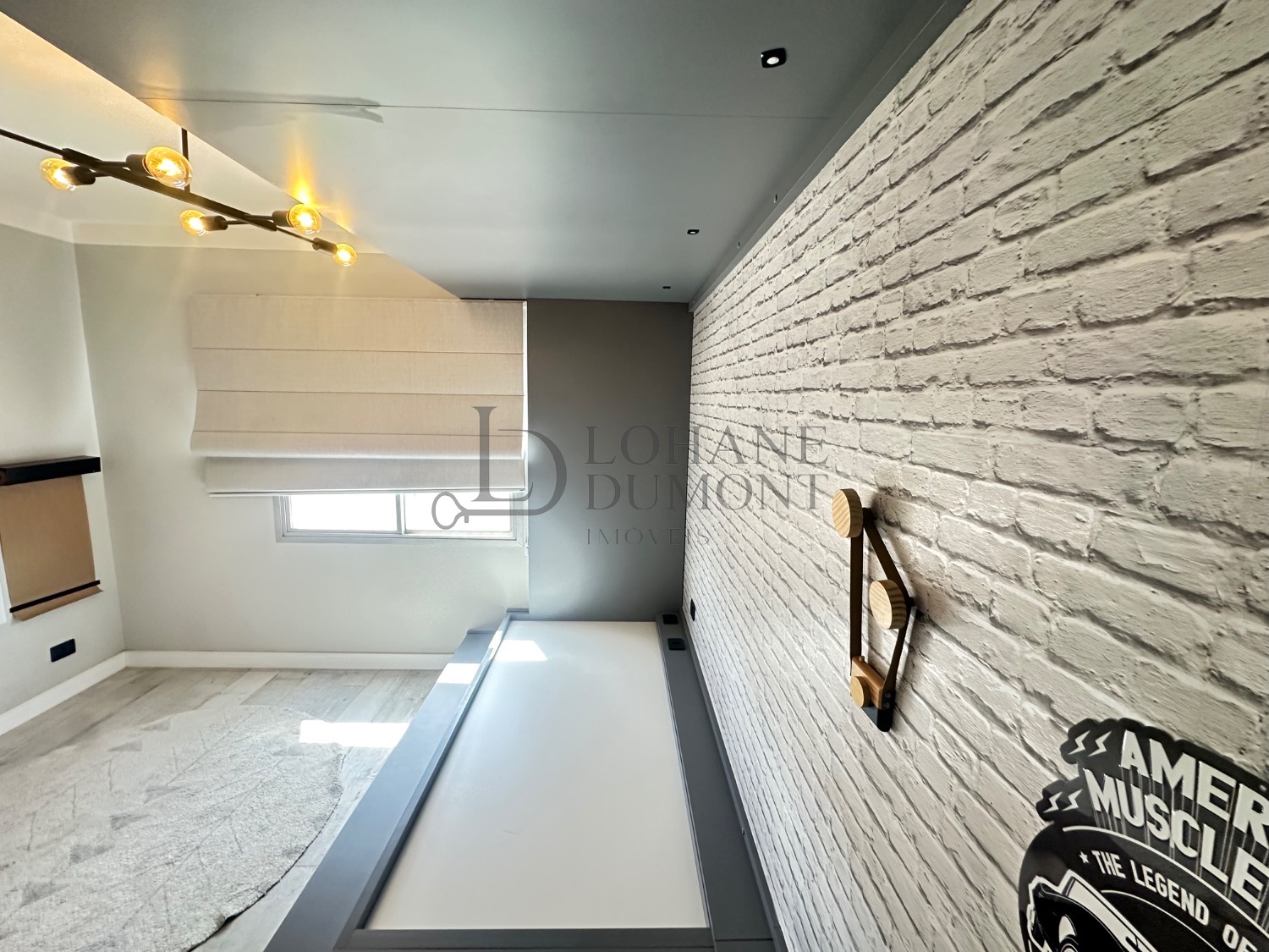 Na área íntima, o imóvel oferece 3 dormitórios, sendo 1 suíte espaçosa, todos com marcenaria planejada e ar-condicionado instalado em todos os ambientes, proporcionando conforto térmico em qualquer estação.