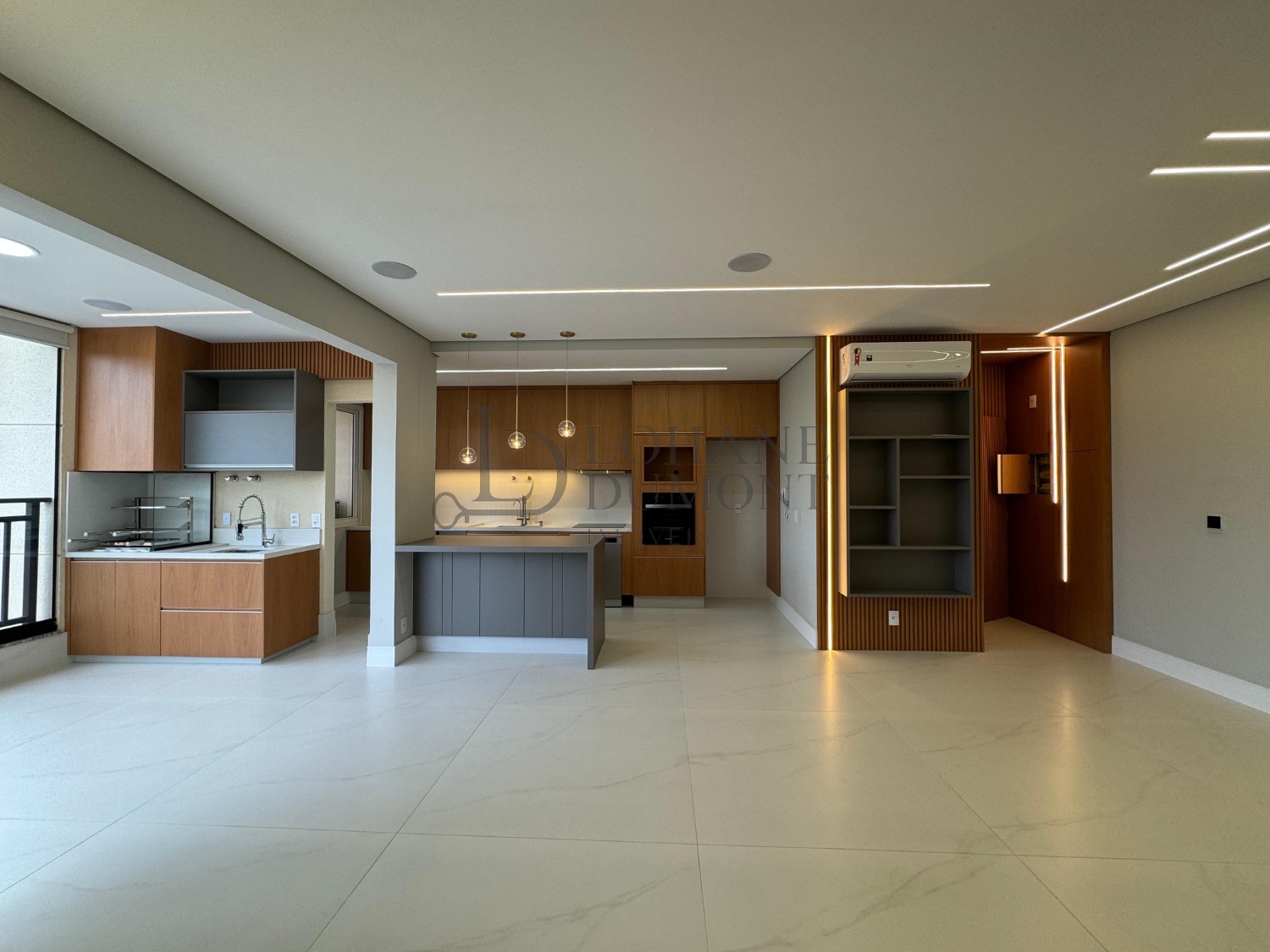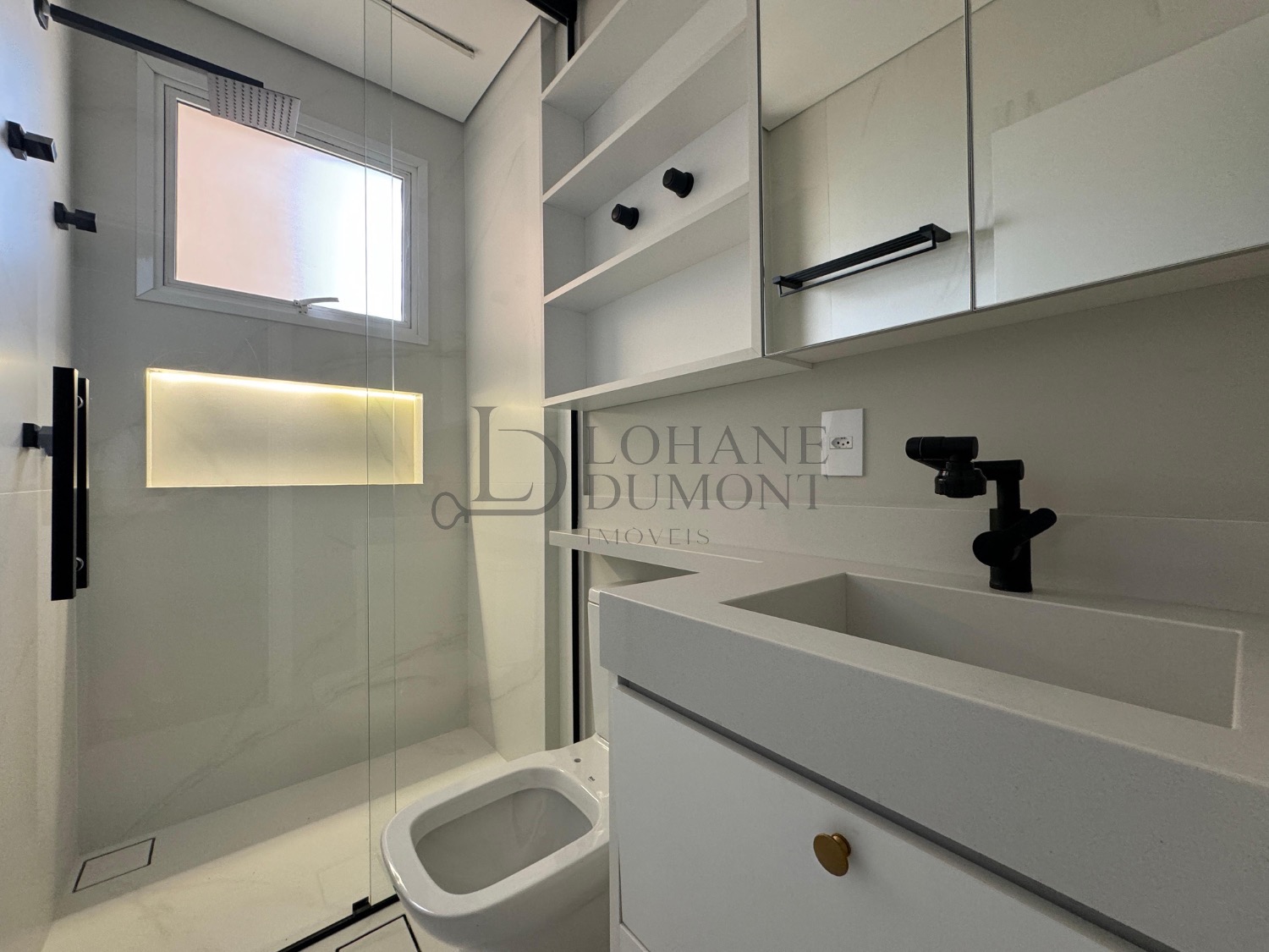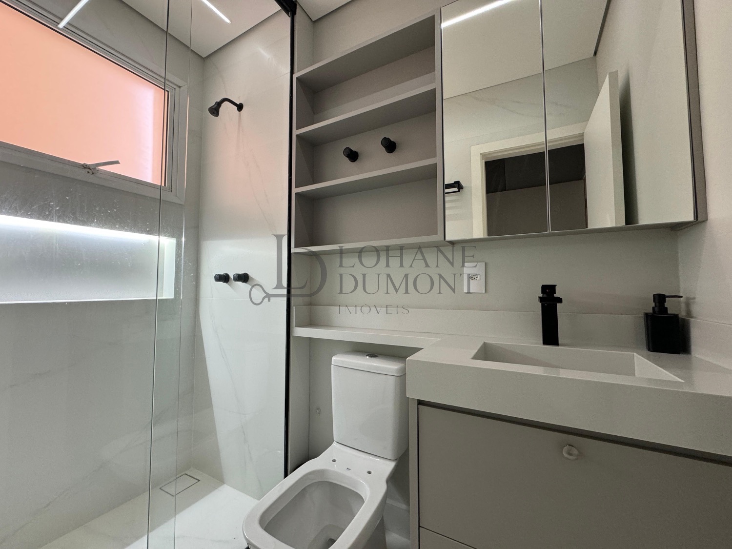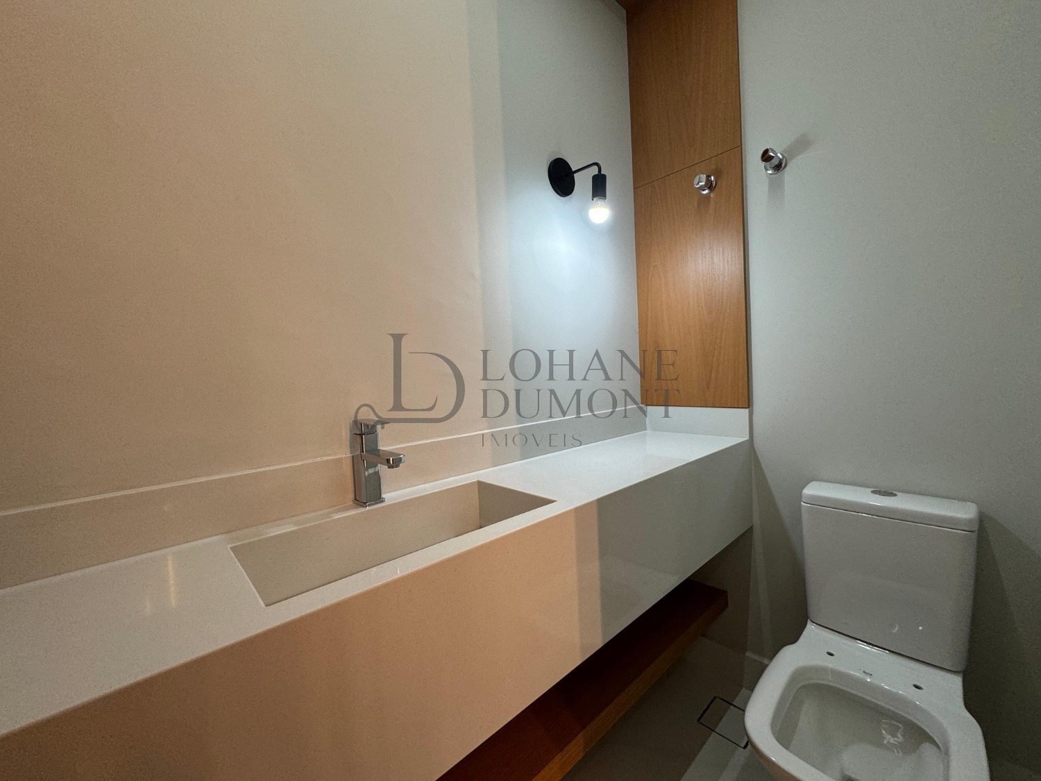O apartamento conta com duas suítes, sendo uma delas reversível, oferecendo versatilidade para diferentes necessidades, além de lavabo e área de serviço funcional. Os acabamentos são de alto padrão, reforçando a sofisticação do imóvel e garantindo conforto em todos os ambientes.
