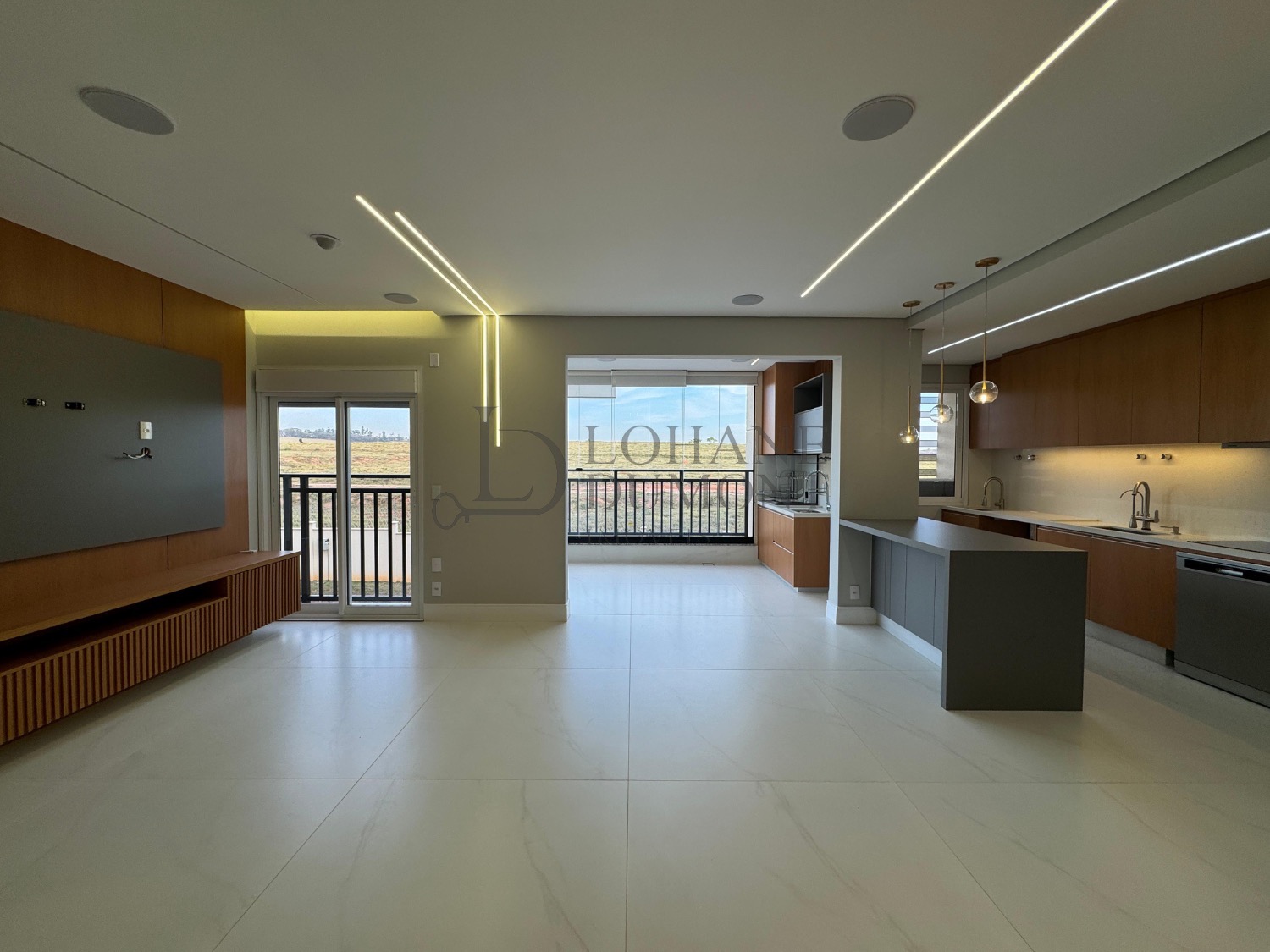 A área social possui layout de sala estendida, proporcionando maior sensação de amplitude e integração entre estar e jantar, conectados de forma harmoniosa à cozinha integrada, criando um ambiente acolhedor e contemporâneo.