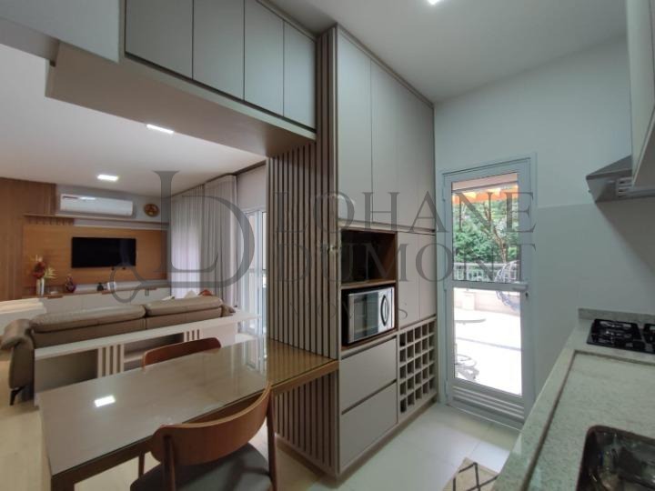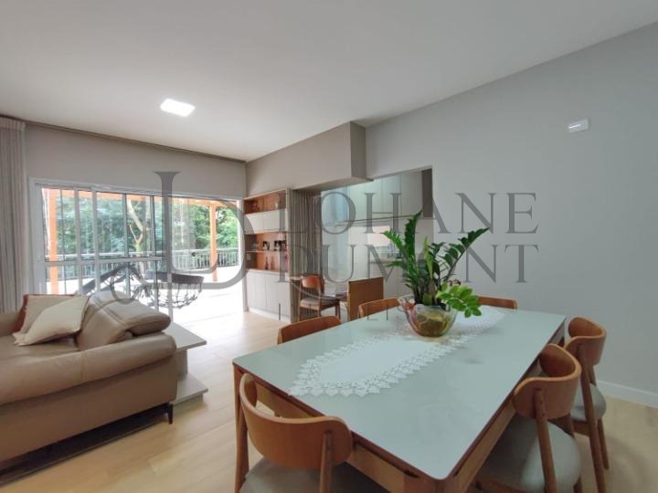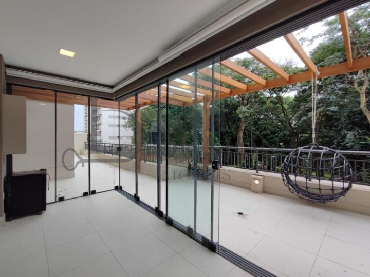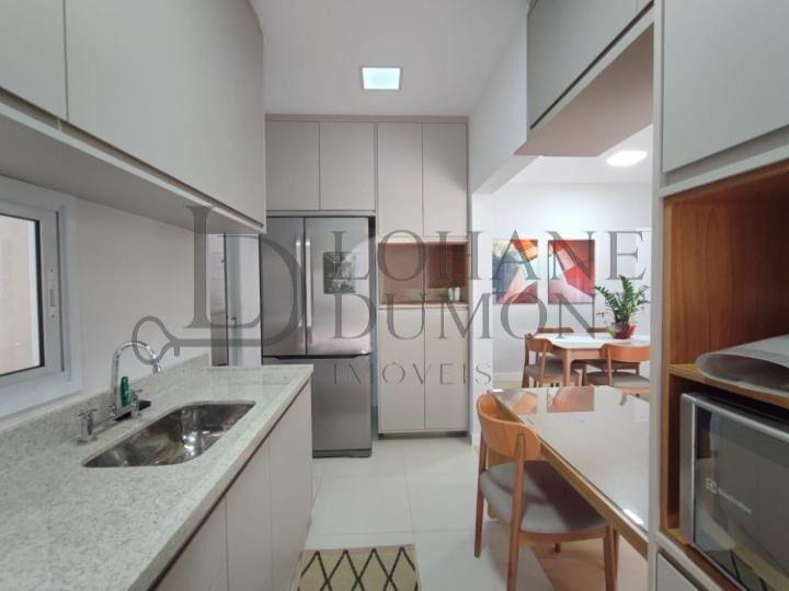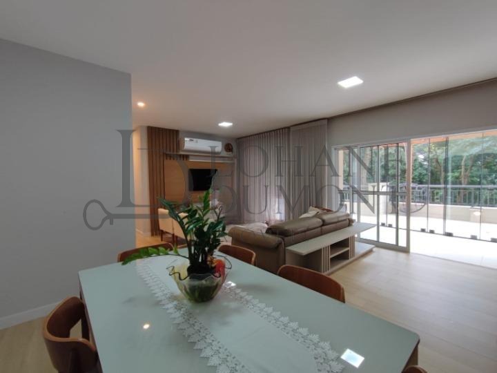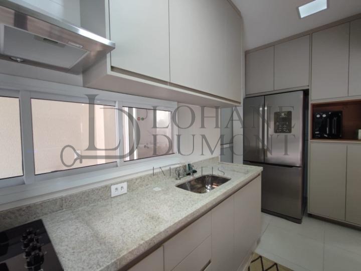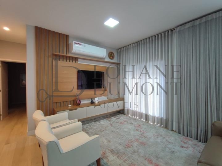 São 3 suítes com ar condicionado, sala estendida para 3 ambientes, lavabo, cozinha totalmente planejada, área de serviço com despensa e 2 vagas de garagem cobertas.
