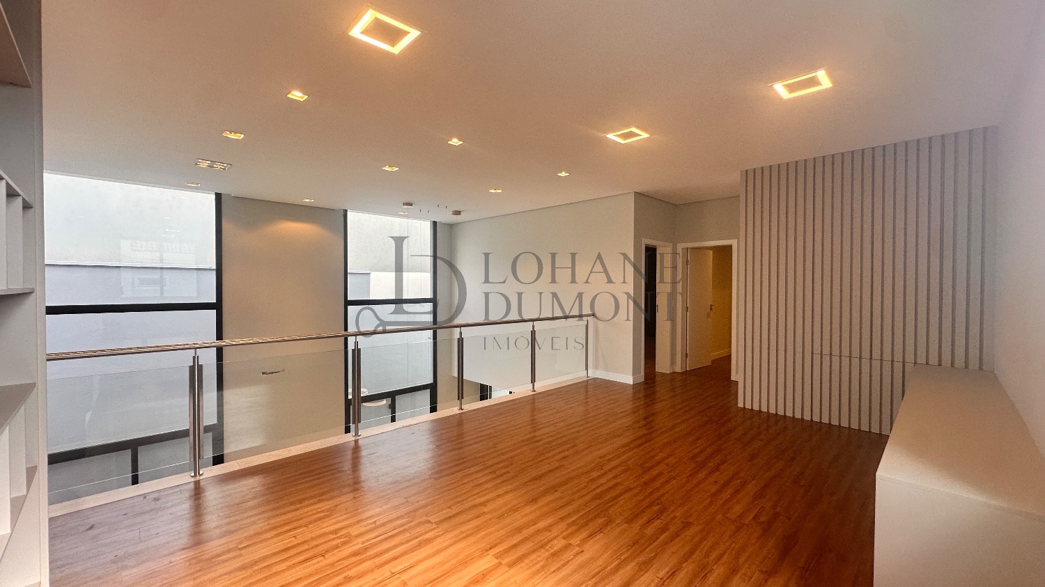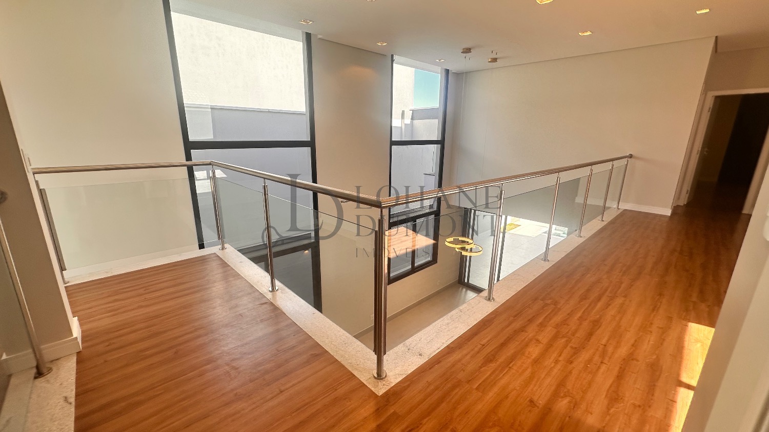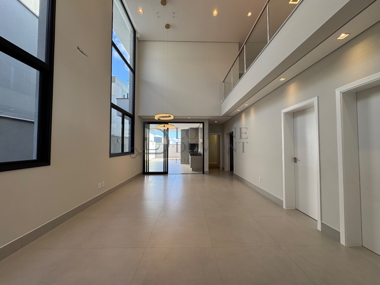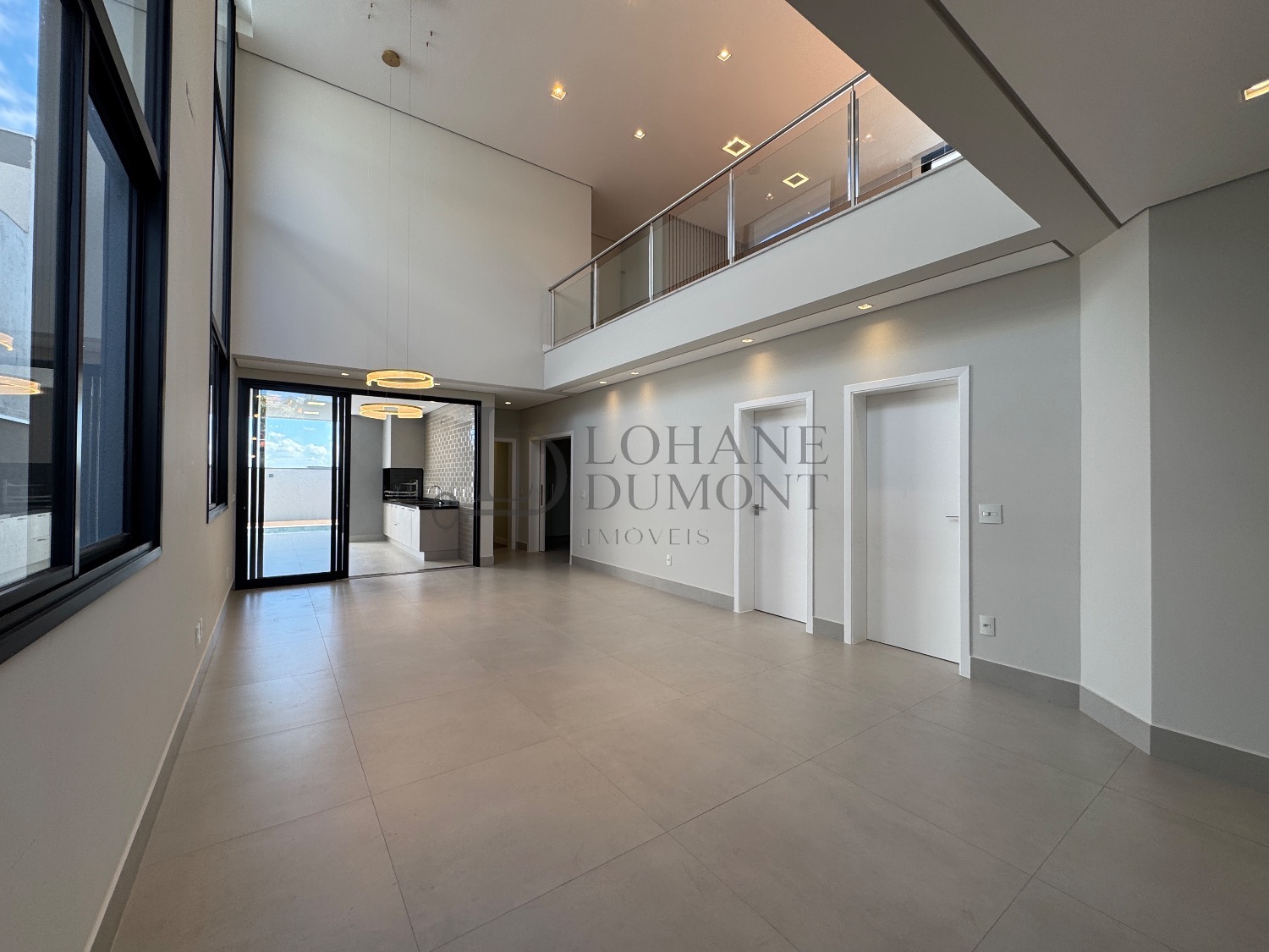 O destaque imediato é o living com pé-direito duplo, que conecta sala de estar e jantar em um ambiente amplo, elegante e naturalmente iluminado, valorizado por iluminação em LED e excelente circulação de ar.