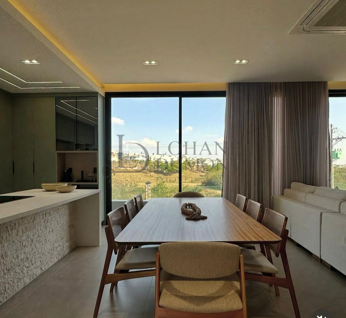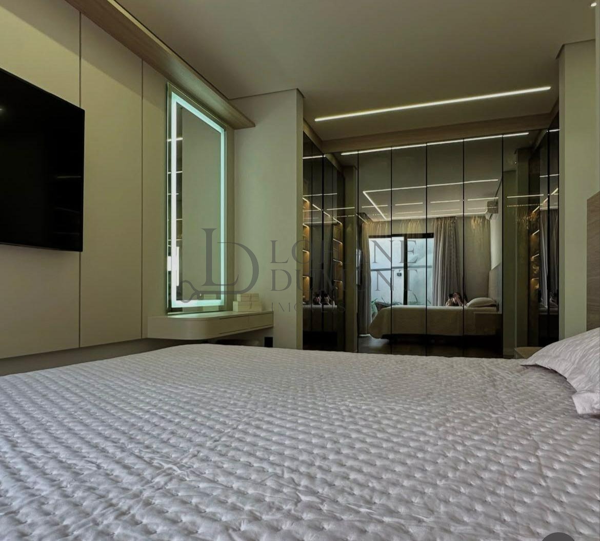O imóvel oferece cinco suítes amplas, todas climatizadas, além de um escritório planejado, ideal para quem busca um espaço funcional para o dia a dia. A área social conta com um living imponente com pé-direito duplo, trazendo ainda mais iluminação natural e sensação de amplitude, integrado à cozinha americana e à área gourmet, criando um ambiente perfeito para receber convidados. Dispõe também de lavabo e lavanderia independente, garantindo praticidade na rotina.