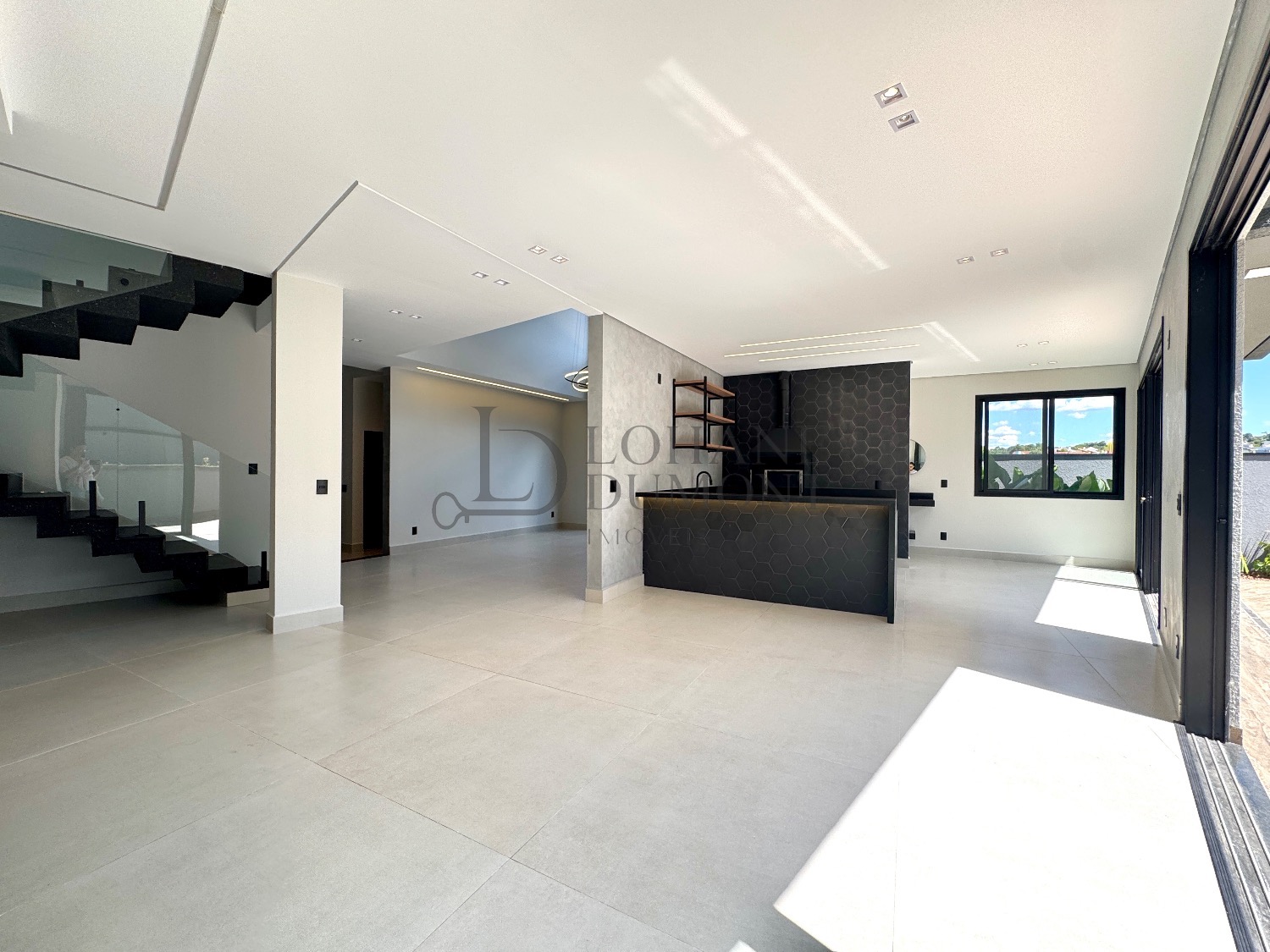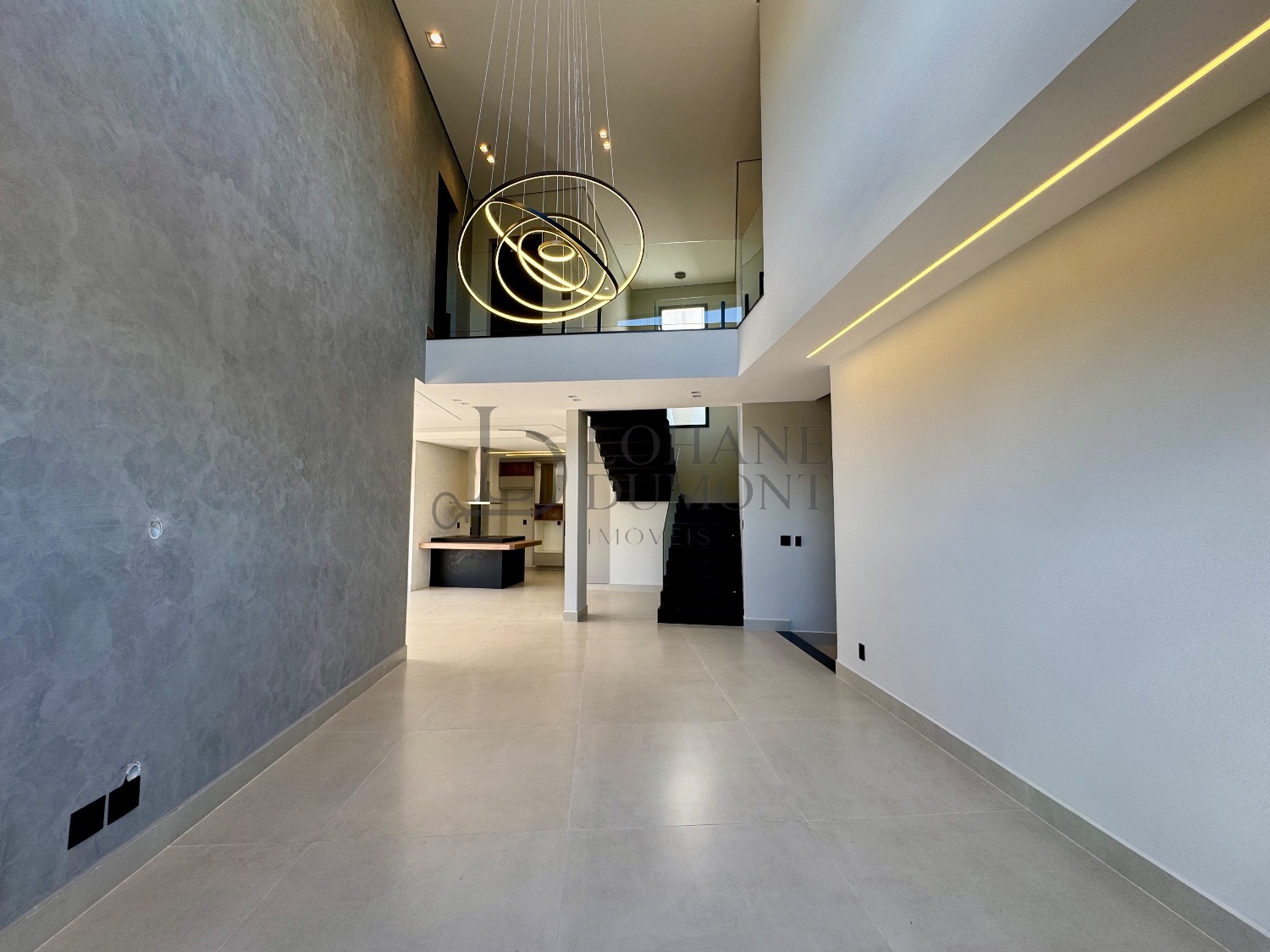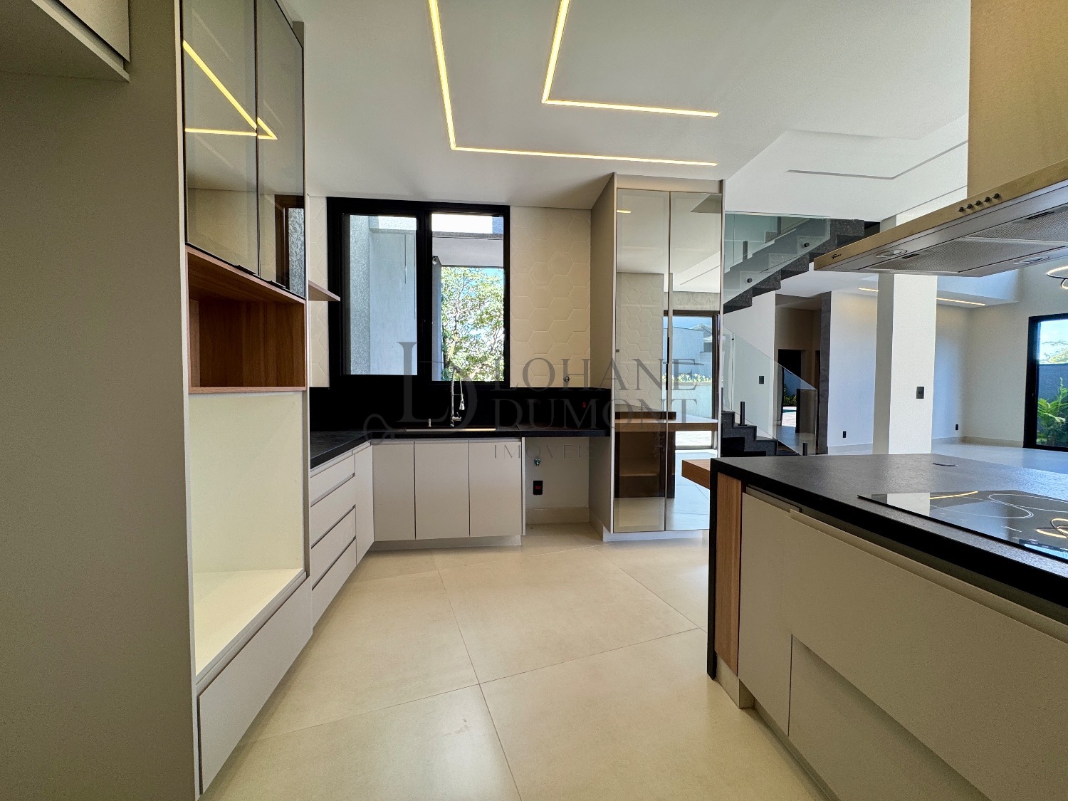 No pavimento térreo, os ambientes são amplos e totalmente integrados, com salas de estar e jantar que se conectam de forma harmoniosa à cozinha planejada, rica em armários. O imóvel conta ainda com escritório, que pode ser facilmente convertido em uma quarta suíte, além de lavabo, lavanderia funcional e despensa, garantindo praticidade no dia a dia.