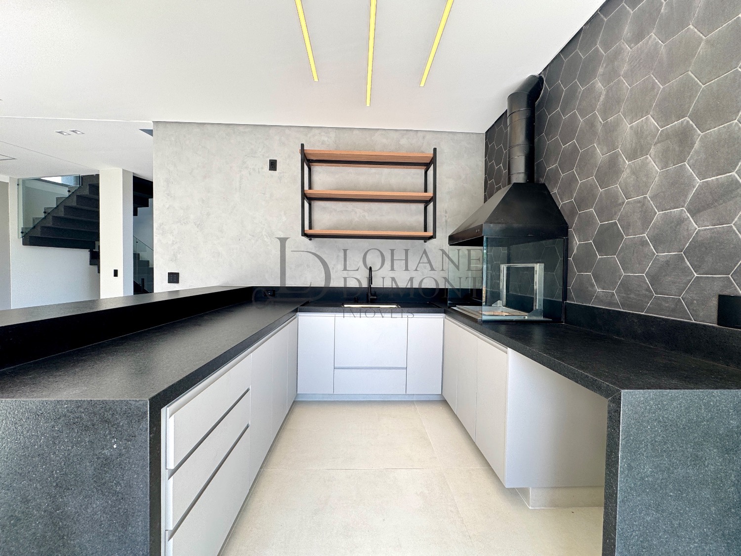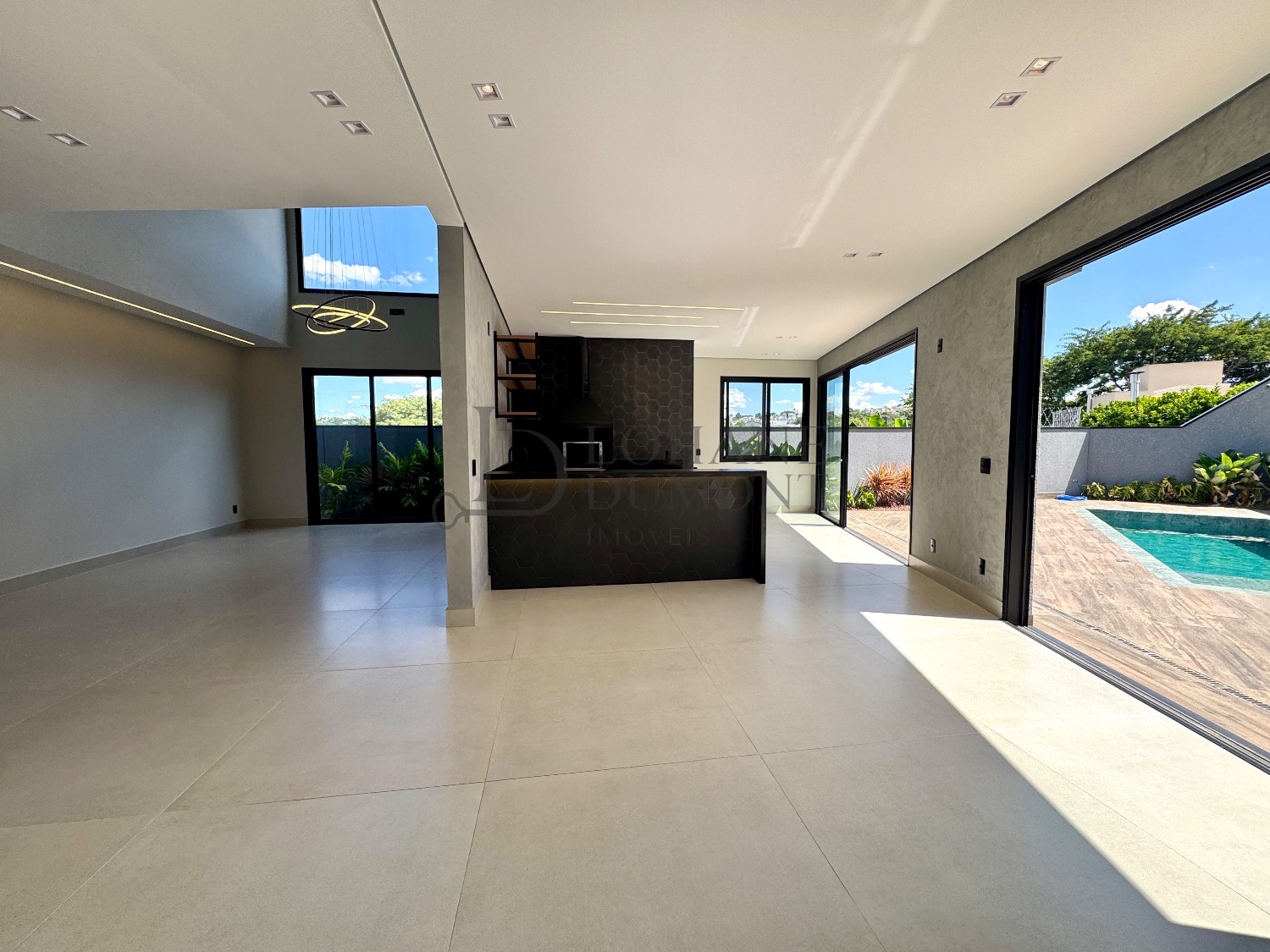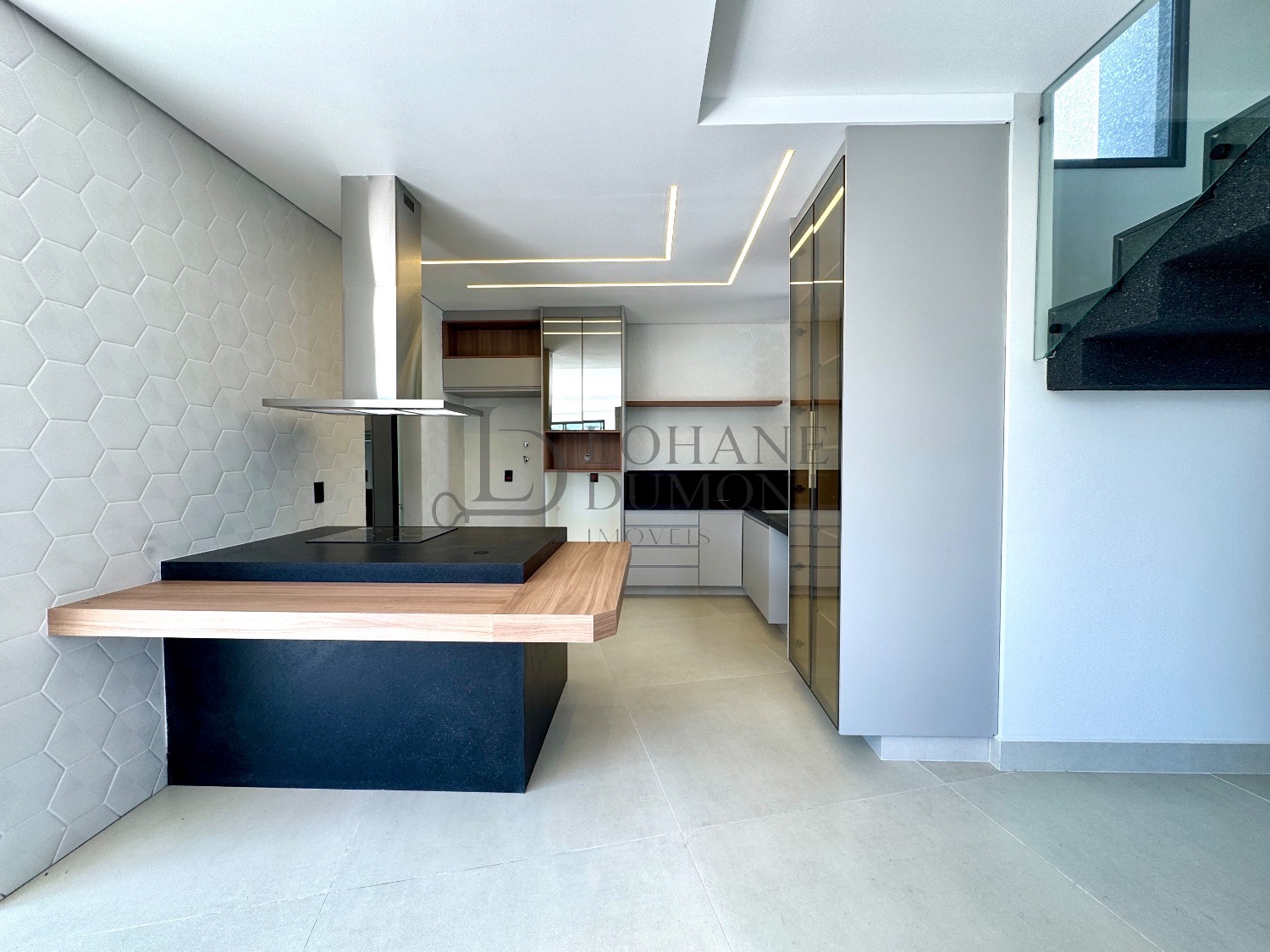 No pavimento térreo, os ambientes são amplos e totalmente integrados, com salas de estar e jantar que se conectam de forma harmoniosa à cozinha planejada, rica em armários. O imóvel conta ainda com escritório, que pode ser facilmente convertido em uma quarta suíte, além de lavabo, lavanderia funcional e despensa, garantindo praticidade no dia a dia.