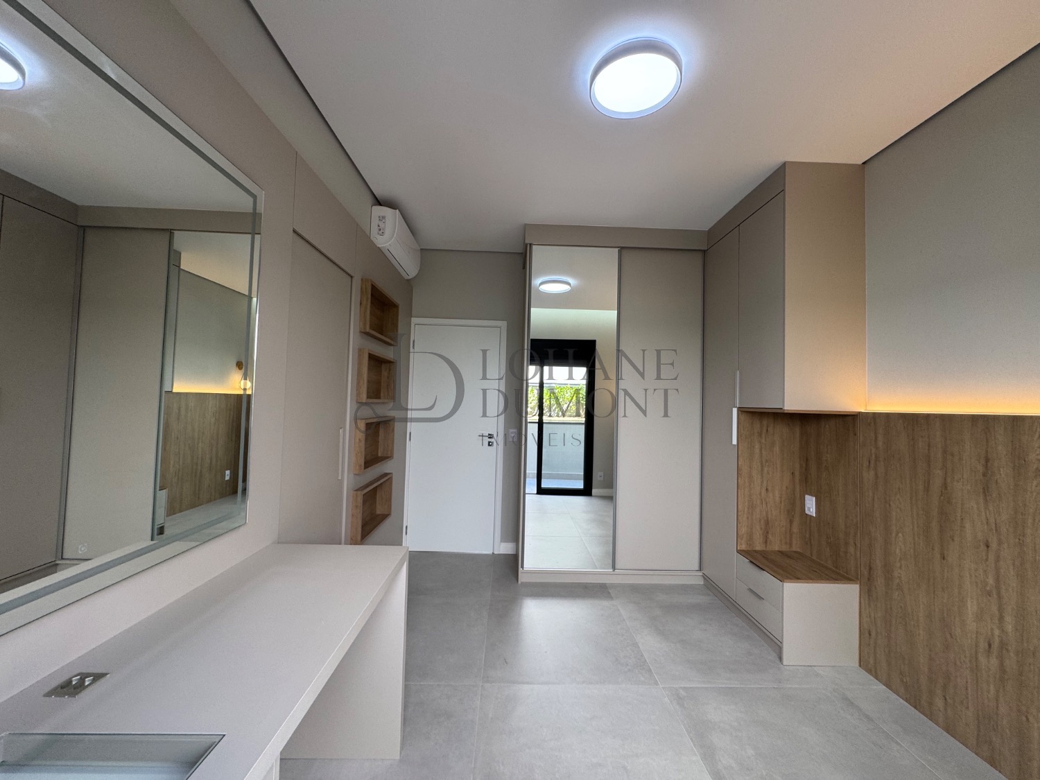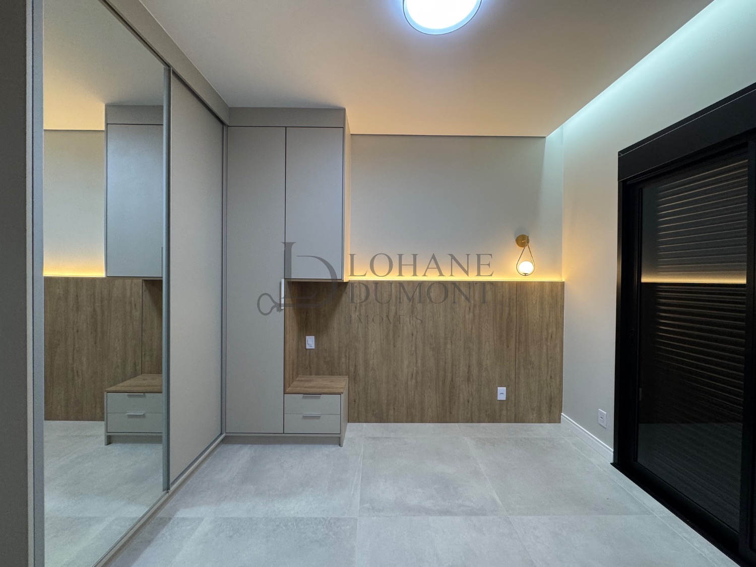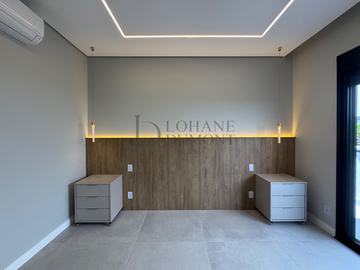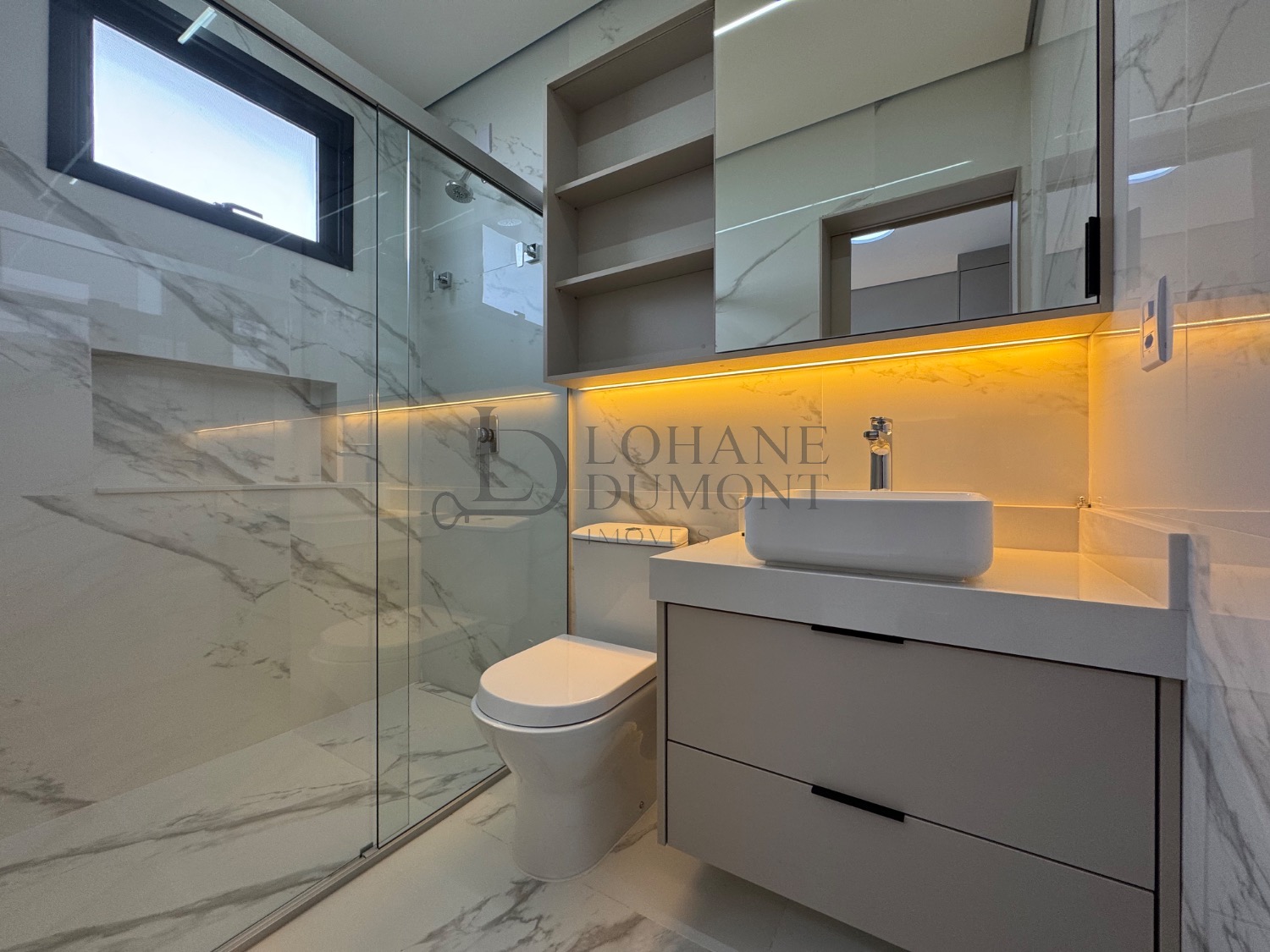 No pavimento superior estão três suítes amplas, todas com excelente iluminação natural, armários planejados com iluminação em LED e persianas automatizadas. A suíte master se destaca pelo generoso closet e pela amplitude dos ambientes, proporcionando conforto e sofisticação.