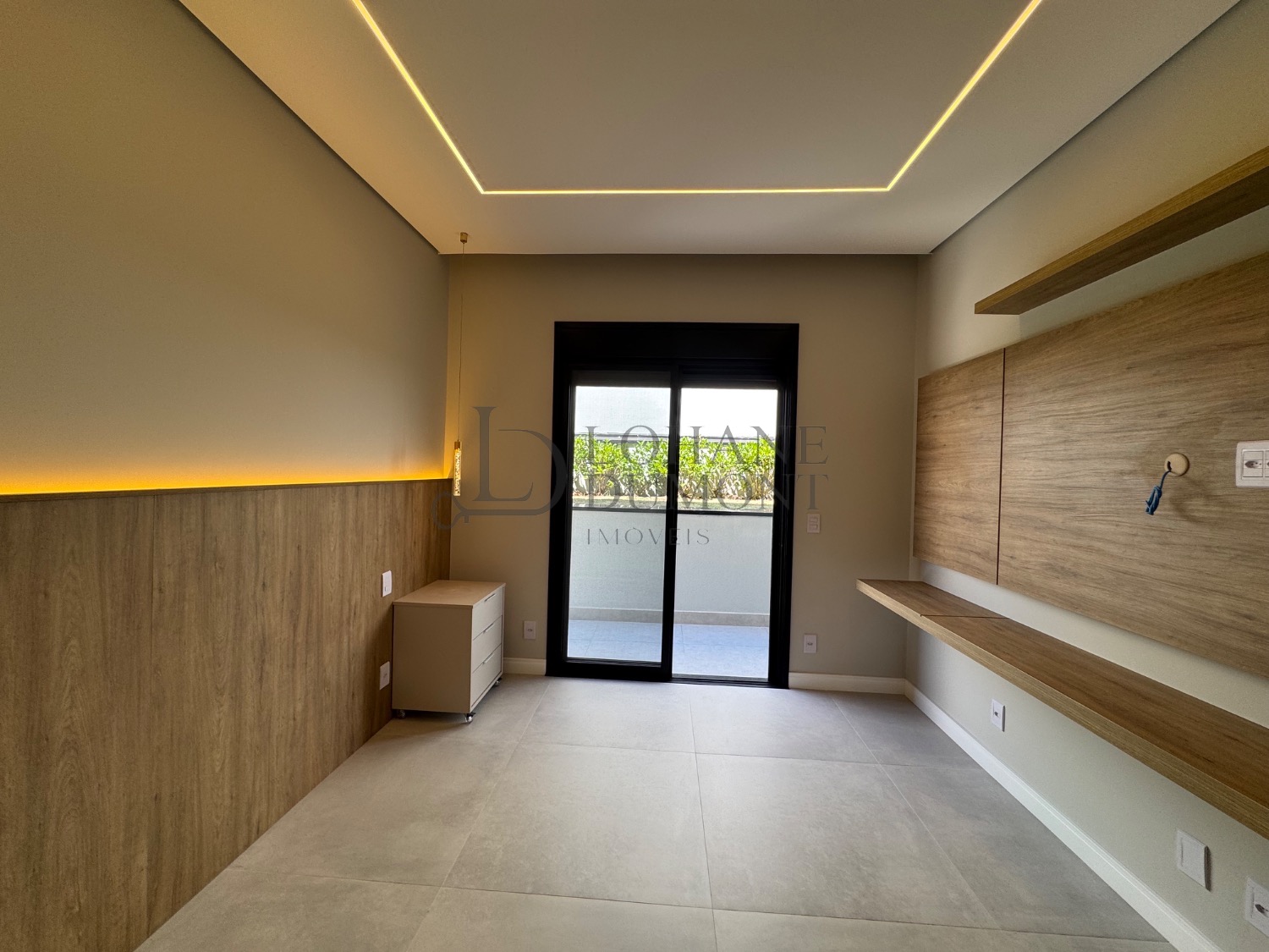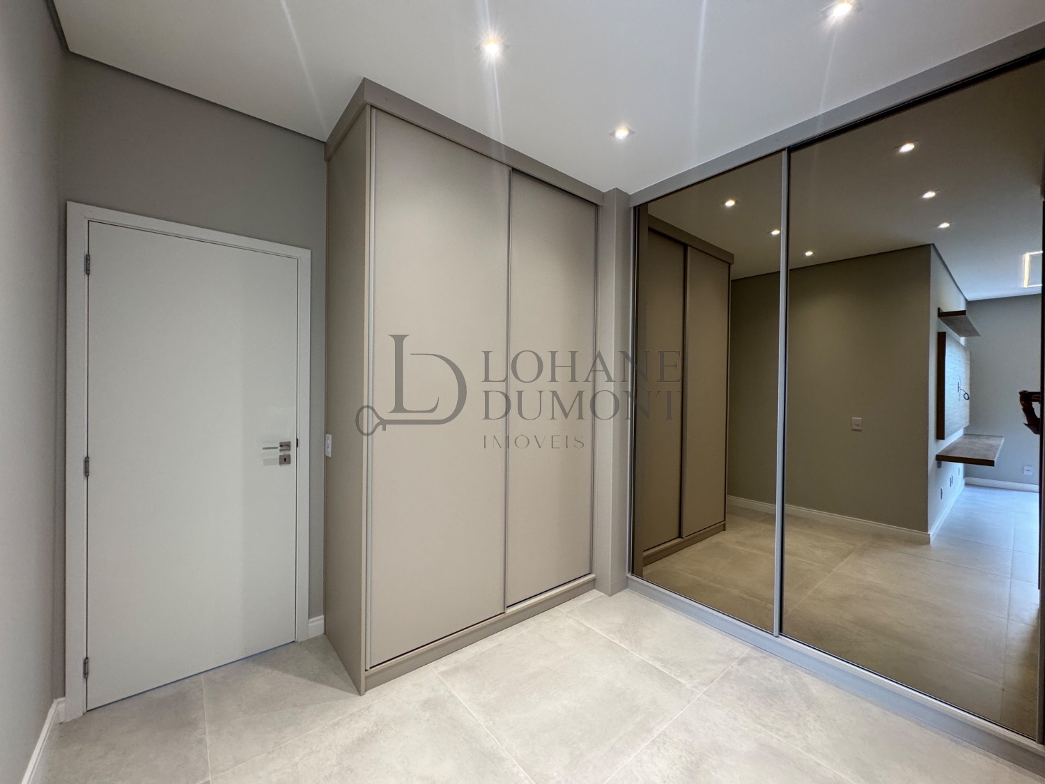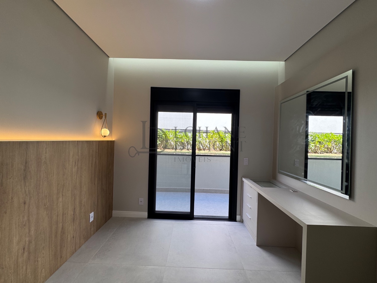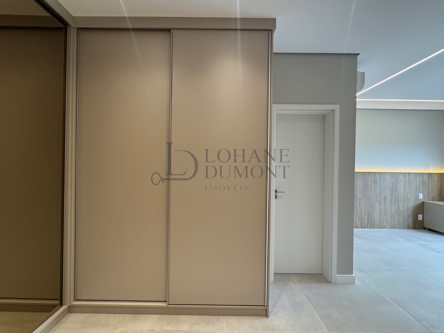 No pavimento superior estão três suítes amplas, todas com excelente iluminação natural, armários planejados com iluminação em LED e persianas automatizadas. A suíte master se destaca pelo generoso closet e pela amplitude dos ambientes, proporcionando conforto e sofisticação.