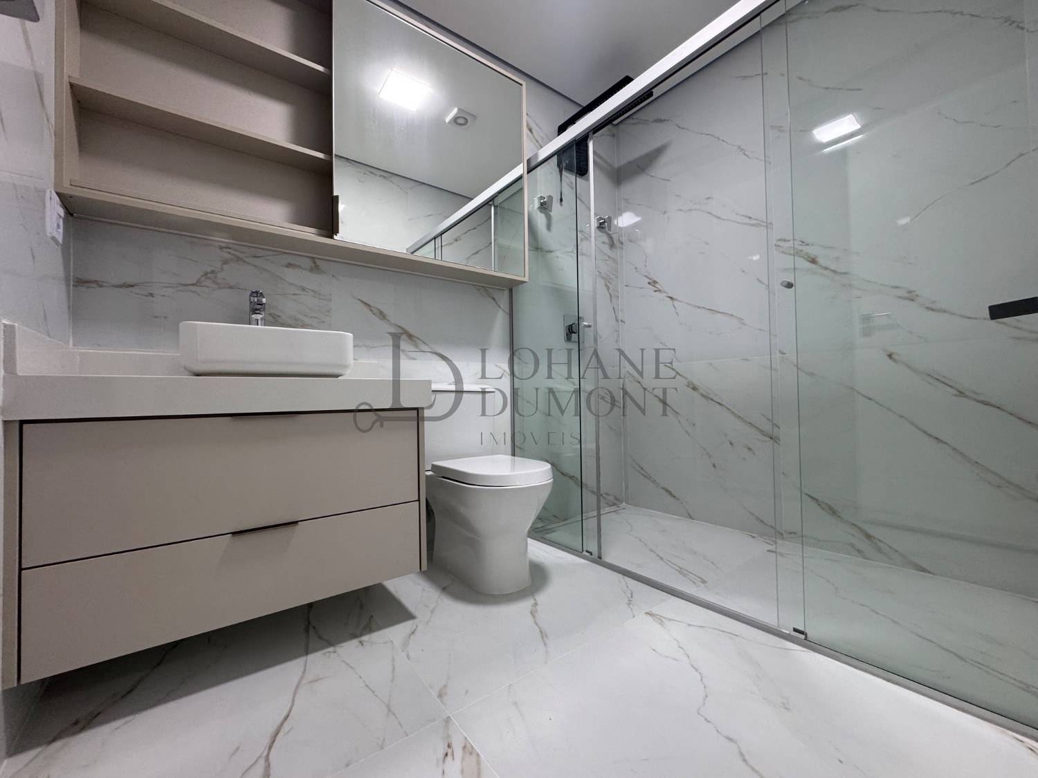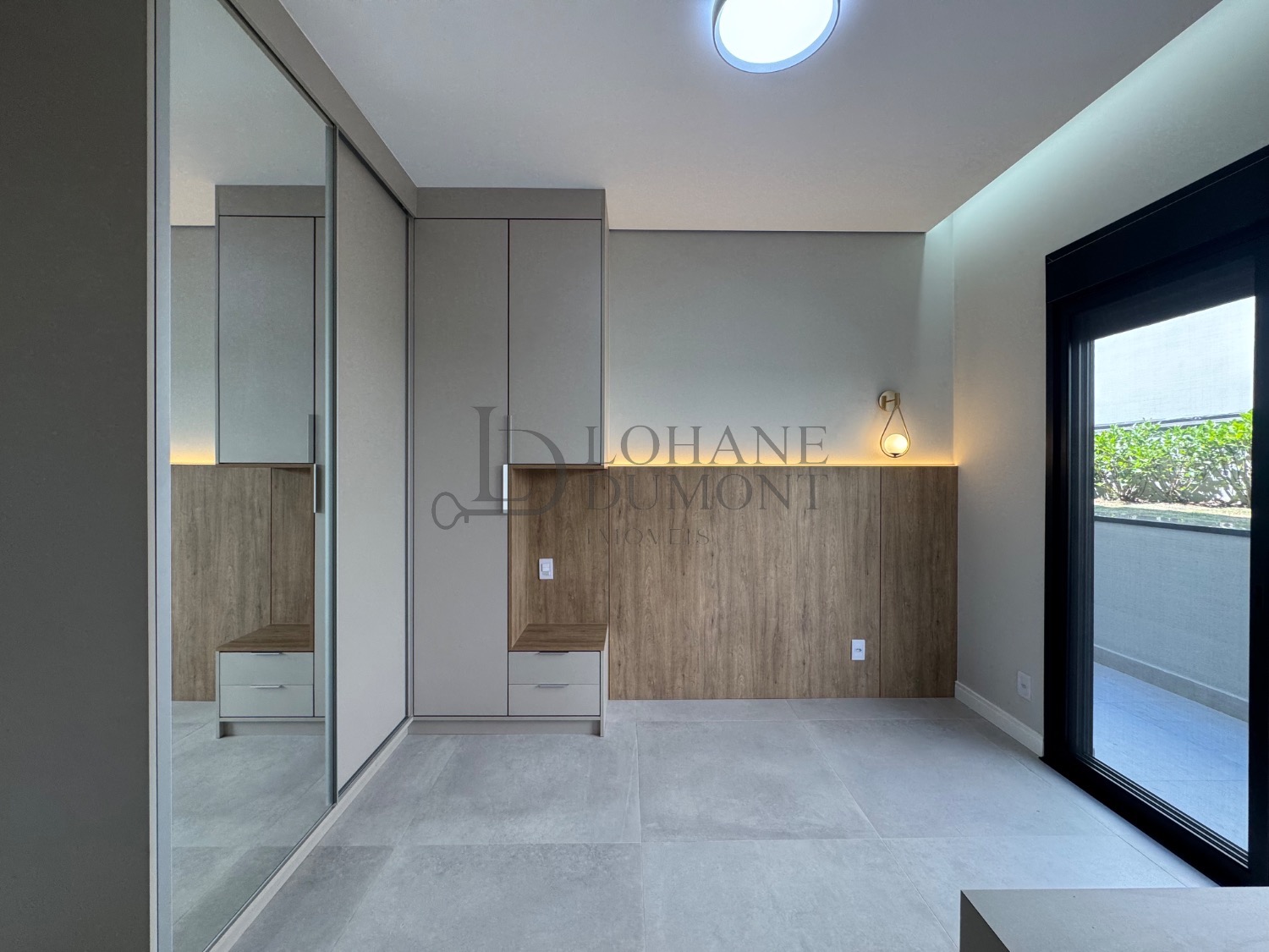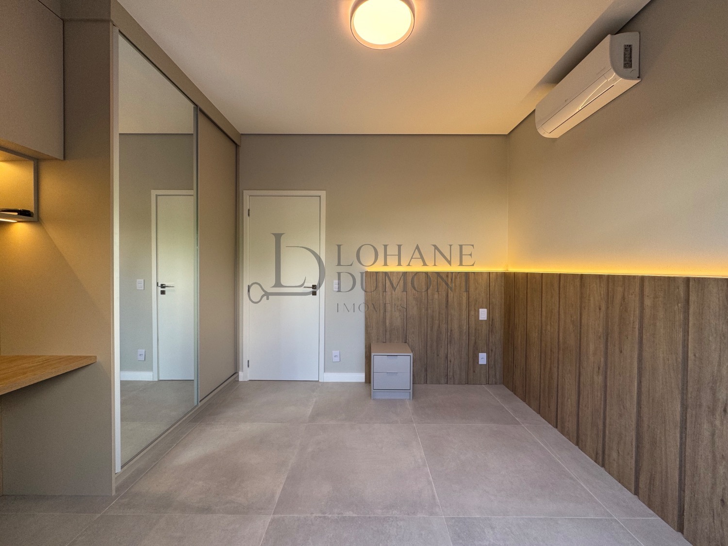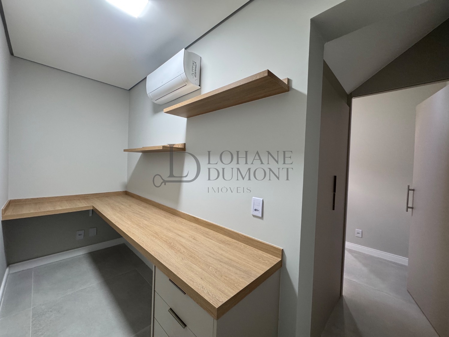 No pavimento superior estão três suítes amplas, todas com excelente iluminação natural, armários planejados com iluminação em LED e persianas automatizadas. A suíte master se destaca pelo generoso closet e pela amplitude dos ambientes, proporcionando conforto e sofisticação.