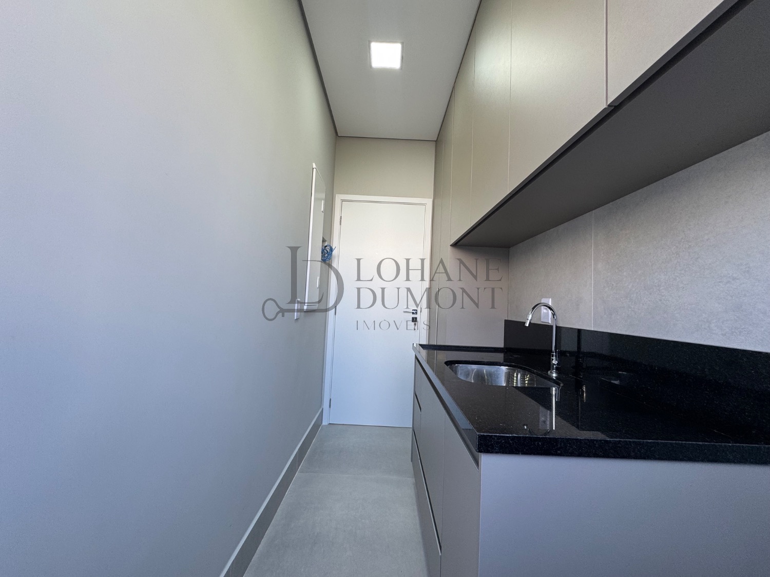 A cozinha é planejada, com marcenaria de excelente padrão, despensa funcional e perfeita integração com os espaços sociais. Ainda neste pavimento há um lavabo elegante, oferecendo praticidade para visitas sem interferir na área íntima da casa.