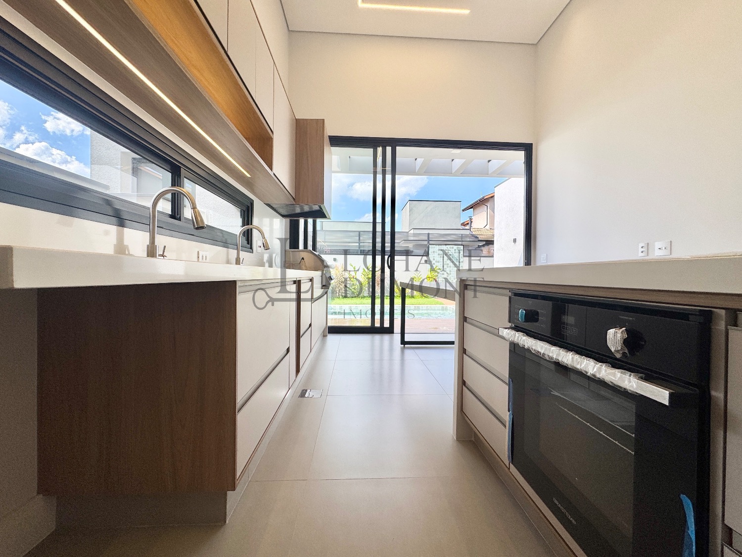 O living impressiona pelo pé-direito duplo, trazendo amplitude e excelente iluminação natural, integrado a dois ambientes de estar. O imóvel conta ainda com escritório, lavabo e uma cozinha americana completa, equipada com armários planejados e eletrodomésticos já instalados, perfeitamente integrada à área gourmet — ideal para quem valoriza praticidade e convivência.