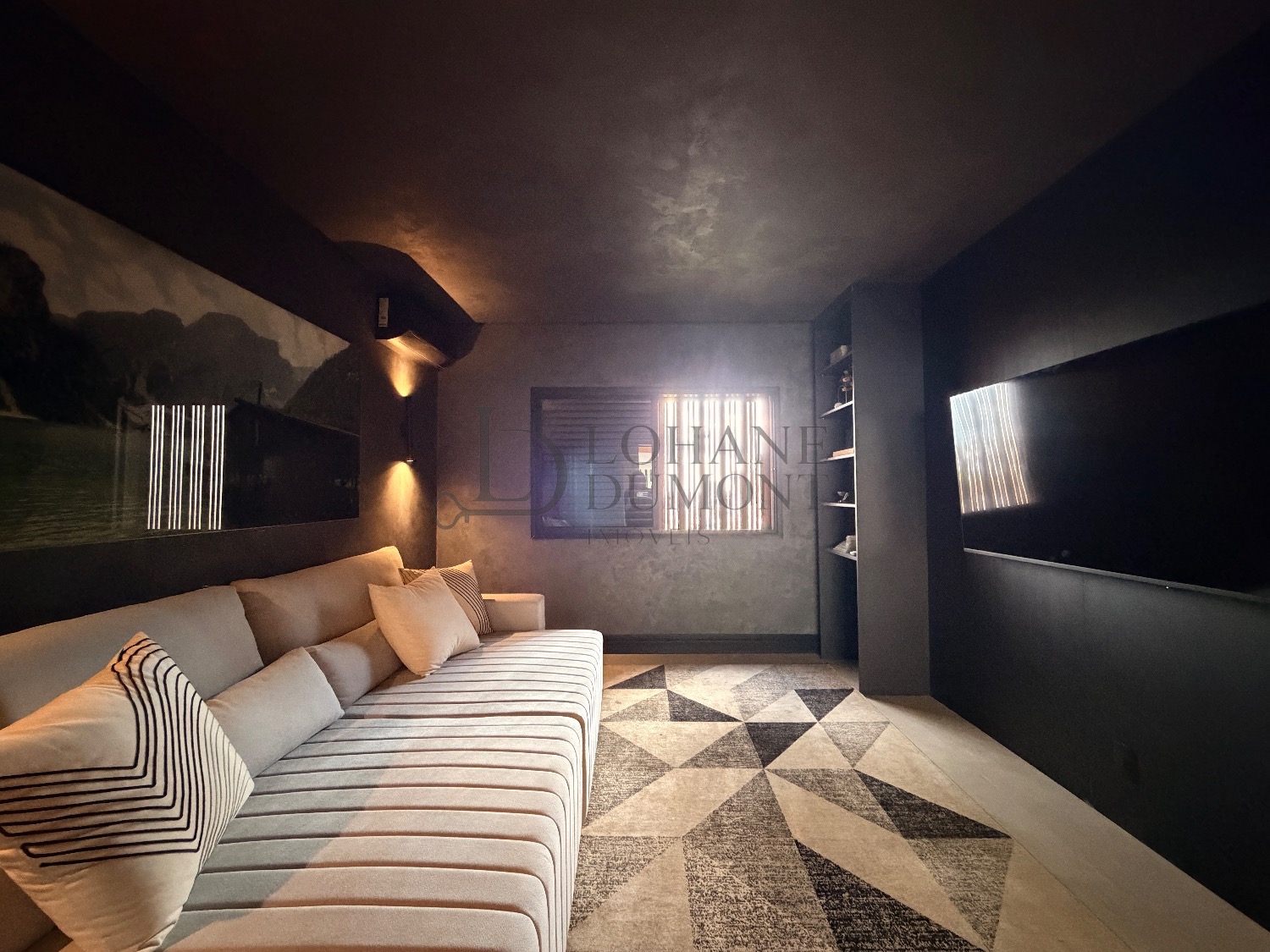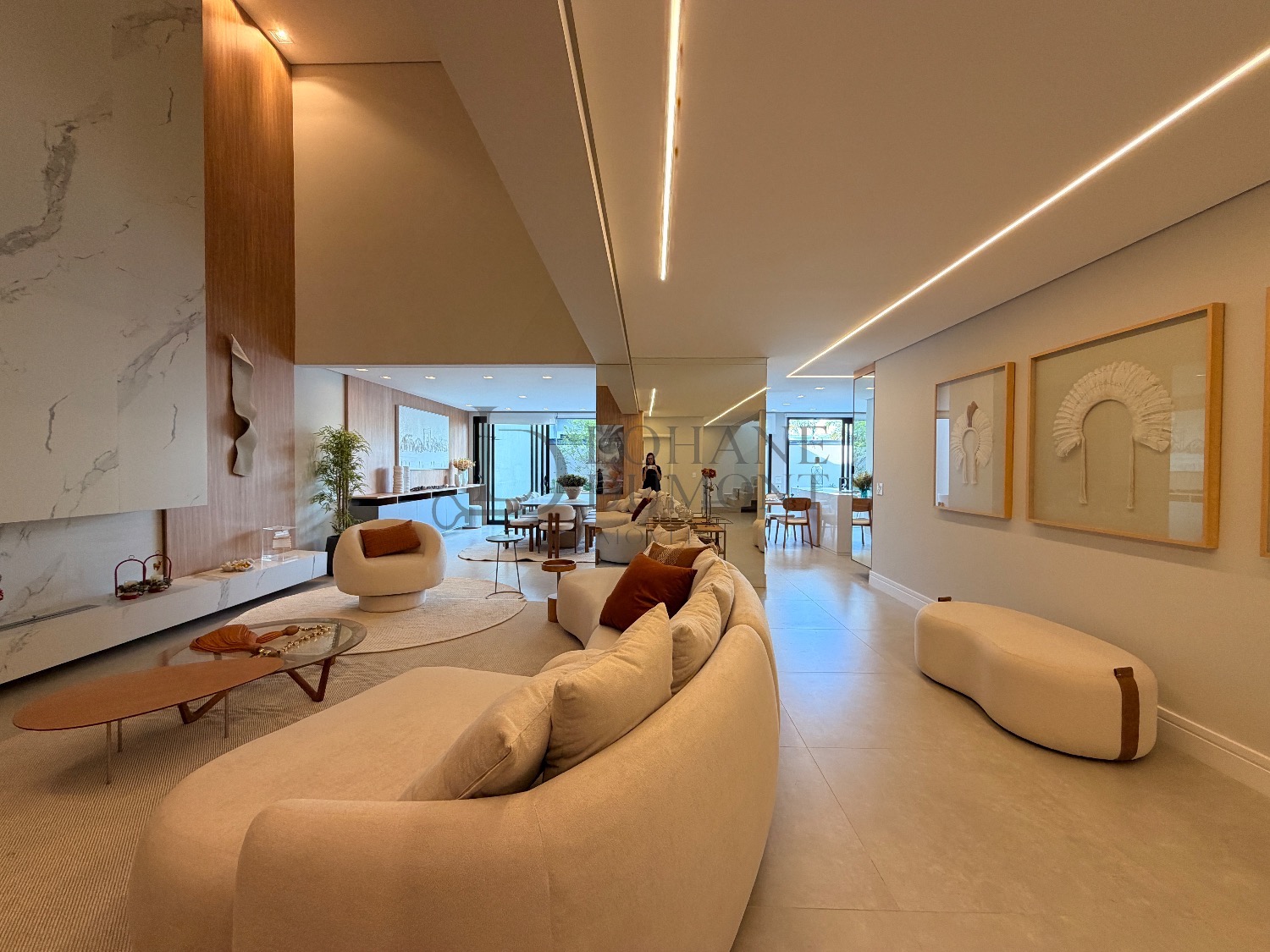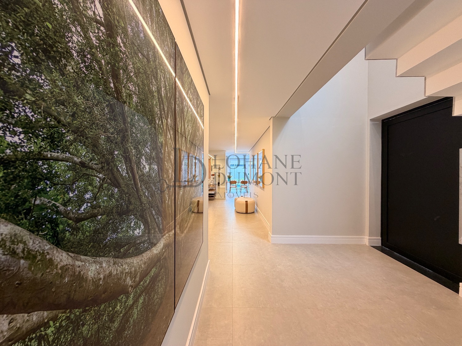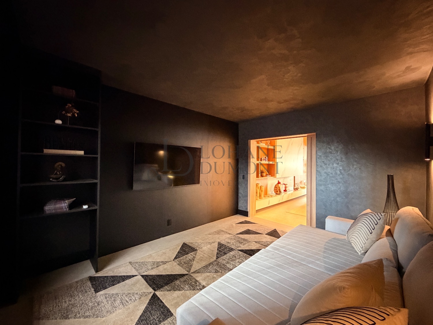 Logo na entrada, o pé-direito duplo imponente cria uma sensação imediata de elegância e amplitude. Os ambientes do térreo foram cuidadosamente integrados, unindo sala de estar, cozinha e espaço gourmet em uma proposta fluida e funcional, ideal para receber. O ambiente é valorizado por uma lareira ecológica em uma parede de aproximadamente 6 metros, que se torna um verdadeiro destaque arquitetônico, além de um cinema privativo já climatizado, perfeito para momentos de lazer e entretenimento.