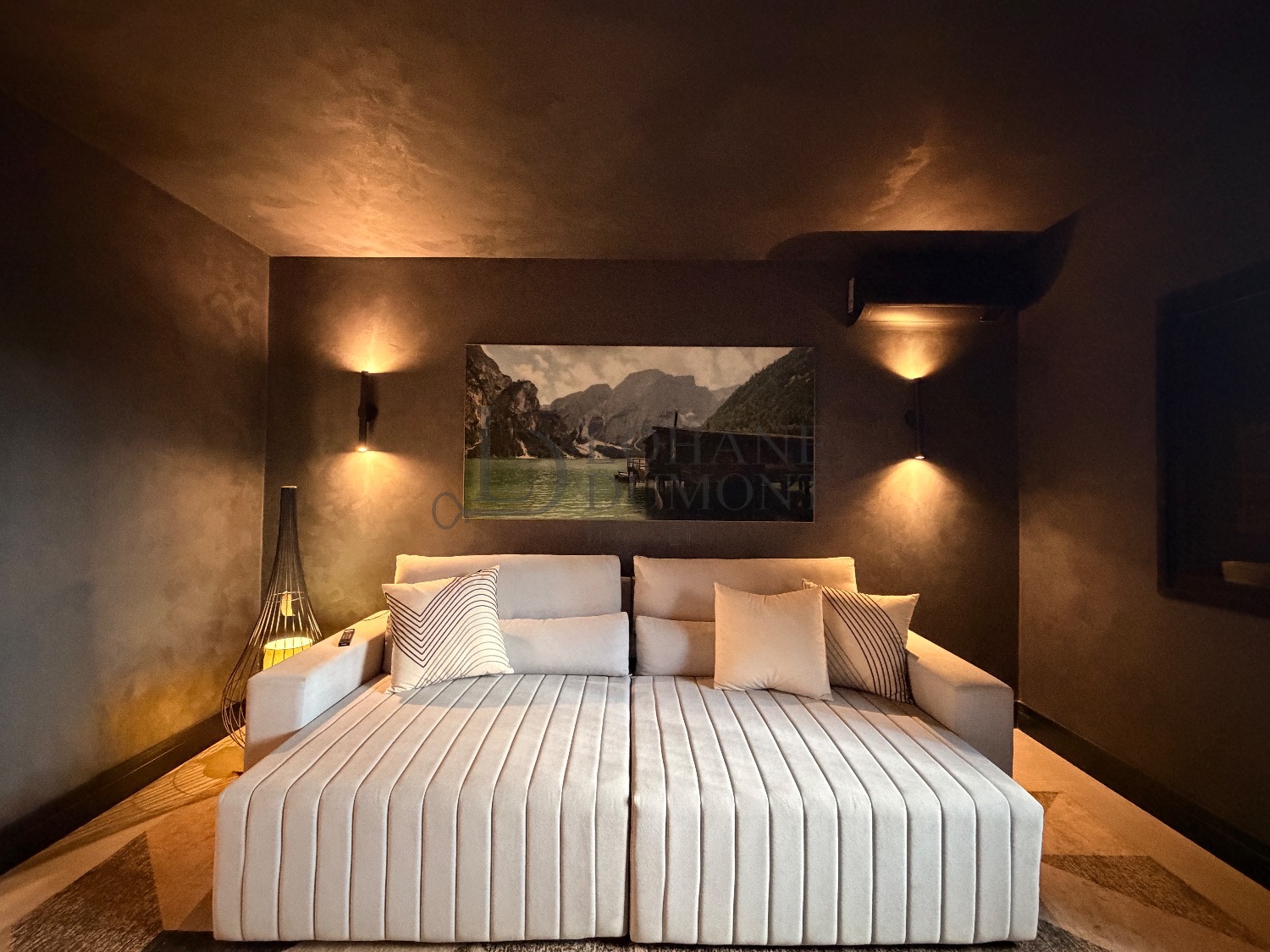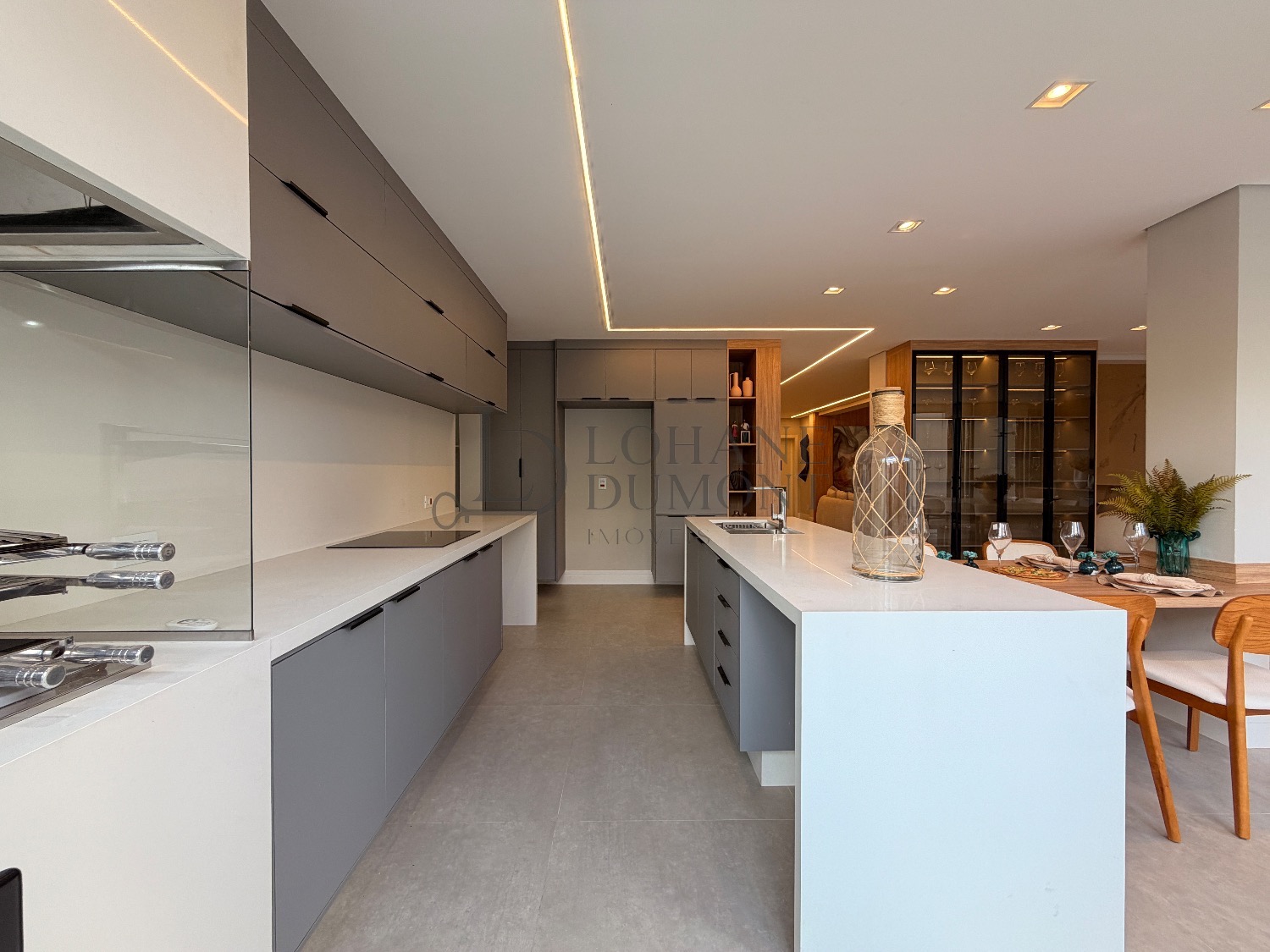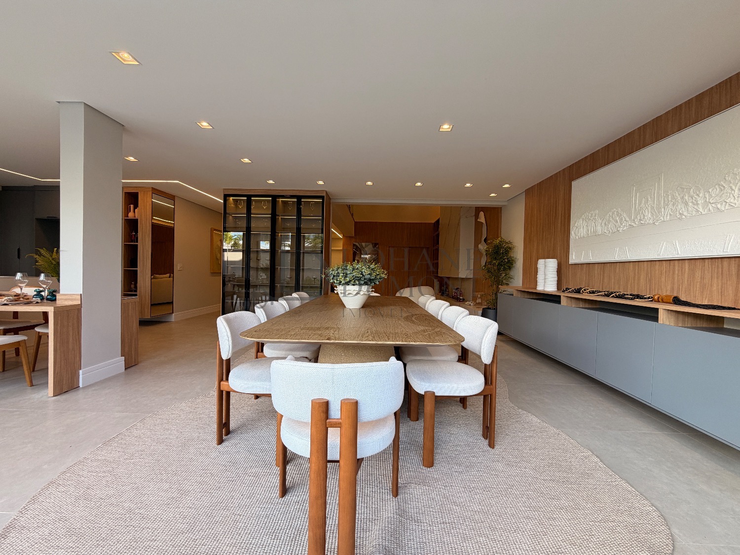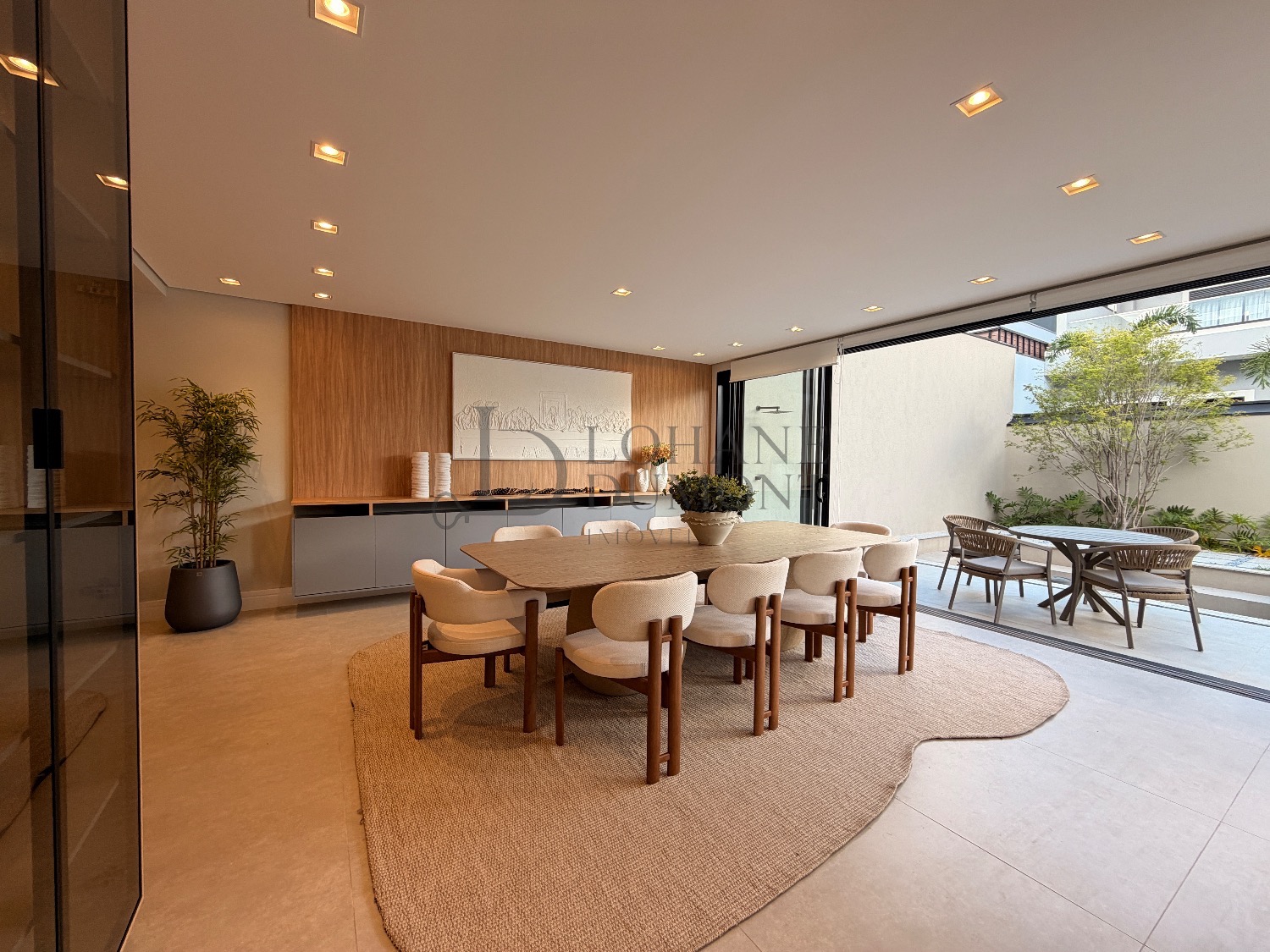 Logo na entrada, o pé-direito duplo imponente cria uma sensação imediata de elegância e amplitude. Os ambientes do térreo foram cuidadosamente integrados, unindo sala de estar, cozinha e espaço gourmet em uma proposta fluida e funcional, ideal para receber. O ambiente é valorizado por uma lareira ecológica em uma parede de aproximadamente 6 metros, que se torna um verdadeiro destaque arquitetônico, além de um cinema privativo já climatizado, perfeito para momentos de lazer e entretenimento.