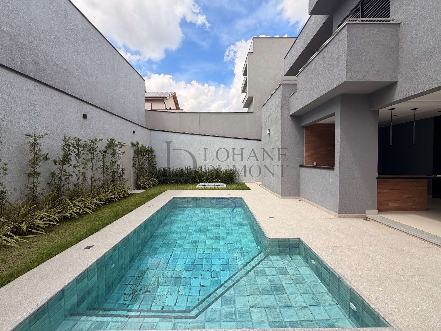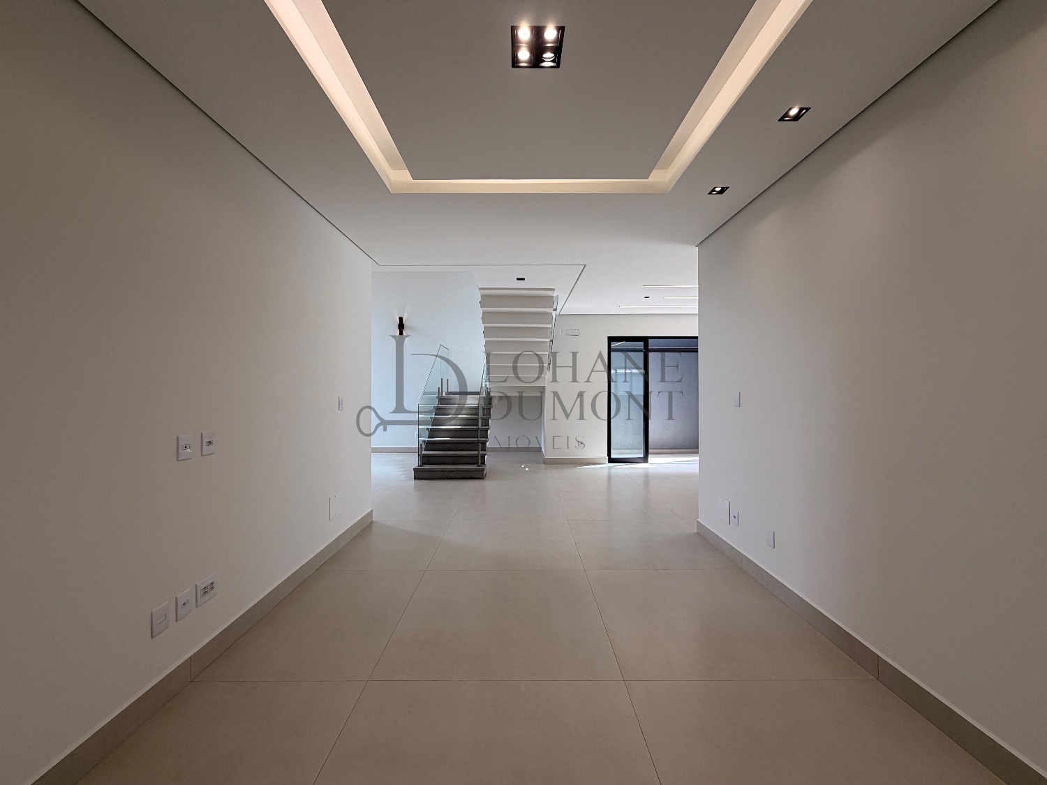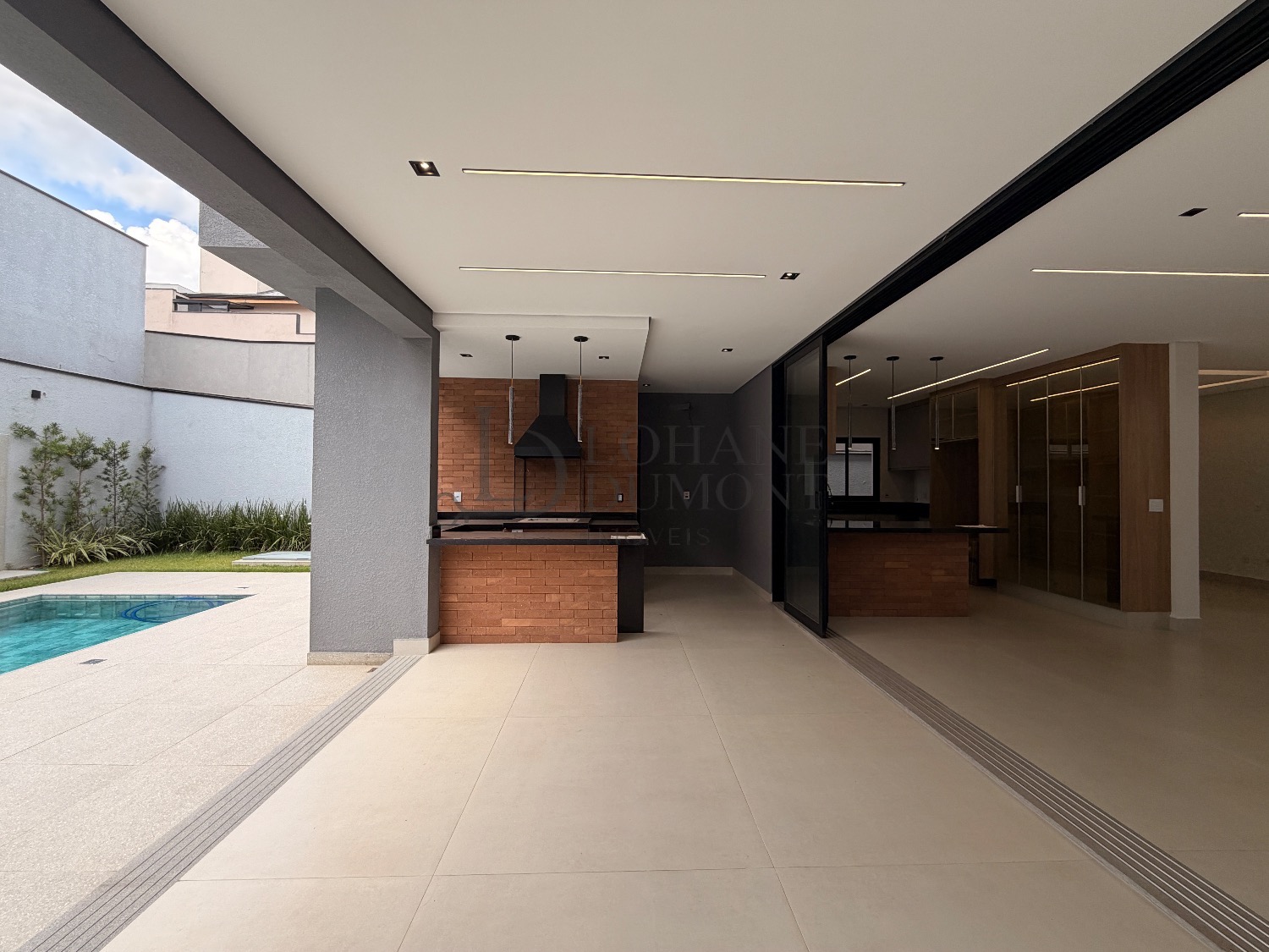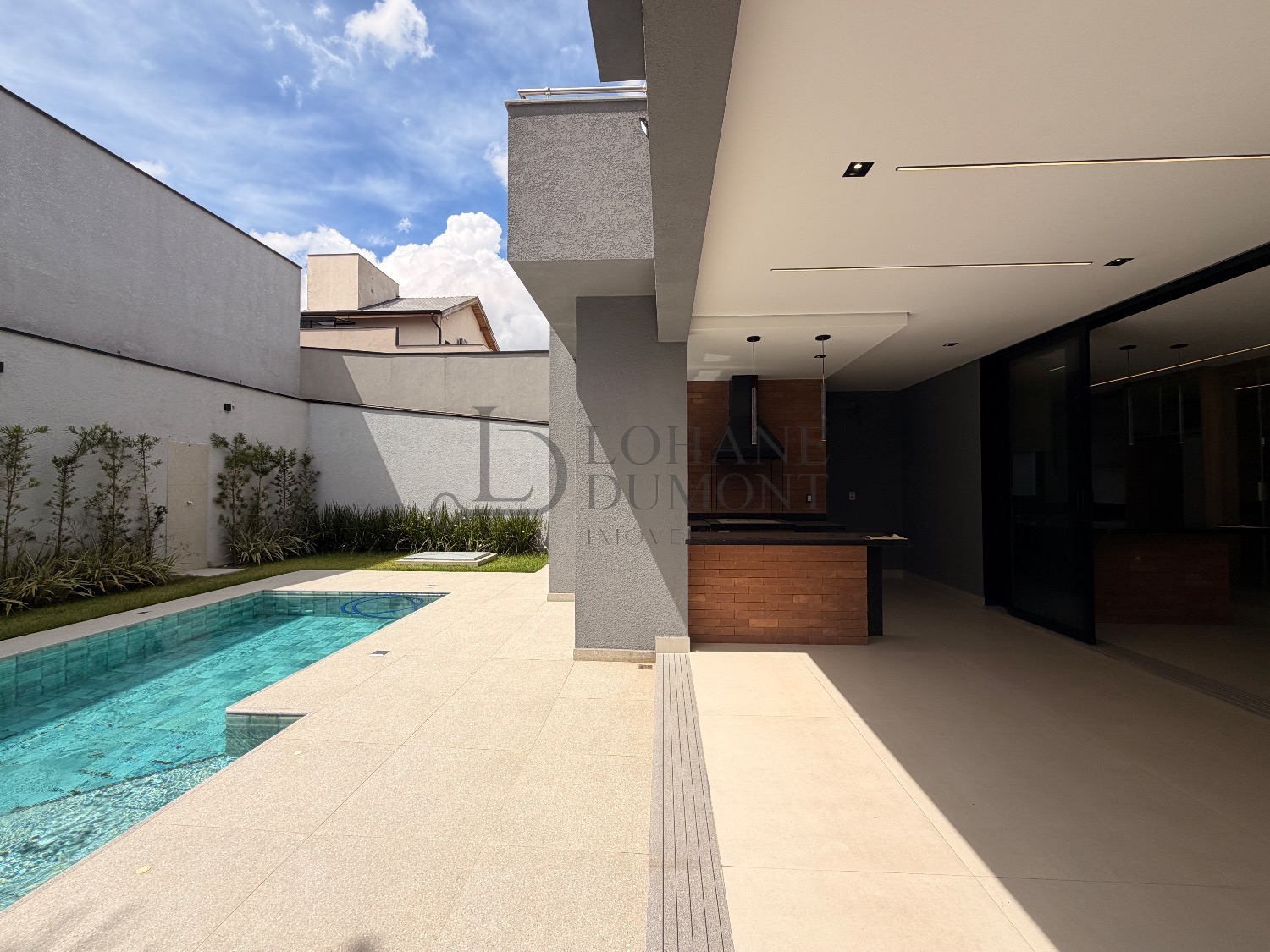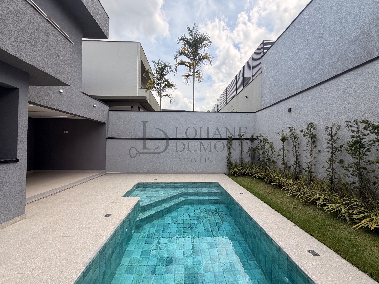No pavimento térreo, o living para dois ambientes com pé-direito duplo se destaca pela amplitude, luminosidade e integração dos espaços. A casa conta ainda com escritório, cozinha completa, lavabo, área de serviço e despensa, garantindo praticidade e organização no dia a dia. Ainda no térreo, a área gourmet com churrasqueira é perfeita para receber, integrada à piscina, ao quintal e ao banheiro de apoio, criando um ambiente ideal para momentos de lazer e convivência. O imóvel dispõe de quatro vagas de garagem.