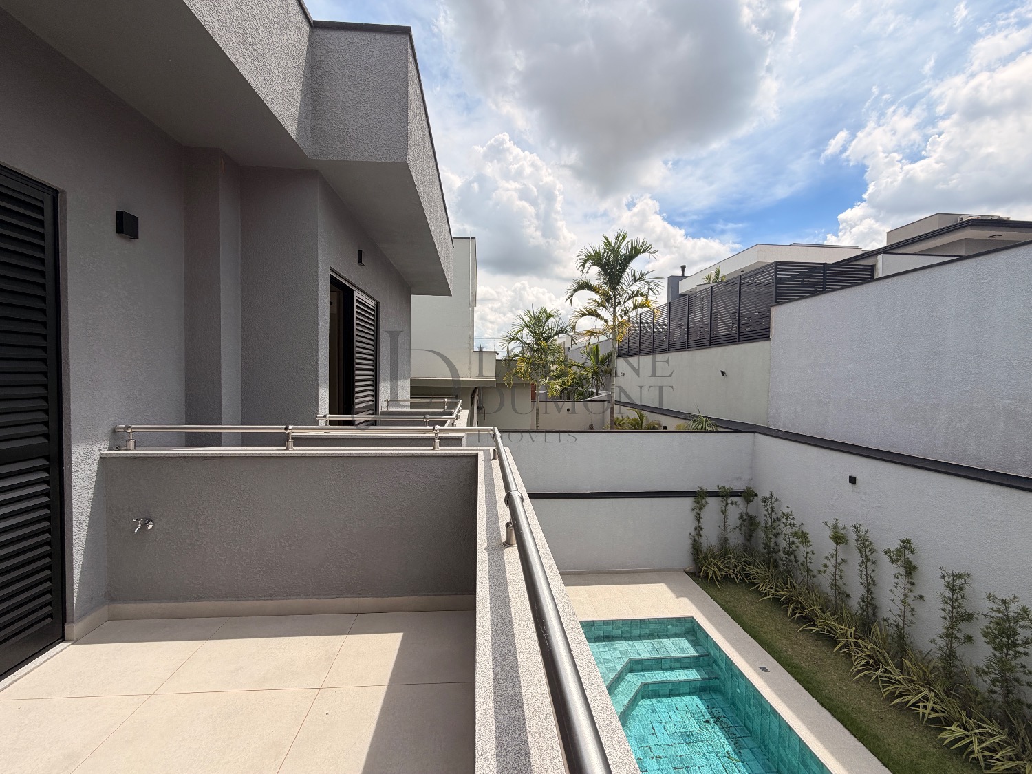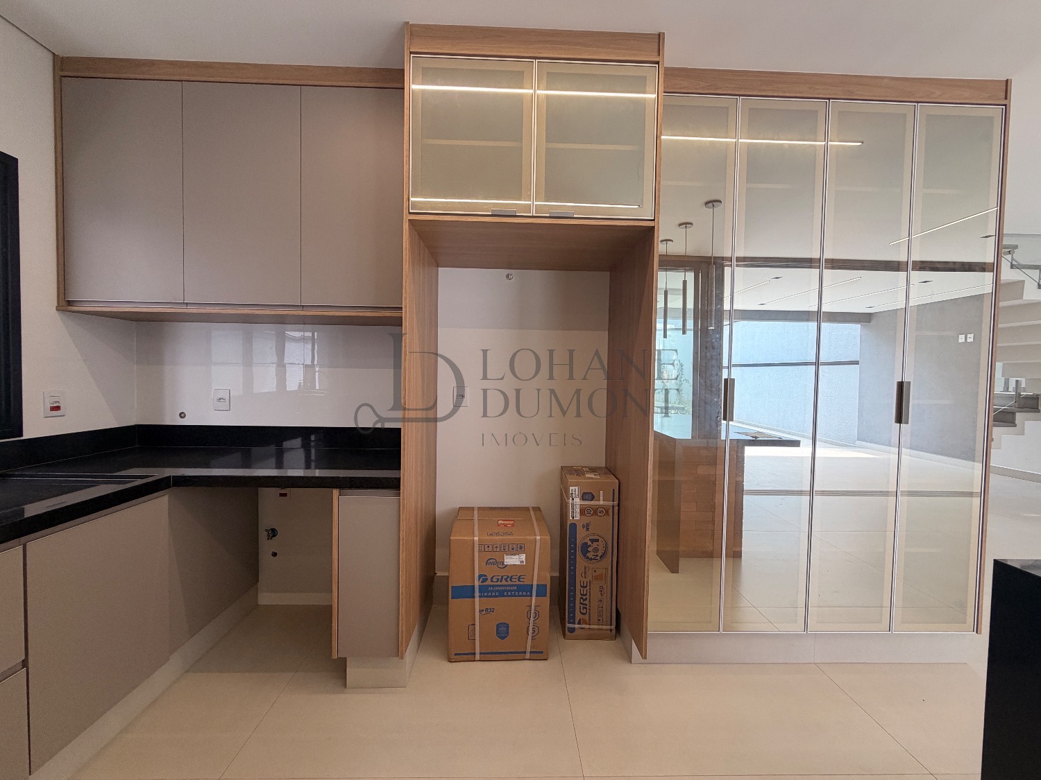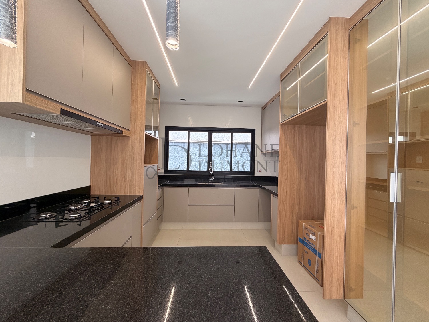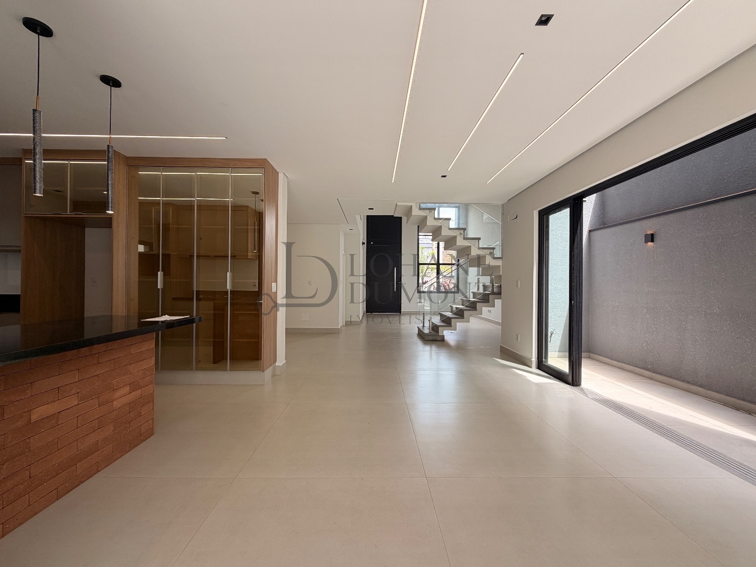 No pavimento térreo, o living para dois ambientes com pé-direito duplo se destaca pela amplitude, luminosidade e integração dos espaços. A casa conta ainda com escritório, cozinha completa, lavabo, área de serviço e despensa, garantindo praticidade e organização no dia a dia. Ainda no térreo, a área gourmet com churrasqueira é perfeita para receber, integrada à piscina, ao quintal e ao banheiro de apoio, criando um ambiente ideal para momentos de lazer e convivência. O imóvel dispõe de quatro vagas de garagem.