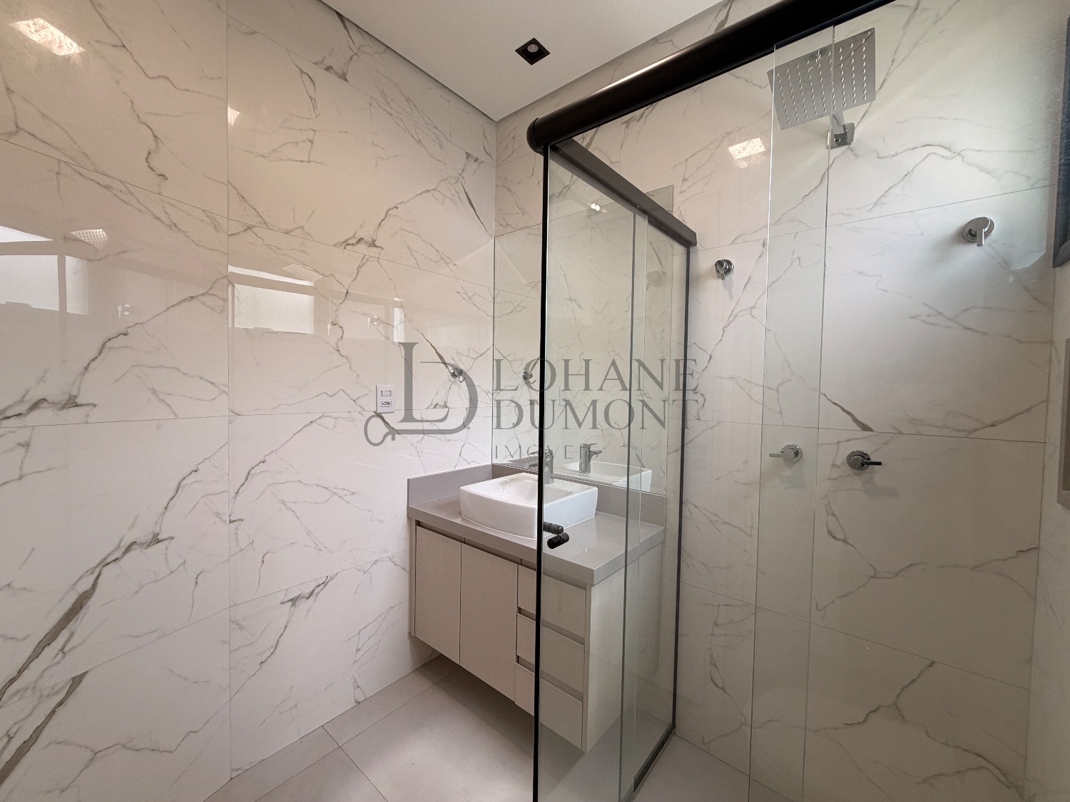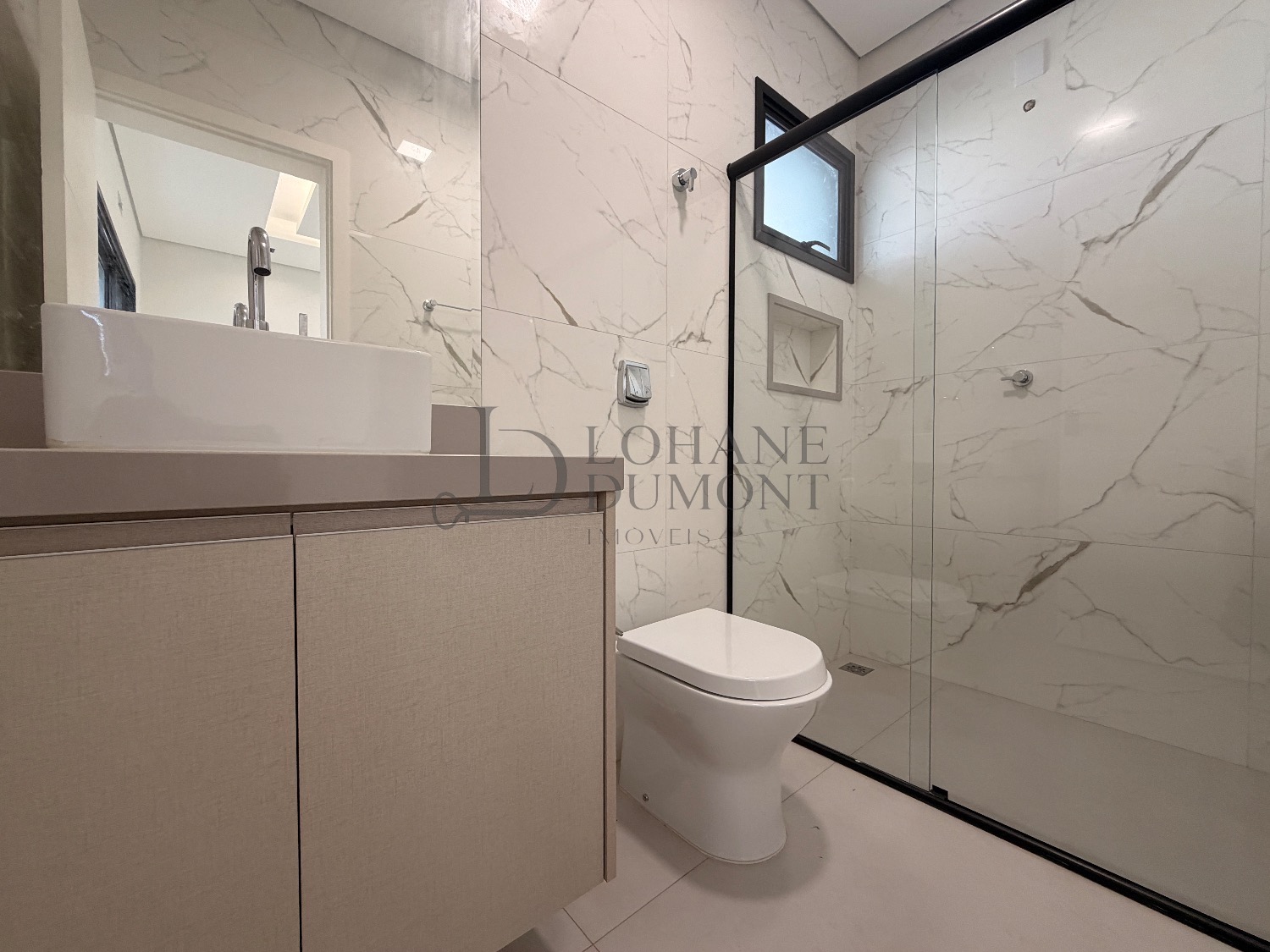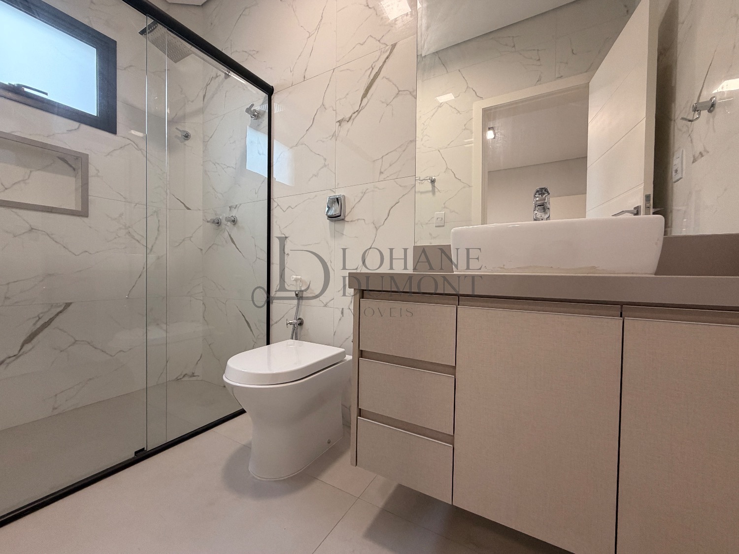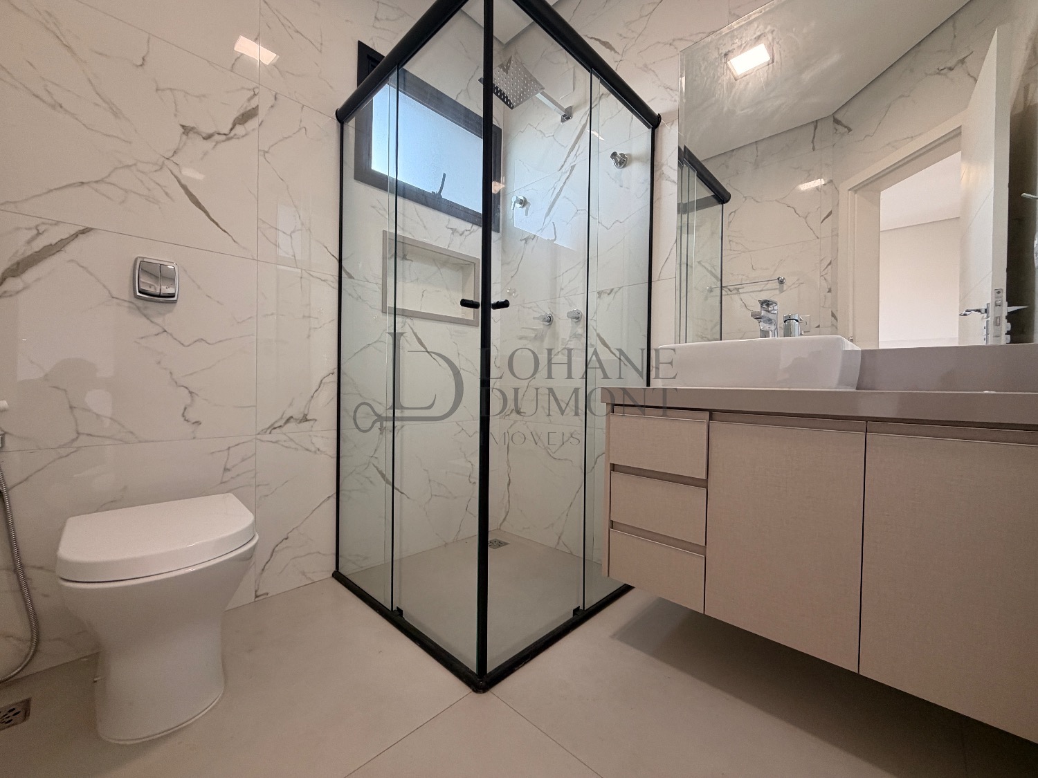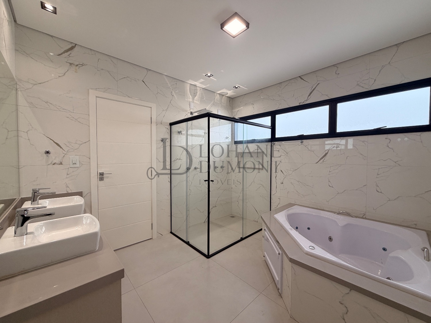 No piso superior, a residência oferece quatro suítes amplas e bem distribuídas, sendo a suíte master um verdadeiro refúgio, com closet e banheira de hidromassagem. Uma casa completa, que une elegância, conforto e espaços pensados para viver bem.