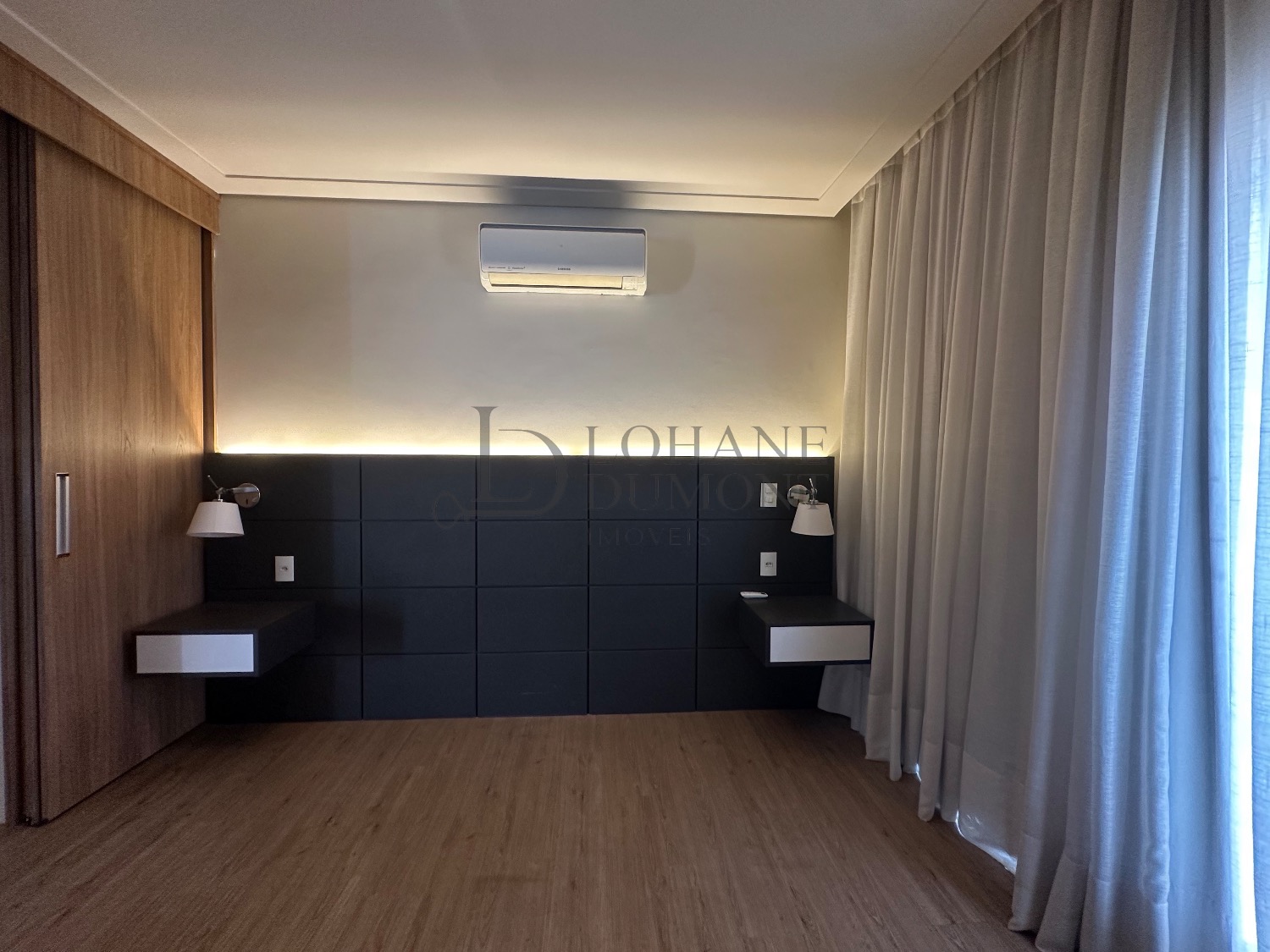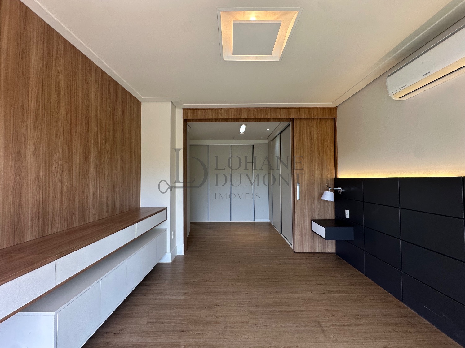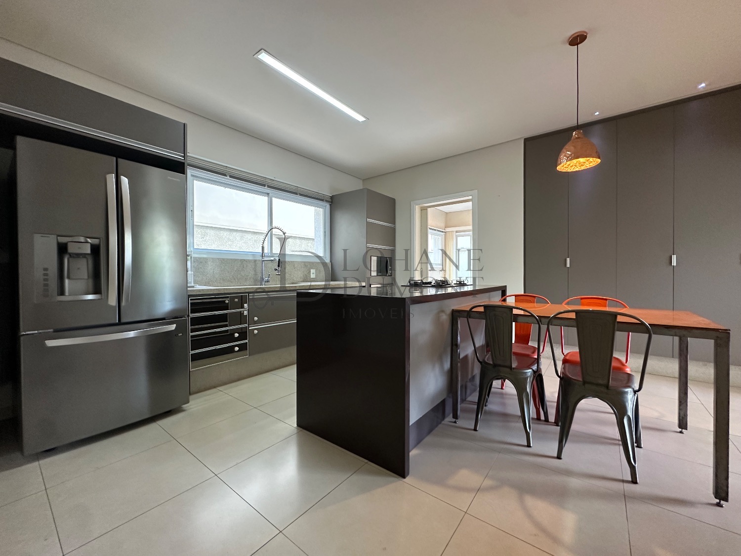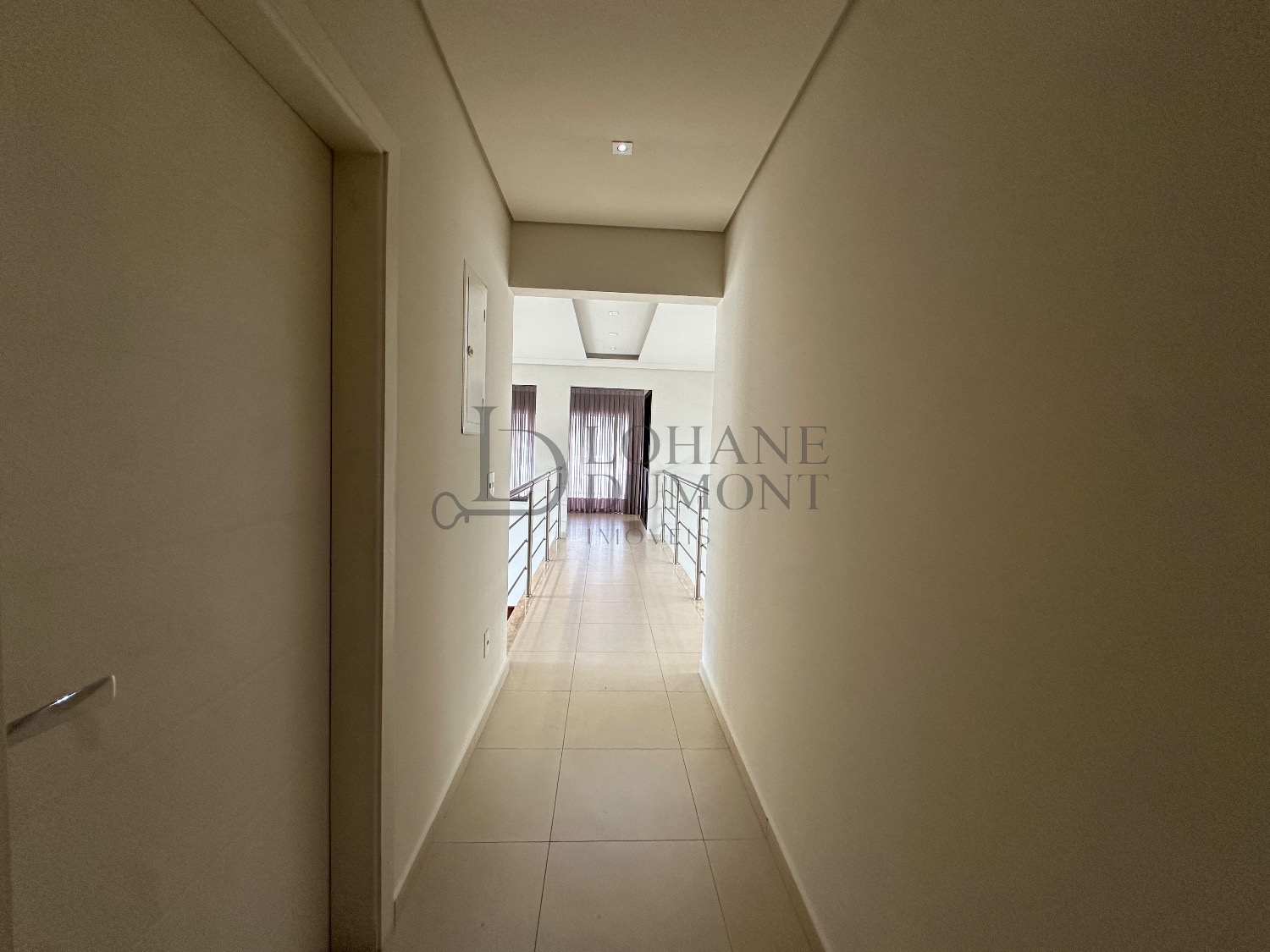 No pavimento superior, são 3 suítes, tendo um diferencial para a master que se destaca pelo banheiro amplo, com marcenaria completa, closet integrado ao ambiente, oferecendo um espaço funcional e confortável, pensado para proporcionar praticidade e comodidade no dia a dia, além de um home theater espaçoso, com saída para uma ampla sacada, que oferece uma vista agradável para área verde externa ao condomínio.