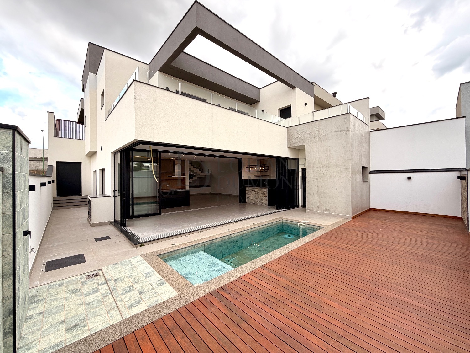 A área de lazer, também no térreo, é um dos grandes destaques do imóvel, com espaço gourmet com churrasqueira e fechamento em vidro, piscina aquecida, quintal agradável e quatro vagas de garagem, garantindo conforto e praticidade para toda a família.