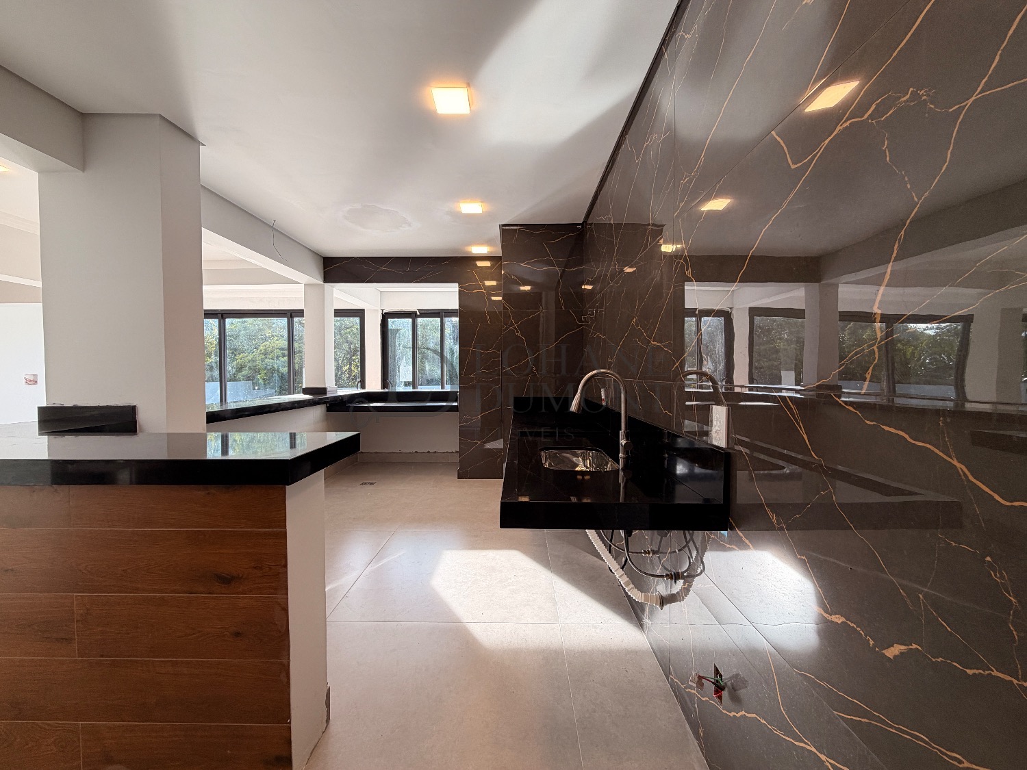 No interior, os ambientes são bem distribuídos e acolhedores: sala de estar, sala de TV, sala de jantar, cozinha funcional, lavabo, escritório e despensa. A área íntima dispõe de quatro suítes no piso superior, sendo duas com closet e uma com hidromassagem, além de mais uma suíte estrategicamente posicionada junto à área de lazer. O imóvel conta ainda com subsolo com depósito, agregando praticidade ao dia a dia.