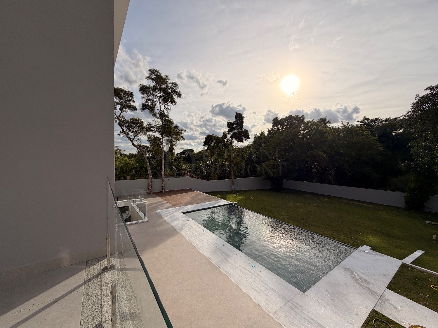Implantada em um terreno de 1.000 m², a casa oferece uma ampla área gramada e lazer completo, com piscina de borda infinita posicionada para receber sol o dia todo e proporcionar um pôr do sol deslumbrante. O espaço gourmet é integrado à piscina e à churrasqueira, ideal para receber com elegância, contando ainda com banheiro de apoio e sauna.