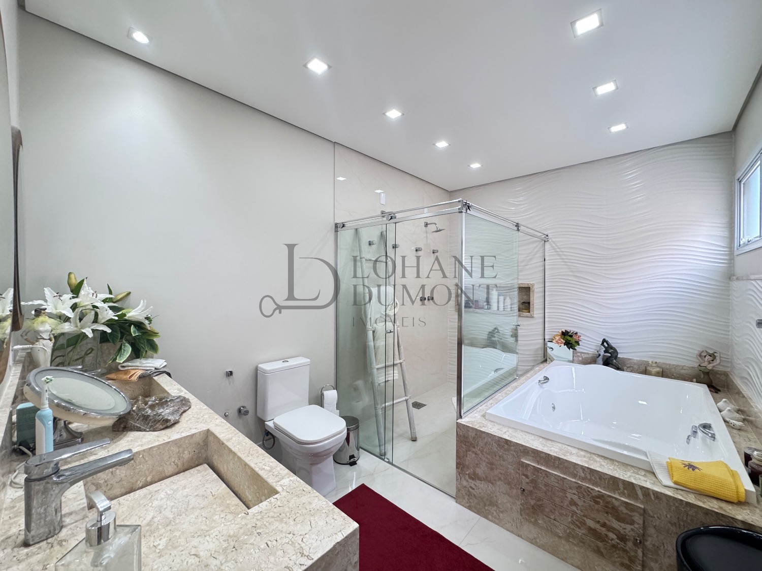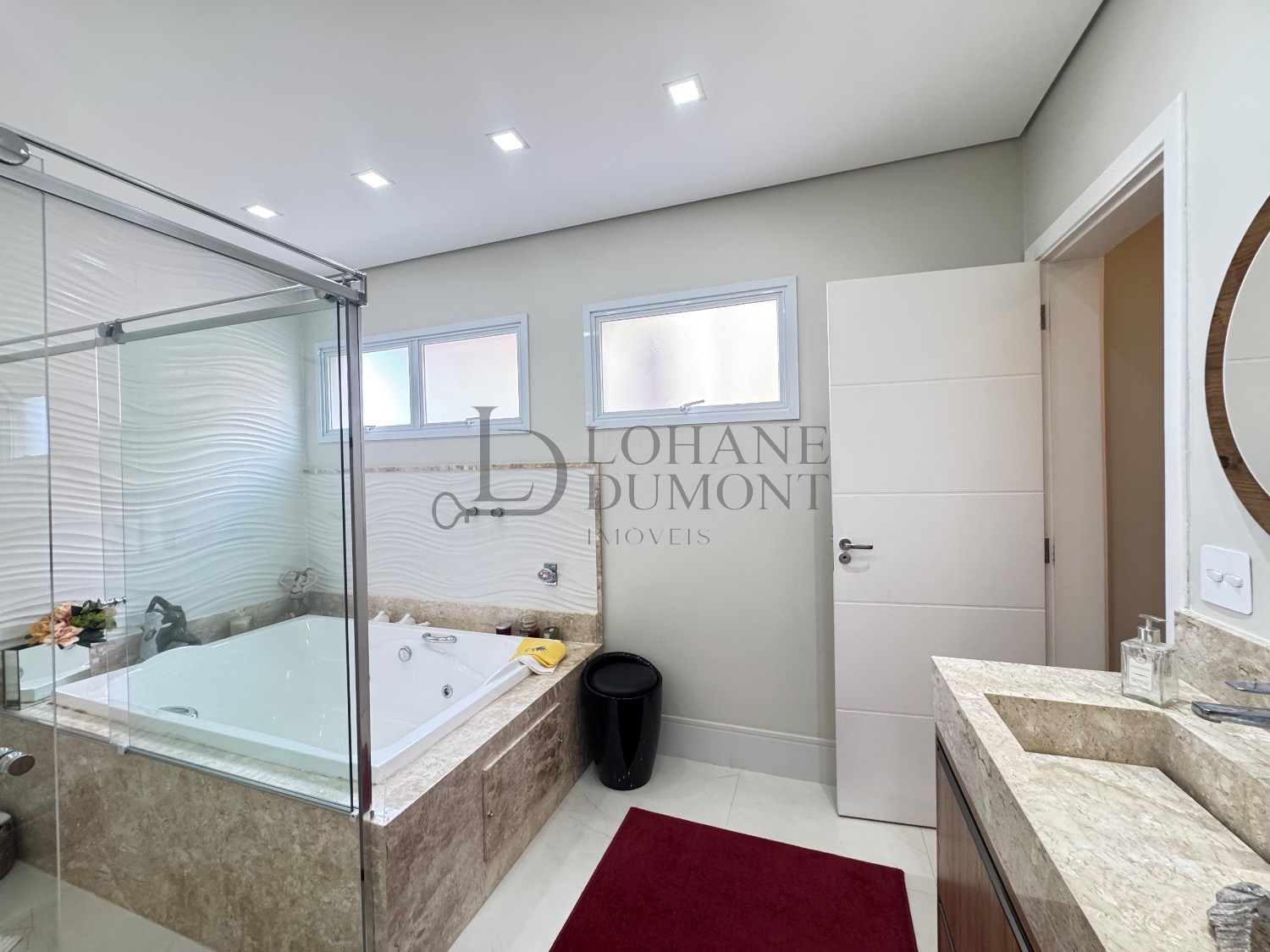 Na área íntima, são três suítes no pavimento superior, todas com armários planejados, além da possibilidade de uma quarta suíte no térreo. A suíte master dispõe de closet e banheira de hidromassagem.