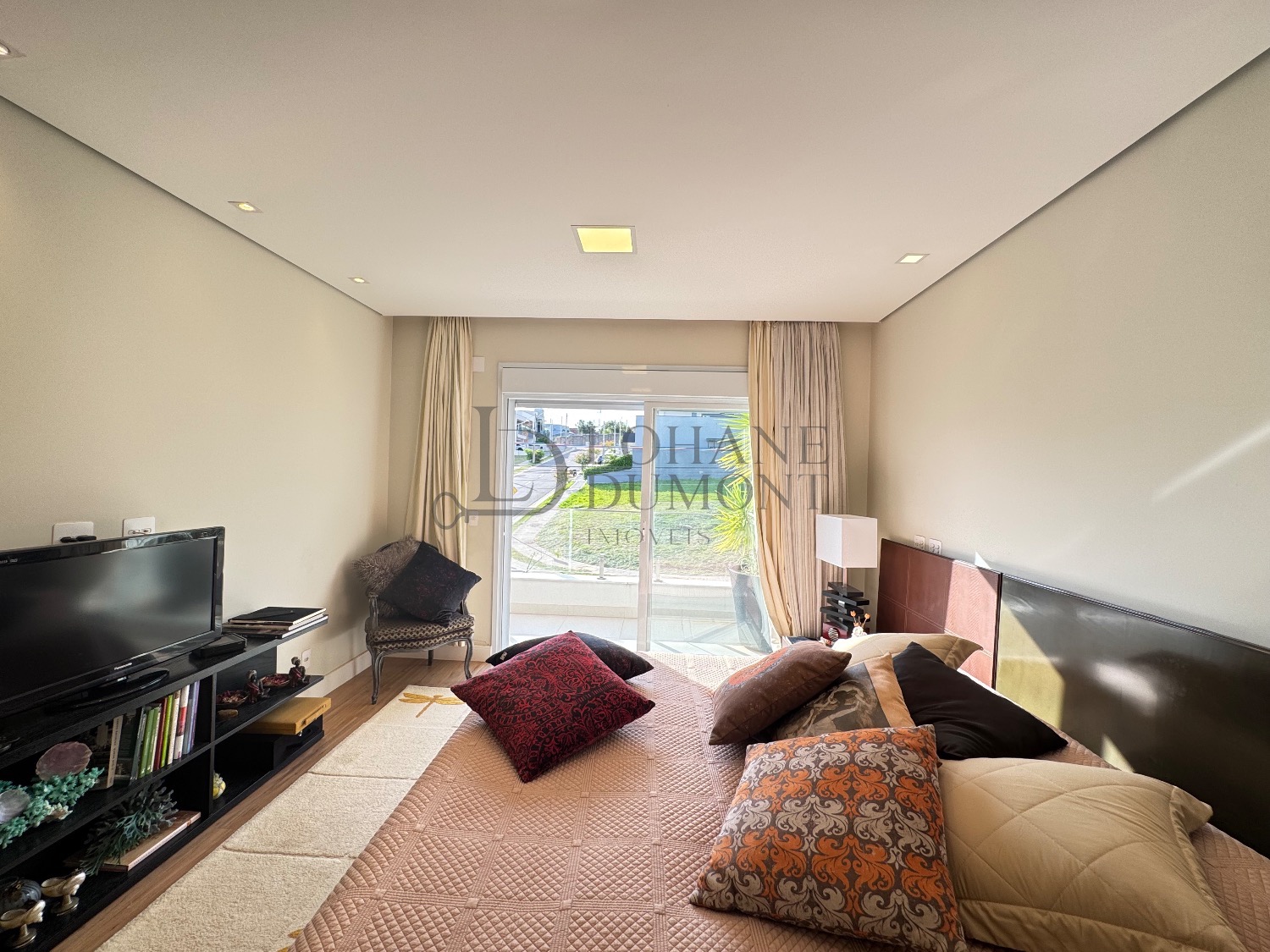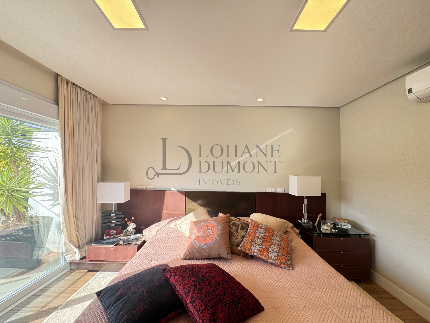 O imóvel conta com automação completa via smartphone, possibilitando o controle de iluminação, persianas elétricas, climatização, piscina, irrigação do jardim e lareira, tudo de forma prática e remota. Além da segurança do condomínio, a casa possui sistema de monitoramento interno.