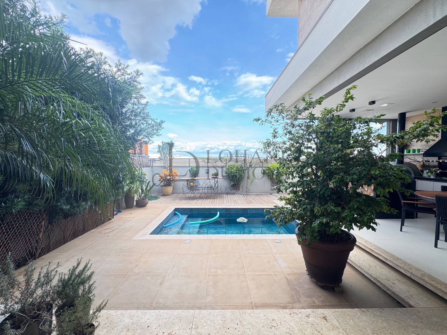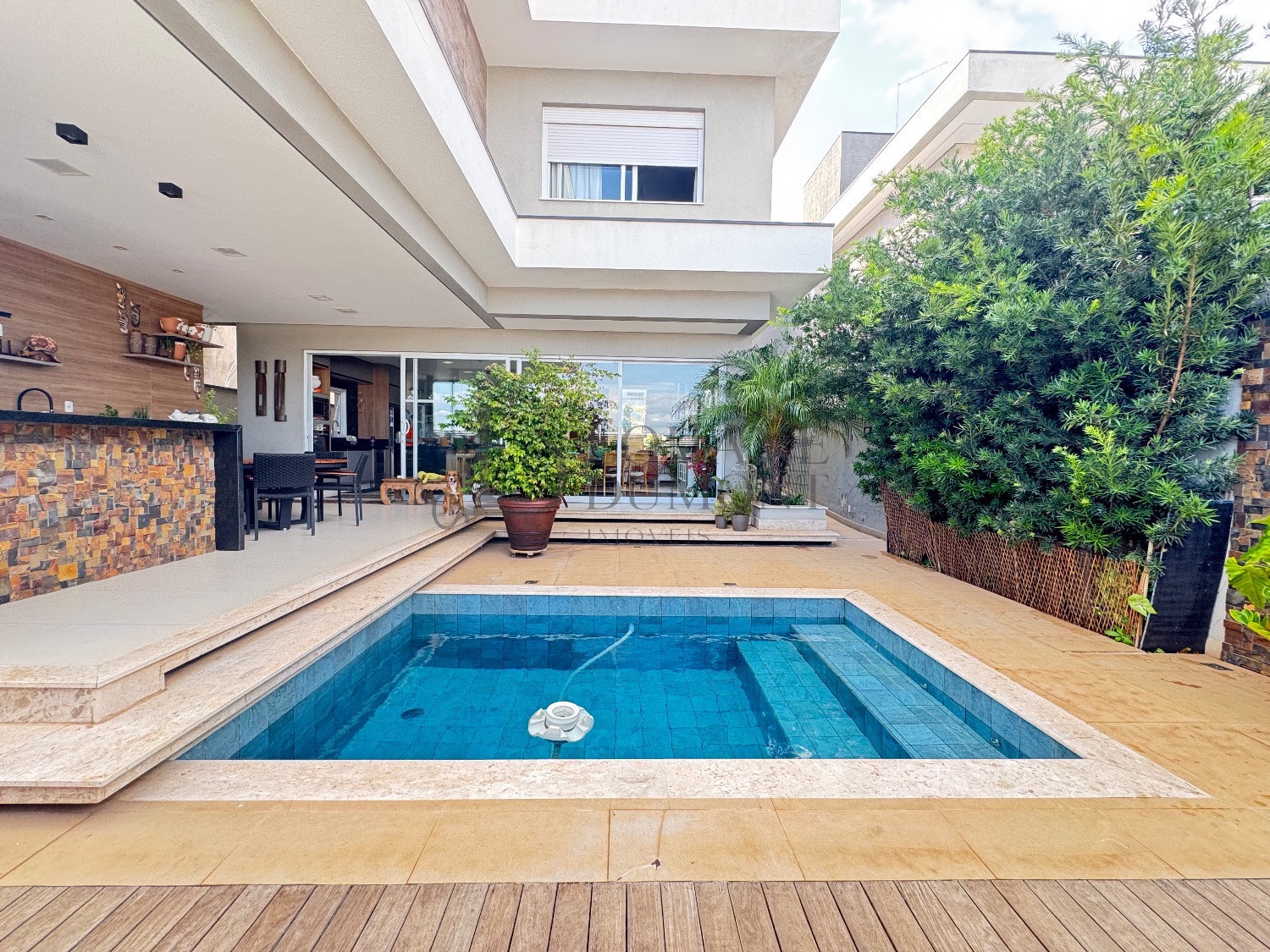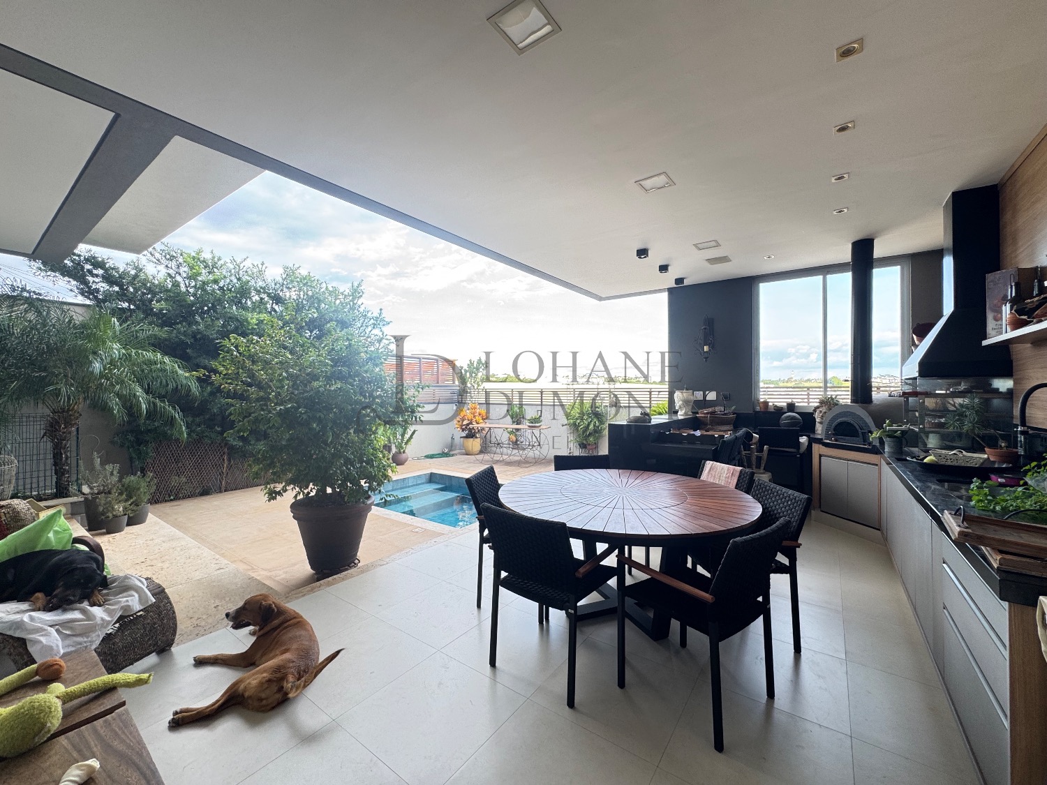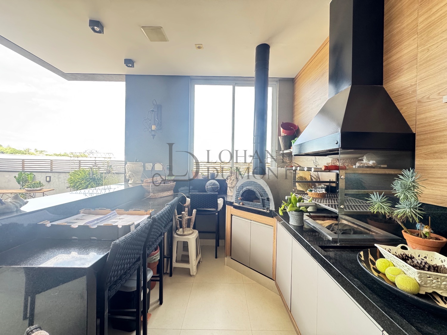 A área de lazer conta com espaço gourmet com churrasqueira e forno de pizza, piscina aquecida e vestiário. O imóvel também dispõe de escritório mobiliado, despensa, depósito e quatro vagas de garagem.