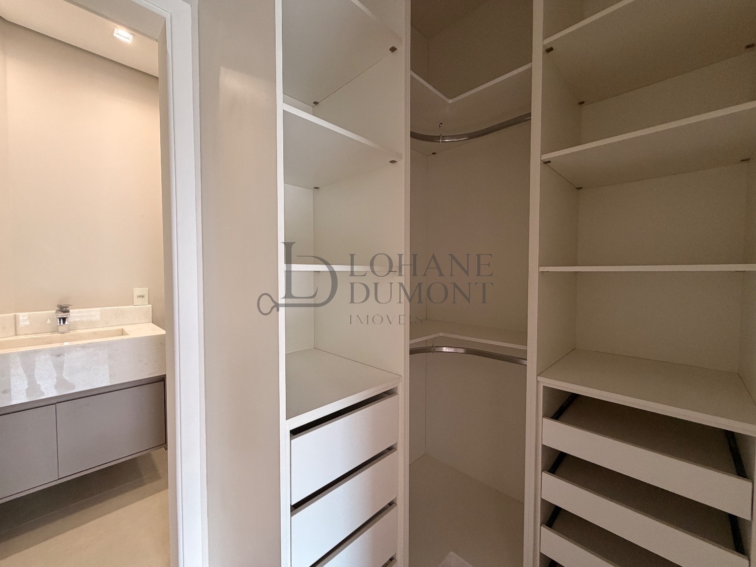 O imóvel apresenta três suítes amplas, todas com armários planejados e excelente acabamento, garantindo organização e funcionalidade no dia a dia.