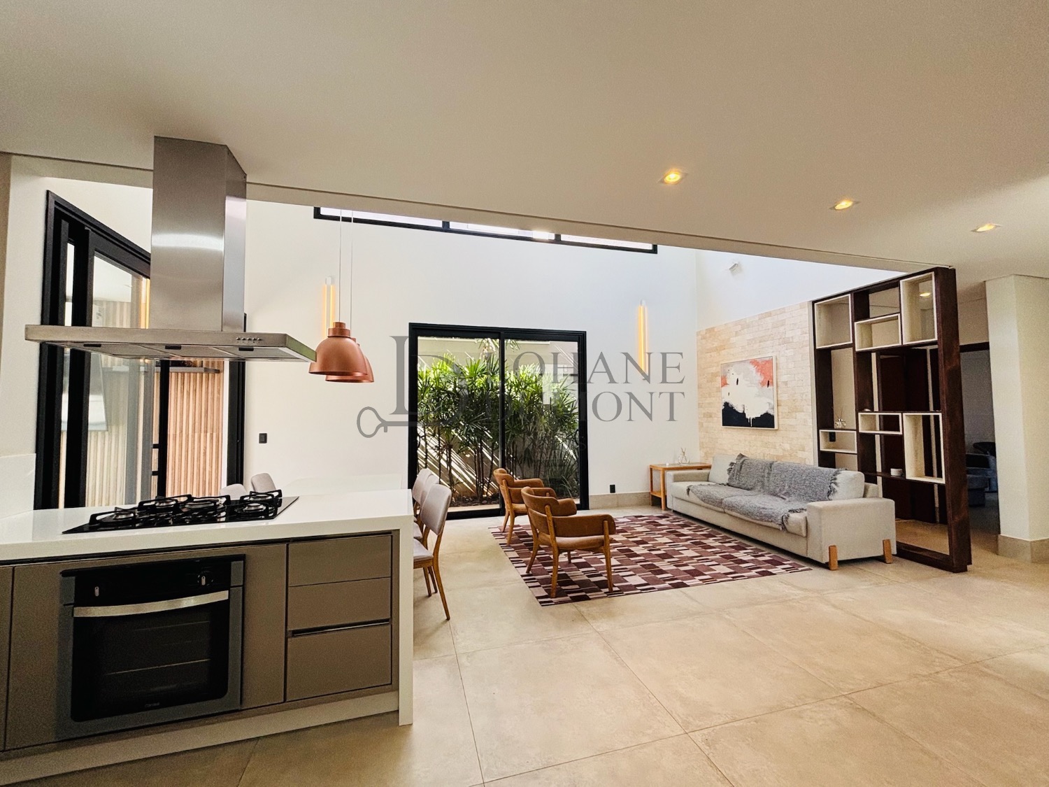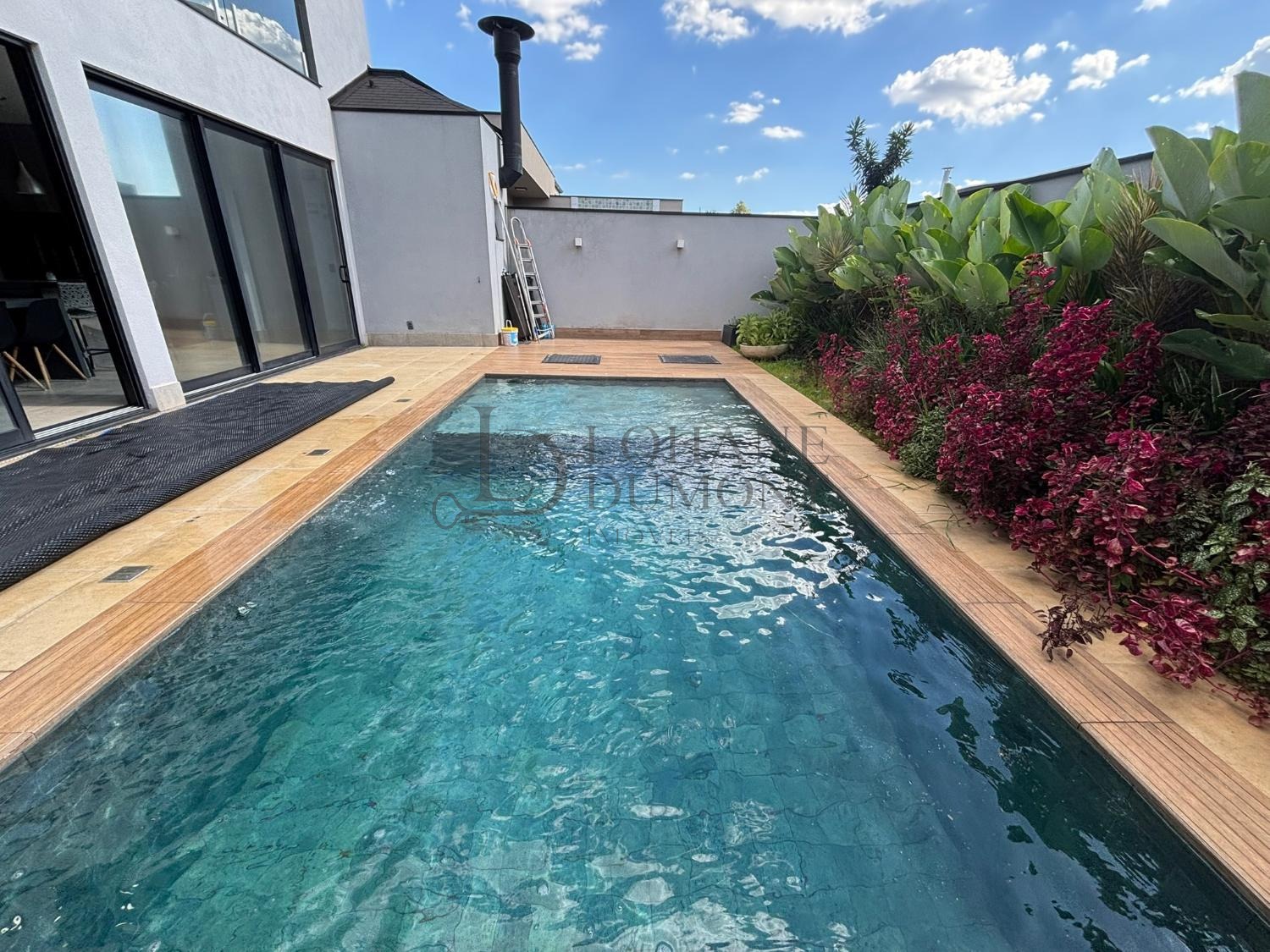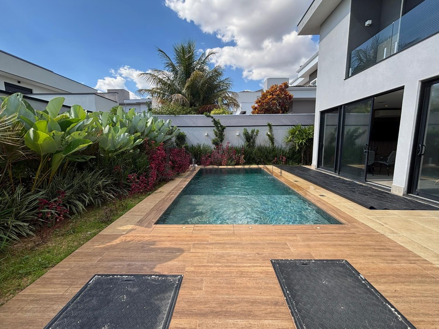 Esta casa é moderna e espaçosa e nos fundos da casa , há uma piscina ladeada por um projeto paisagístico que conta com plantas tropicais, criando um ambiente convidativo. somando-se a isto, também tem um projeto acústico associado.