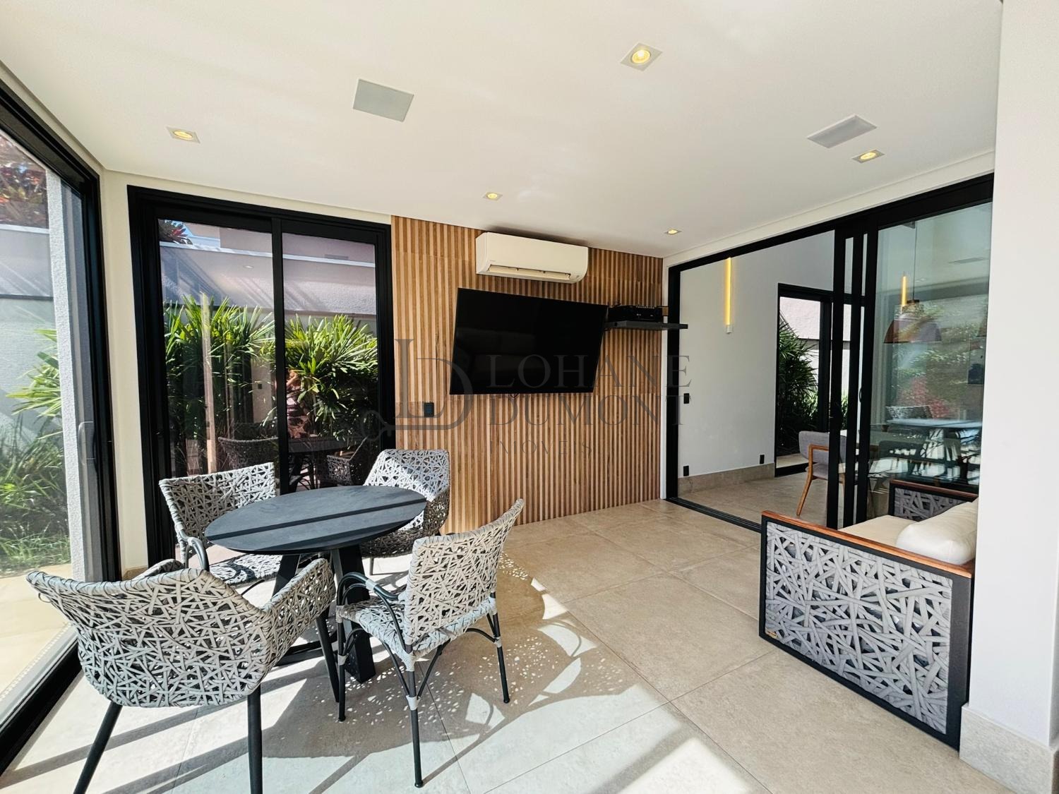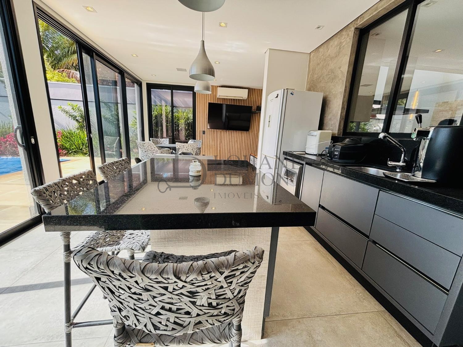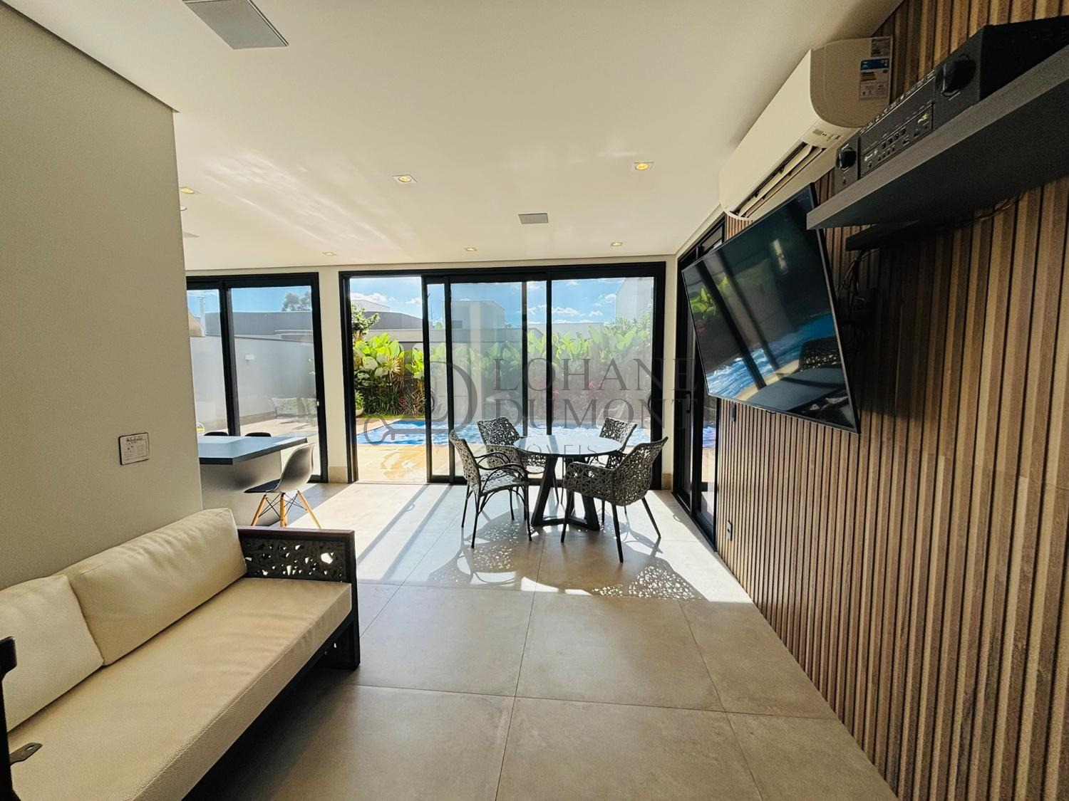 Caixas de som garantem um ambiente um ambiente agradável. É o refúgio perfeito para quem aprecia a convivência ao ar livre e o conforto de um lar contemporâneo, sem perder o conforto.