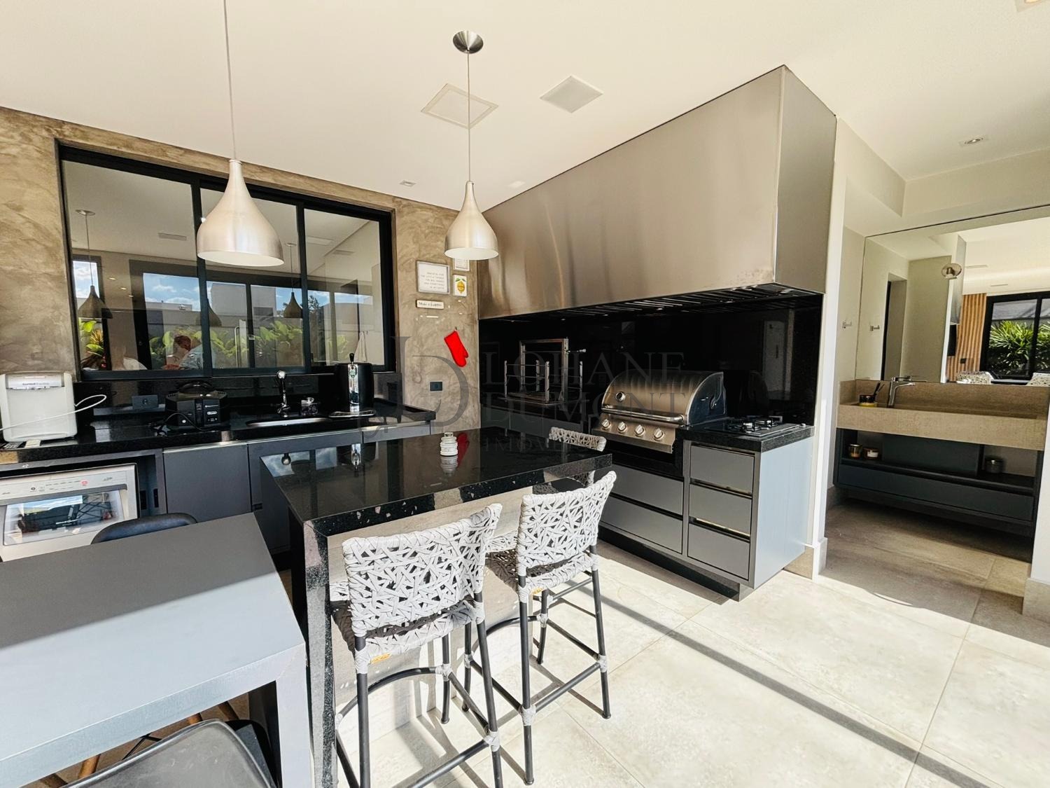 Com 295m² de área construída distribuídos em escritório, sala de estar/tv, jantar, cozinha, despensa, área gourmet equipada com churrasqueira, choppeira, e ar condicionado.