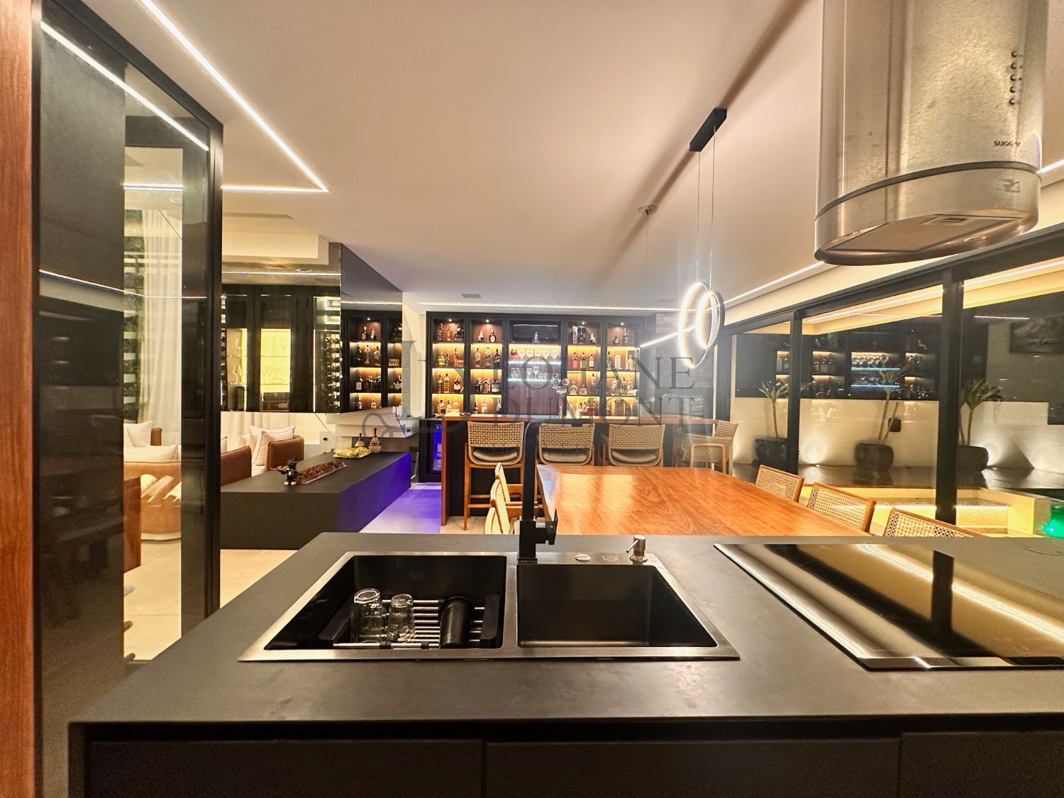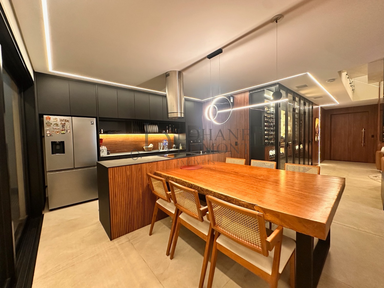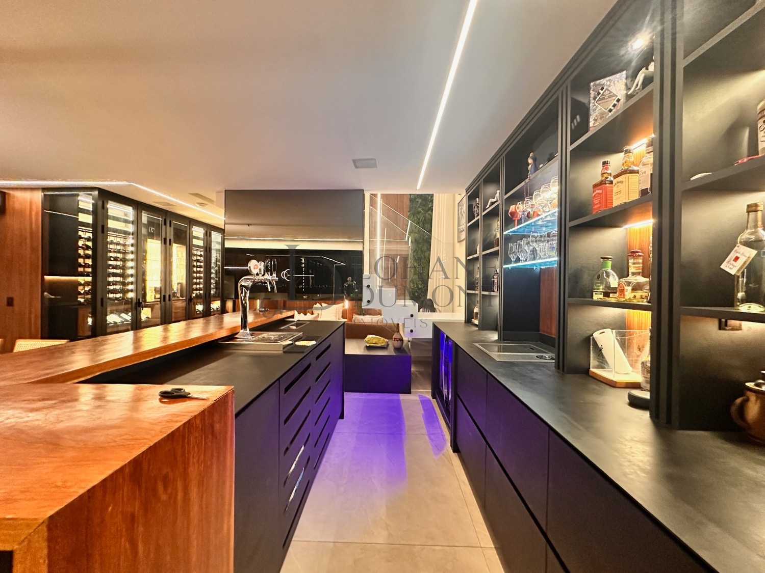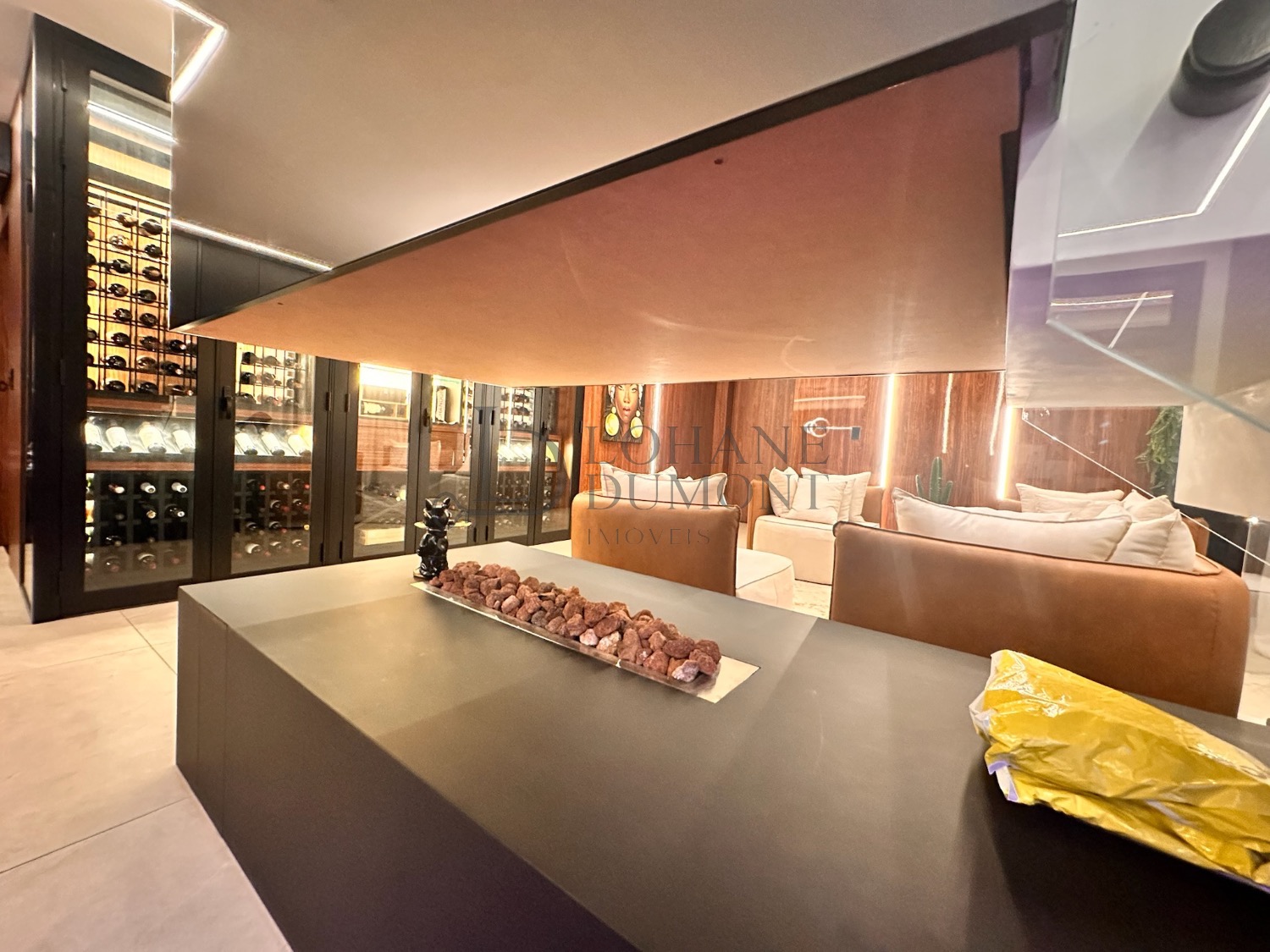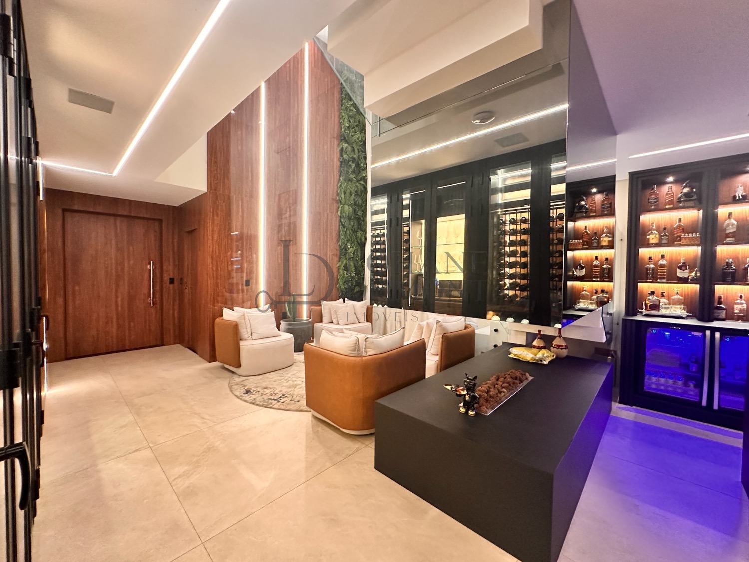 Um projeto contemporâneo que combina elegância, tecnologia e um lazer digno de resort. Logo na entrada, o living com pé-direito duplo, iluminação natural abundante e uma adega extensa para exposição de vinhos cria um ambiente imponente e acolhedor, perfeito para receber com estilo.