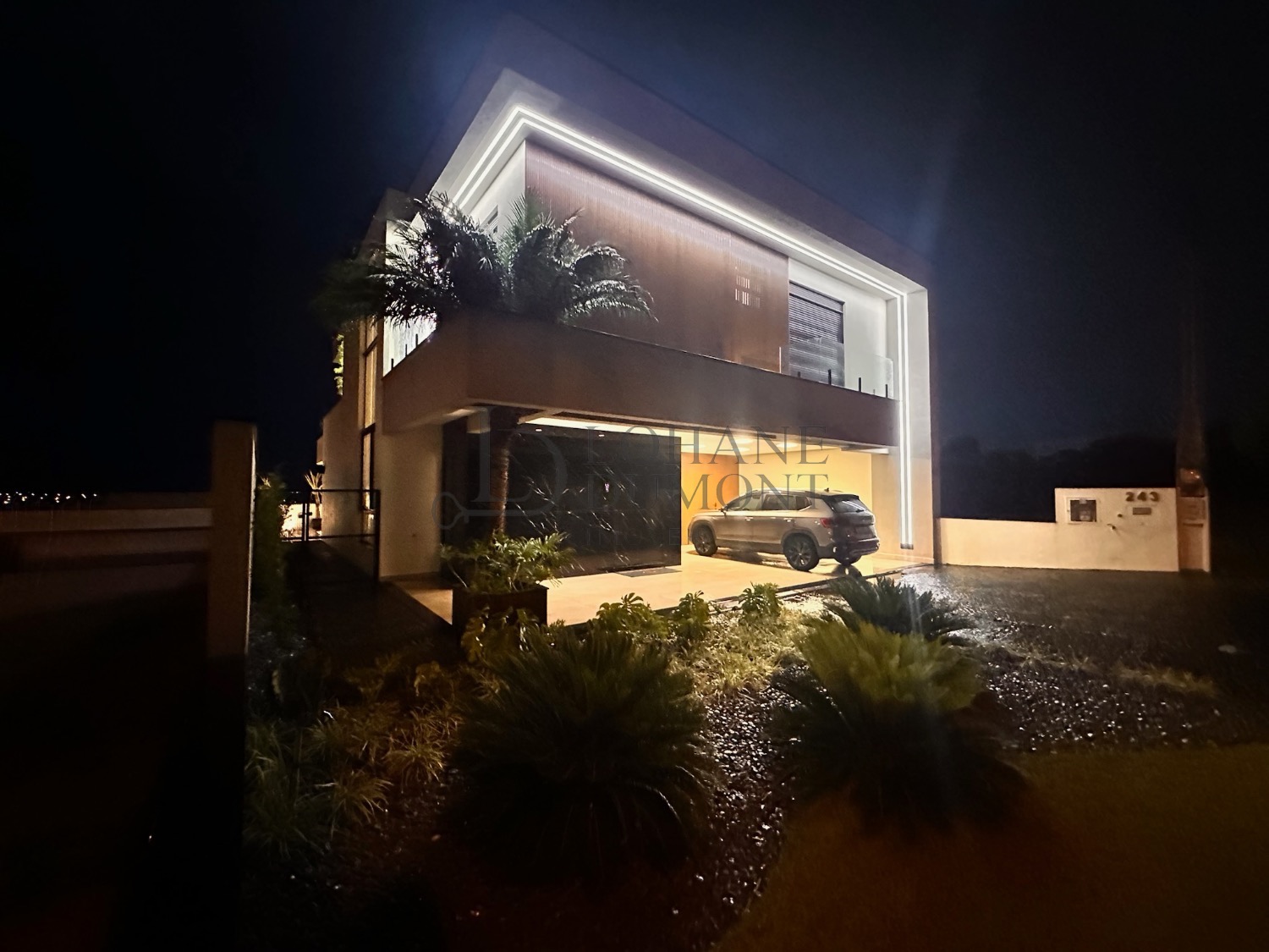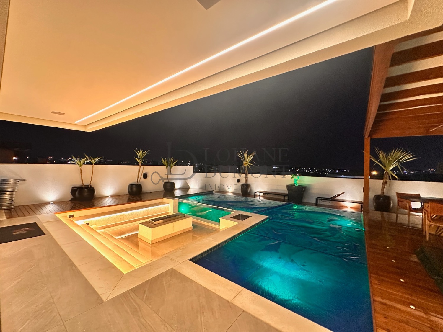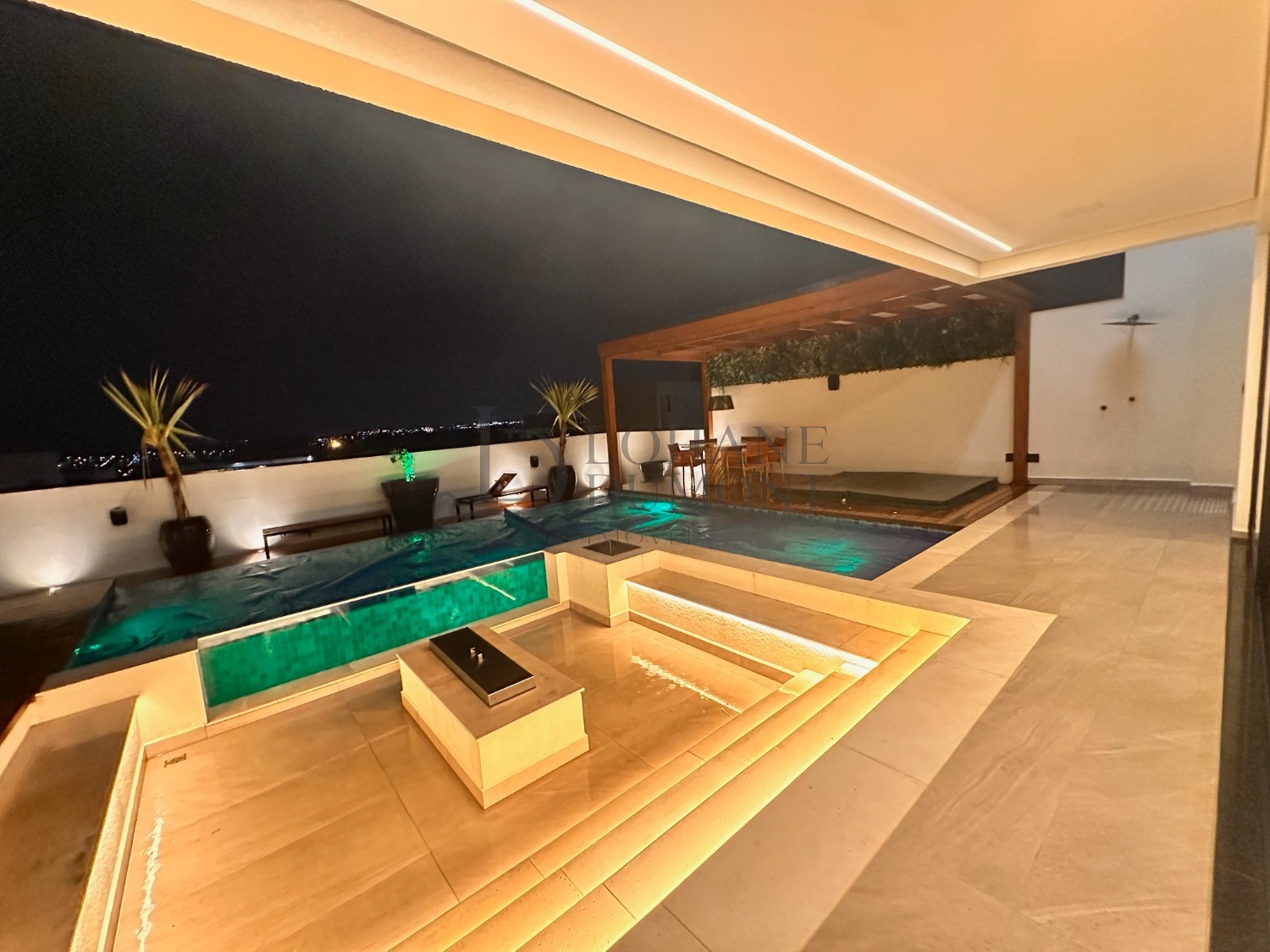 O lazer se completa com piscina de borda de vidro, spa, fogo de chão, deck, iluminação e vista aberta para o horizonte, proporcionando uma experiência única onde é possível relaxar, apreciar o cenário e sentir que a casa literalmente “abraça”, formando um cenário digno de resort, perfeito para momentos especiais com família e amigos.