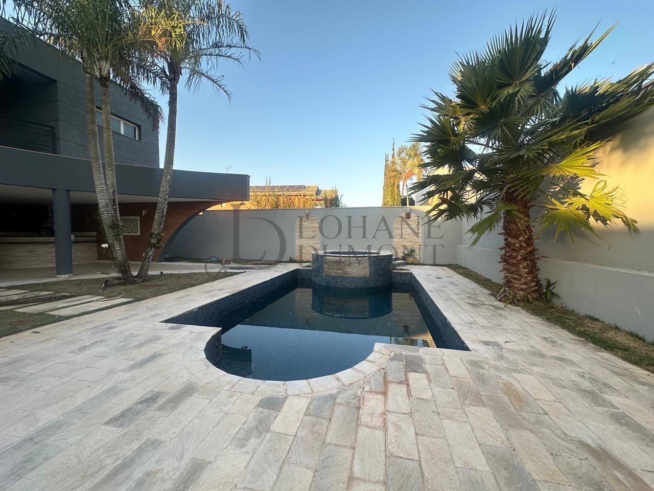 Com 560m² de construção em um terreno de 760m², são 5 suítes (sendo uma reversível, no pavimento térreo) e a suíte máster com lareira e banheira de hidromassagem, 2 salas de estar (uma com lareira), 2 salas de jantar, lavabo, 1 banheiro externo e 1 social, piscina aquecida com spa e área gourmet.