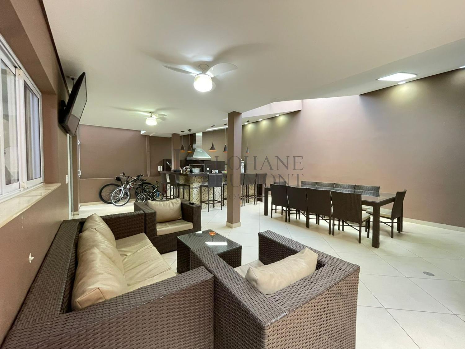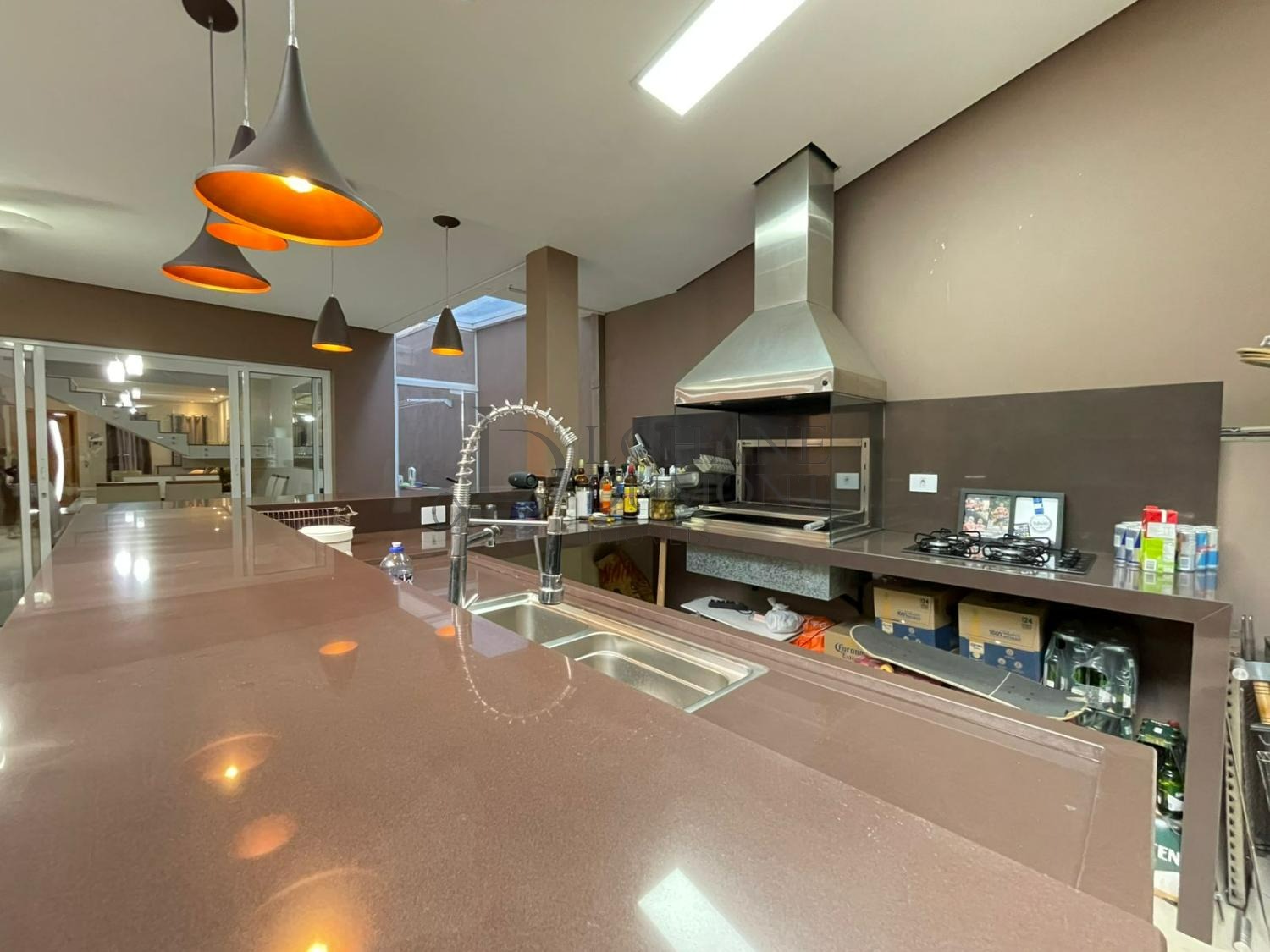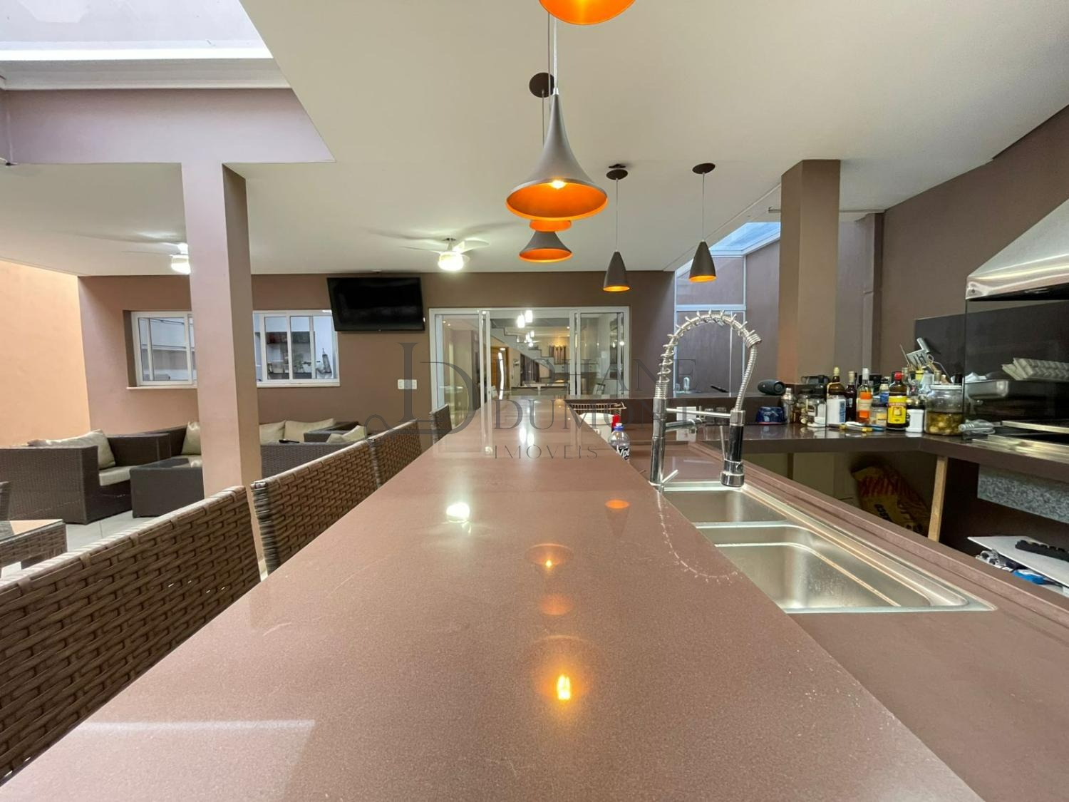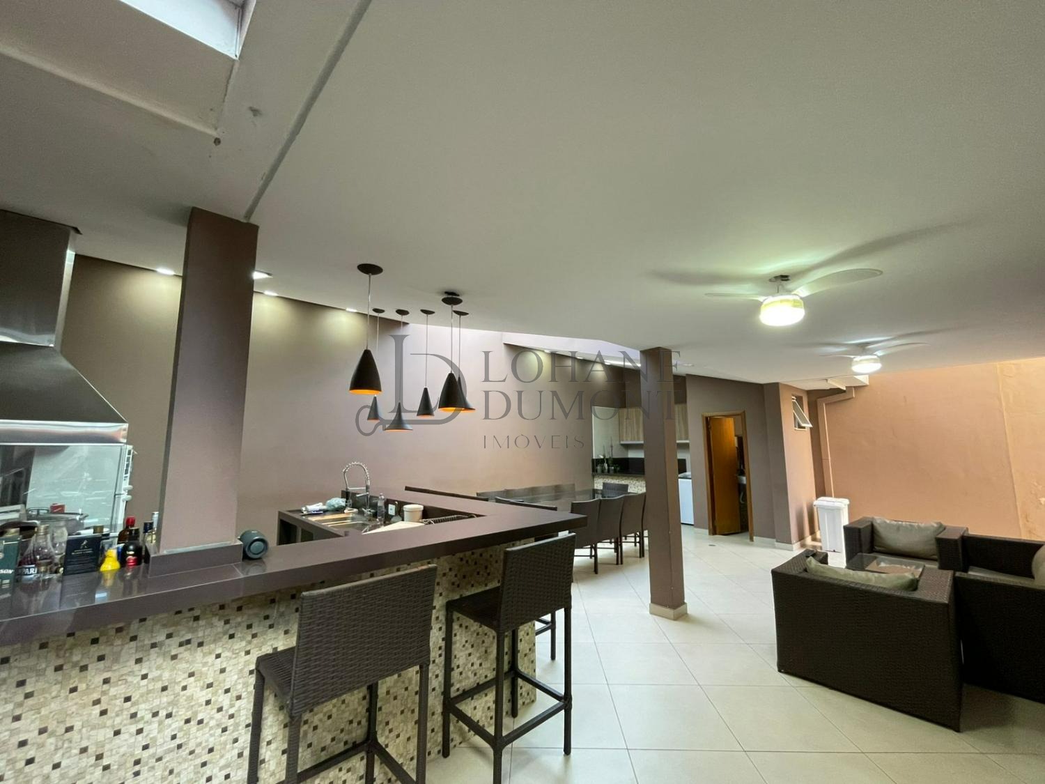 Um dos grandes destaques é o espaço gourmet, equipado com churrasqueira, bancada e claraboia de vidro no teto, que proporciona excelente iluminação natural e torna o ambiente ainda mais agradável para receber amigos e familiares. O quintal espaçoso e harmonioso complementa a área de convivência, ideal para momentos de lazer e descontração.