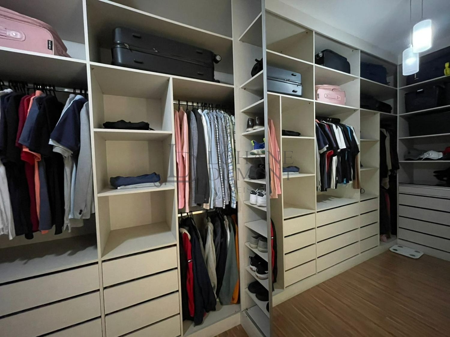 O sobrado possui armários planejados em todos os ambientes, além de piso laminado e porcelanato, unindo conforto, durabilidade e estética.