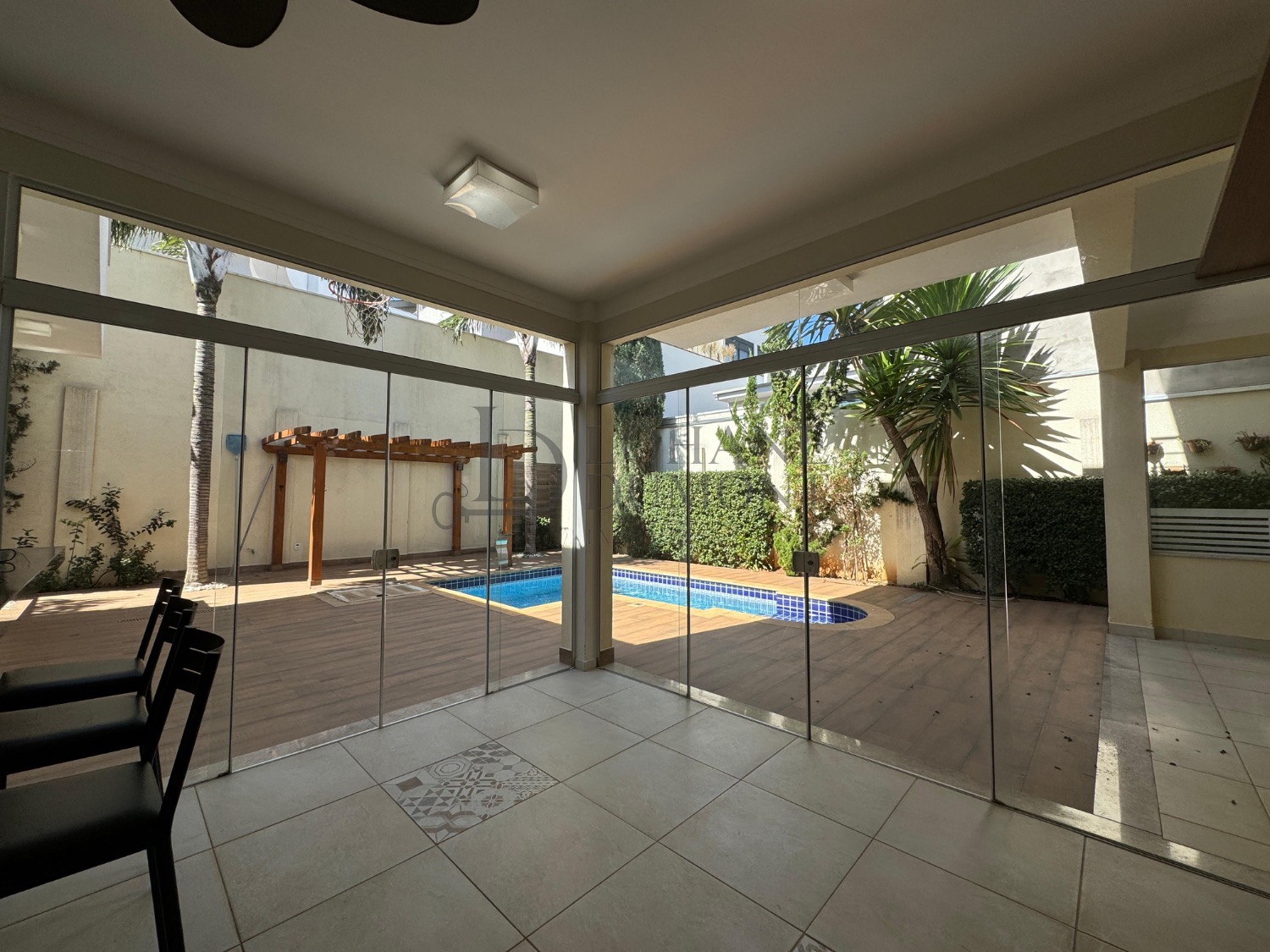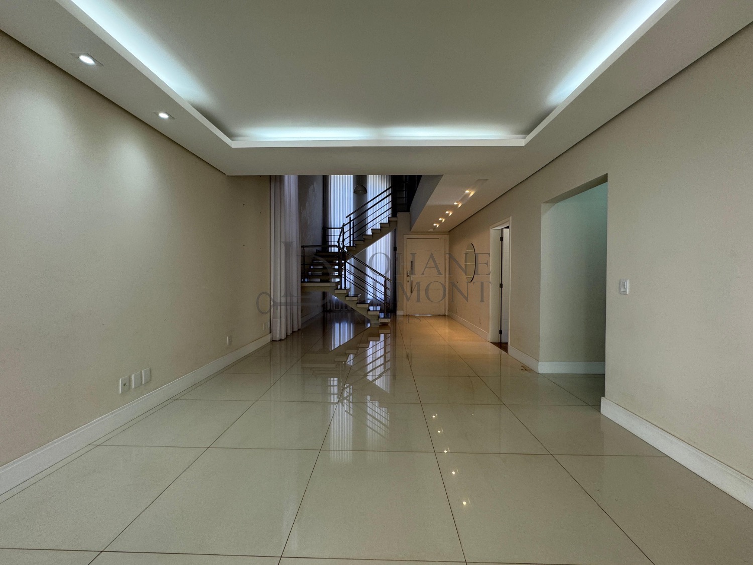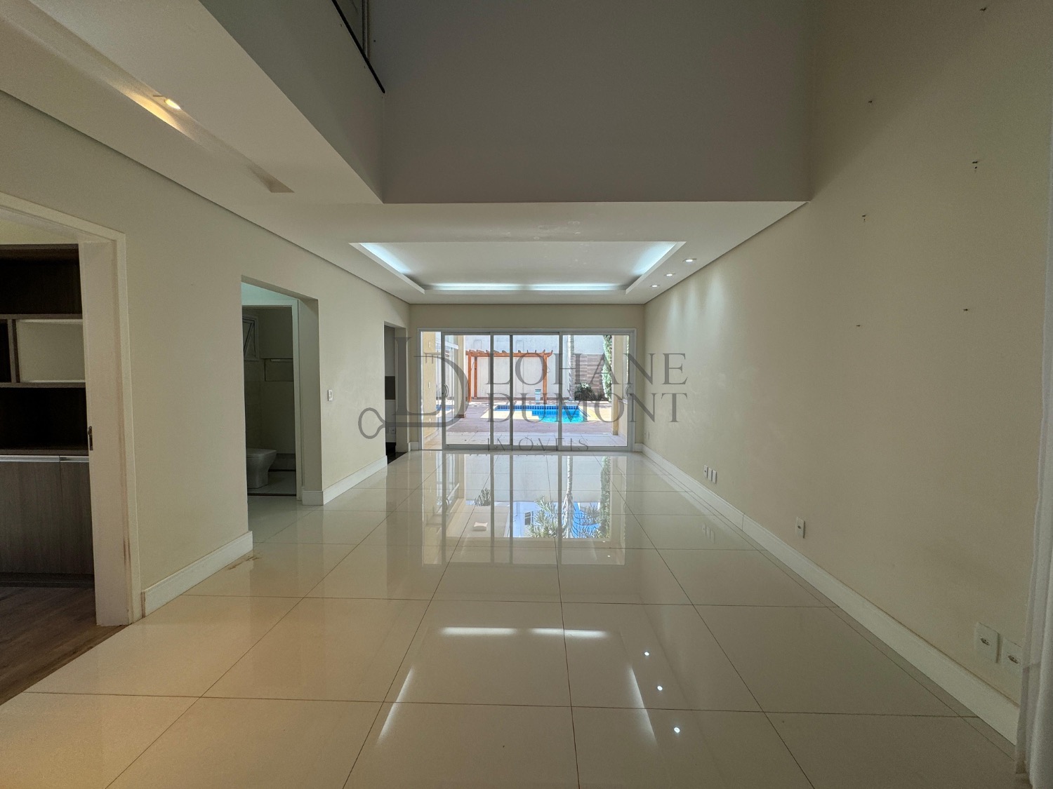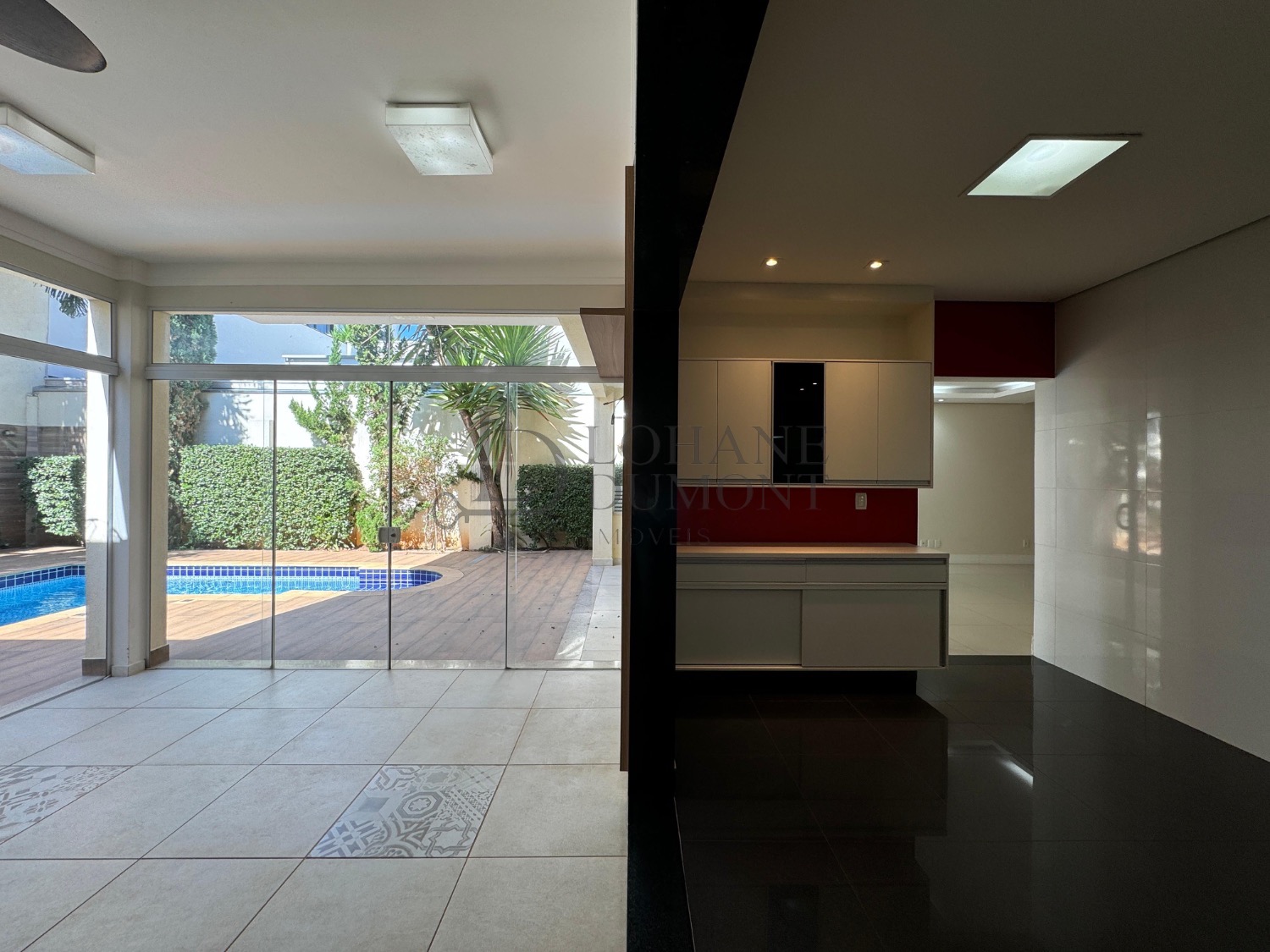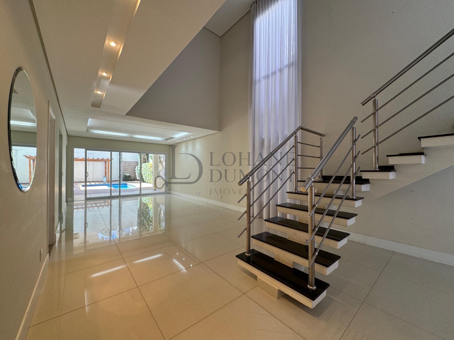 Logo na entrada, o jardim frontal muito bem cuidado já antecipa a elegância do projeto. Ao entrar, a sala com pé-direito alto e espaço para três ambientes cria uma sensação de amplitude e sofisticação, com excelente iluminação natural e acabamento refinado. A casa conta ainda com escritório, ideal para home office, além de home theater reservado, perfeito para momentos de descanso e lazer com privacidade.