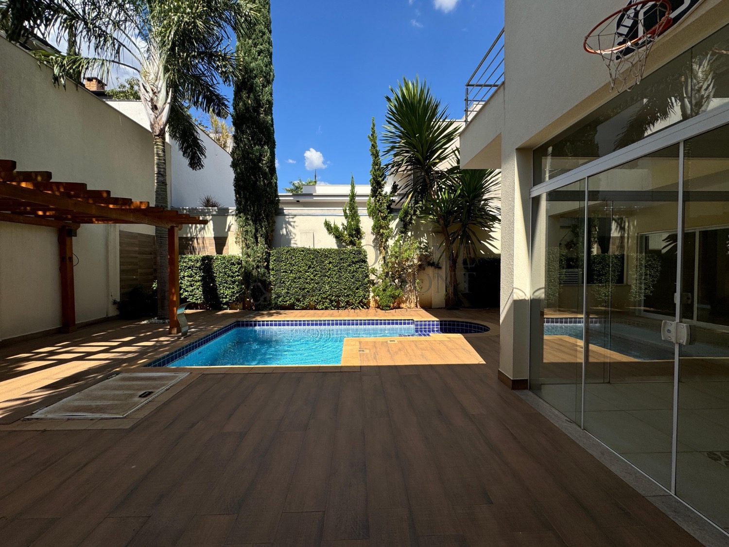 O lazer é um verdadeiro espetáculo. A área gourmet é totalmente integrada à área externa e se conecta de forma harmoniosa com a piscina e o amplo quintal, que conta com paisagismo exuberante e um pergolado charmoso próximo à piscina, criando um cenário perfeito para receber amigos e viver momentos especiais. Para completar, a área de lazer ainda oferece uma cesta de basquete, trazendo um toque de diversão e estilo de vida para a rotina da família.