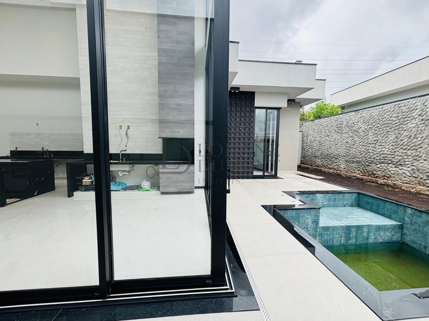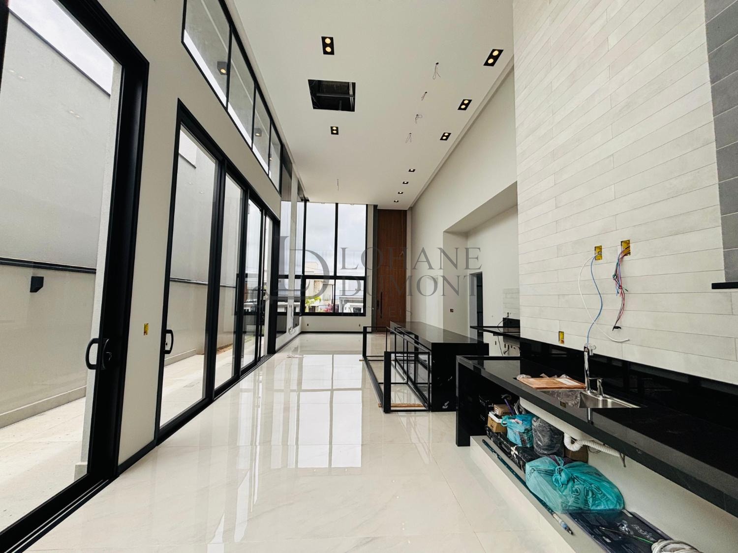 Pé direito duplo em toda a extensão do living, cozinha planejada, churrasqueira, piscina, 4 suítes completas com closet e ar condicionado, lavanderia, aquecimento solar, e 4 vagas de garagens.
