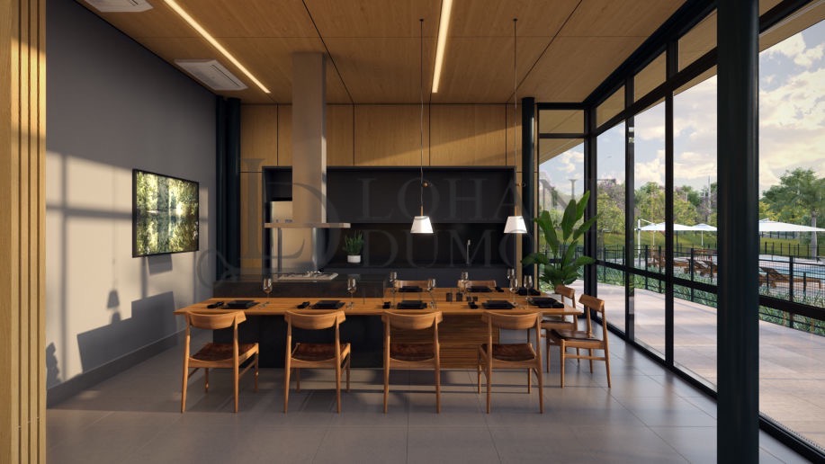 No pavimento térreo, o living para dois ambientes com pé-direito duplo impressiona pela amplitude e luminosidade, criando uma atmosfera elegante e acolhedora. A integração entre sala de estar, sala de jantar e cozinha gourmet proporciona fluidez ao dia a dia e torna o espaço perfeito para receber. Ainda no térreo, o imóvel conta com suíte reversível, ideal para hóspedes ou home office, além de lavabo, escritório, depósito privativo e área de serviço.