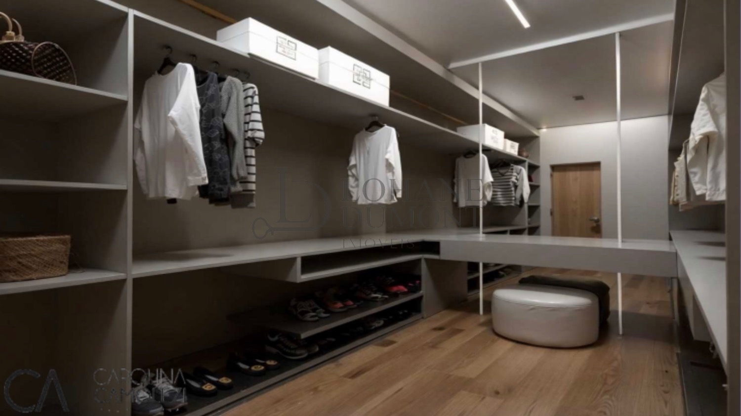Na área íntima, o imóvel dispõe de 4 suítes amplas, todas com armários planejados e closet, totalizando 6 banheiros no imóvel, incluindo lavabos e banheiros de apoio. A suíte master se destaca pelo amplo closet e acabamento refinado, oferecendo conforto, privacidade e sofisticação em cada detalhe.