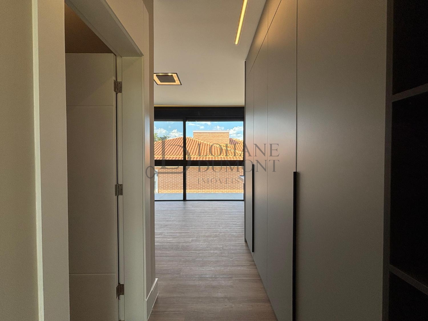 Aqui, no piso superior são 4 suítes amplas com planejados e closet e varanda, copa de apoio e hall de circulação.