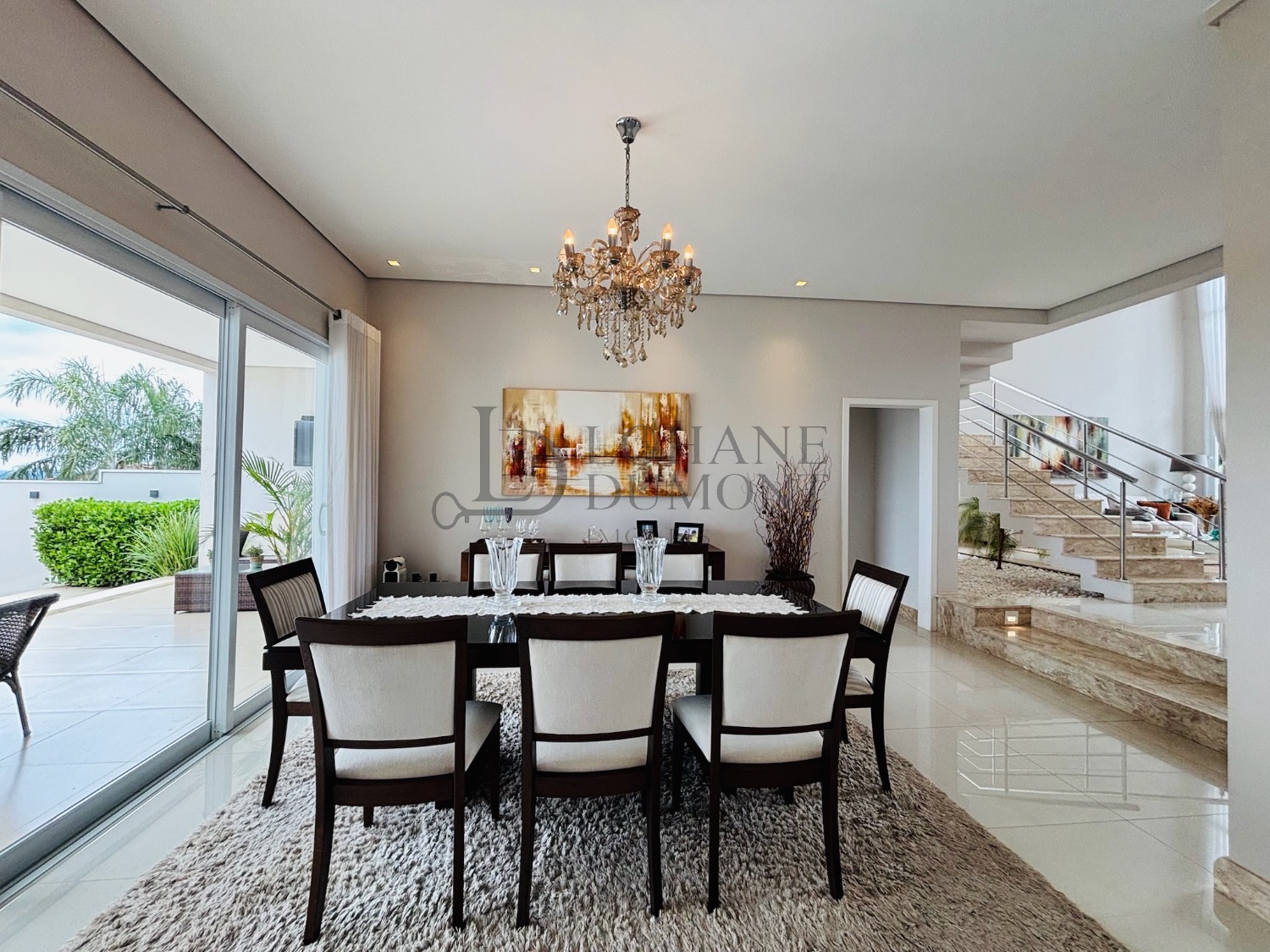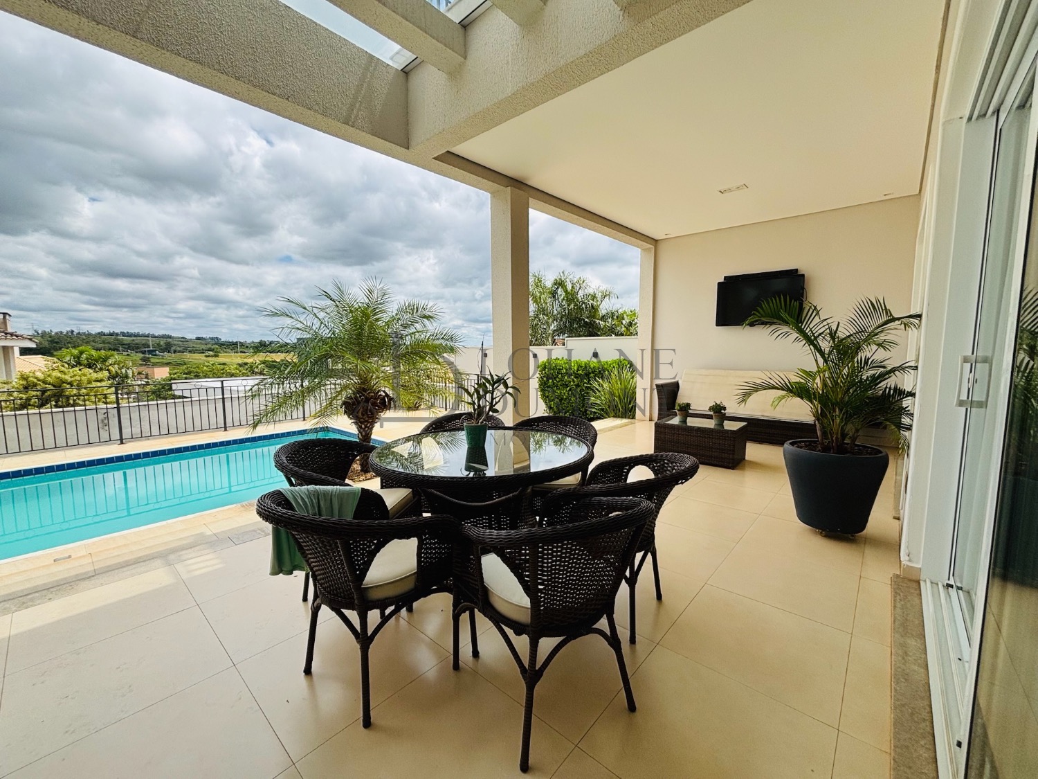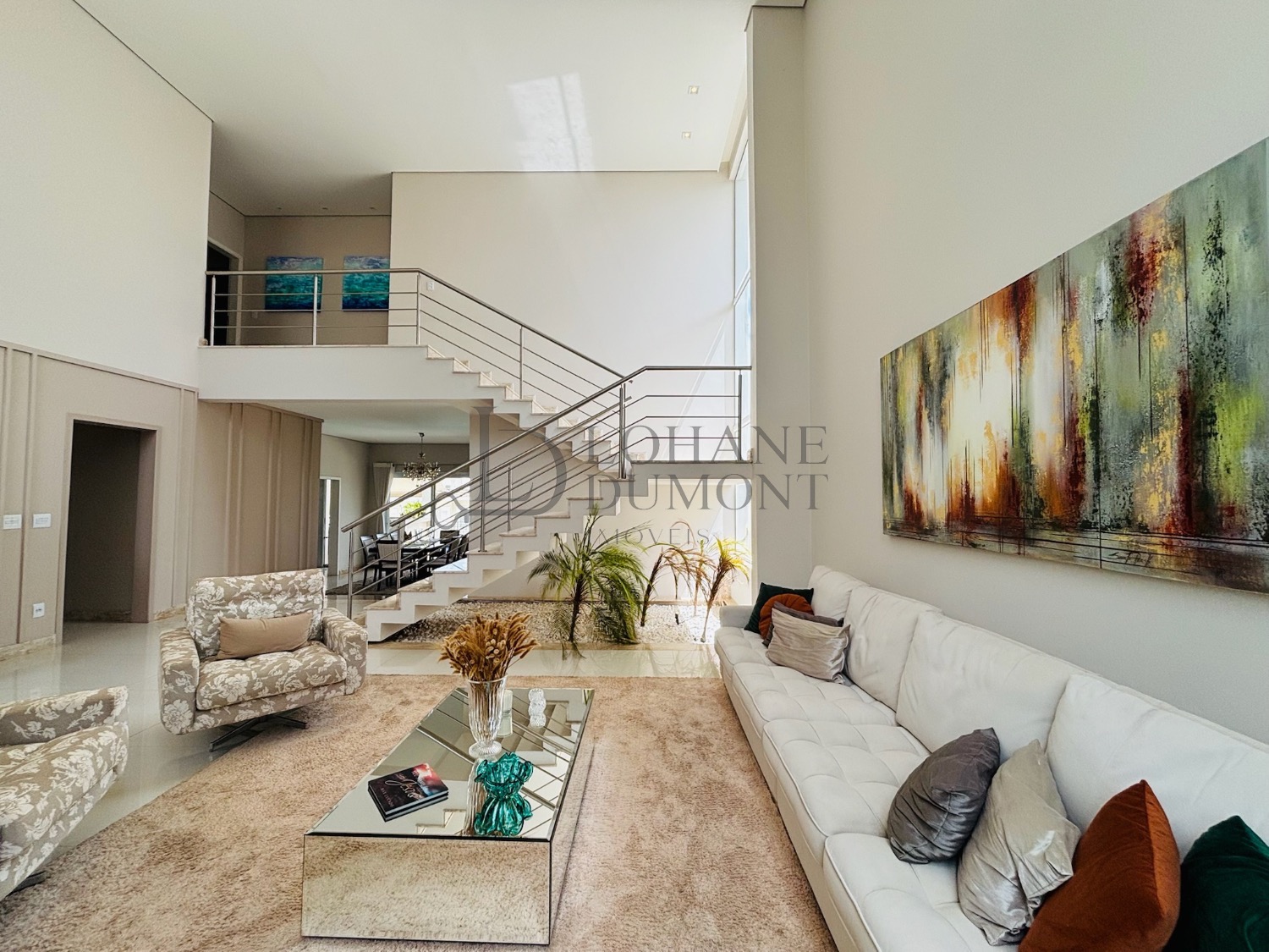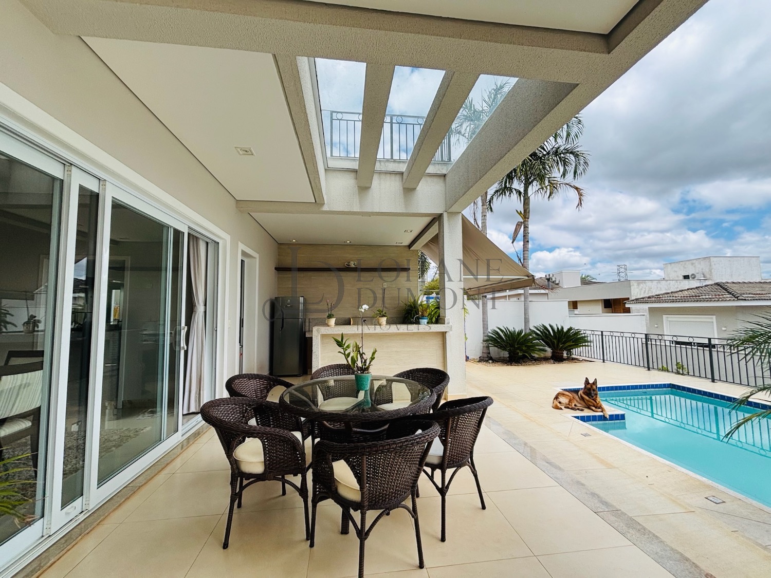 Sobrado com 4 suítes, sendo uma térrea e 3 no piso superior, duas delas com closet, todas com varanda e persianas automatizadas, escritório, sala de jantar, sala de TV, cozinha rica em armários planejados e um espaço gourmet com piscina, churrasqueira e um excelente espaço livre!