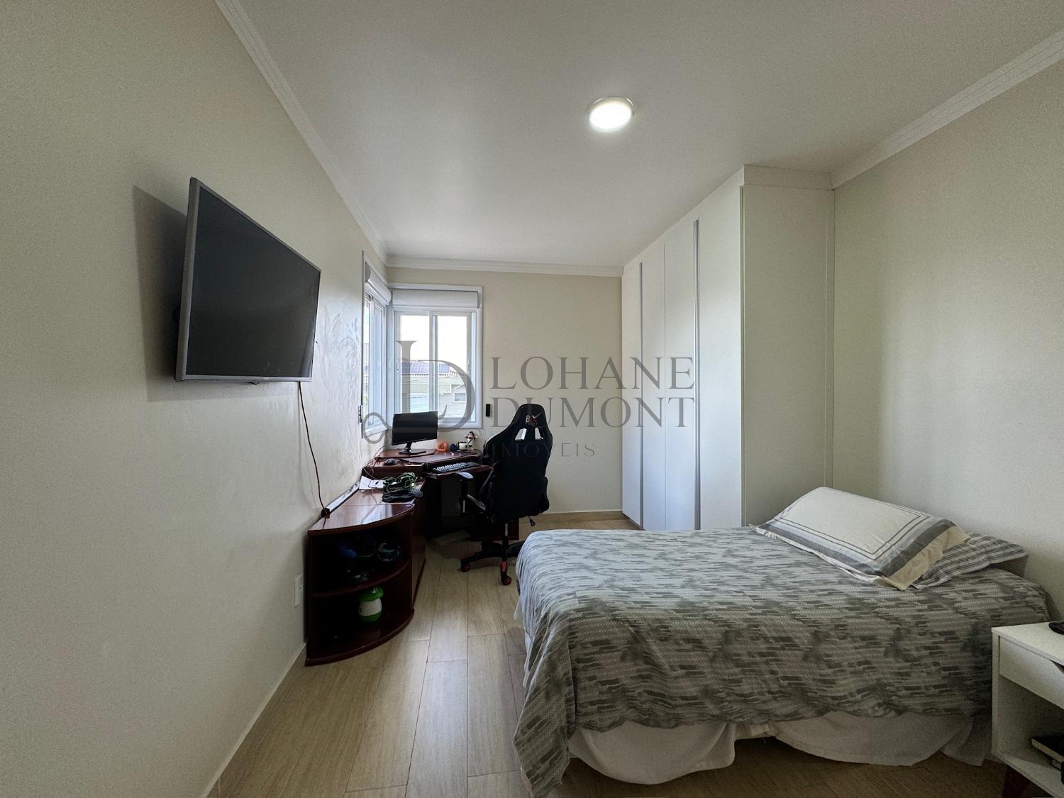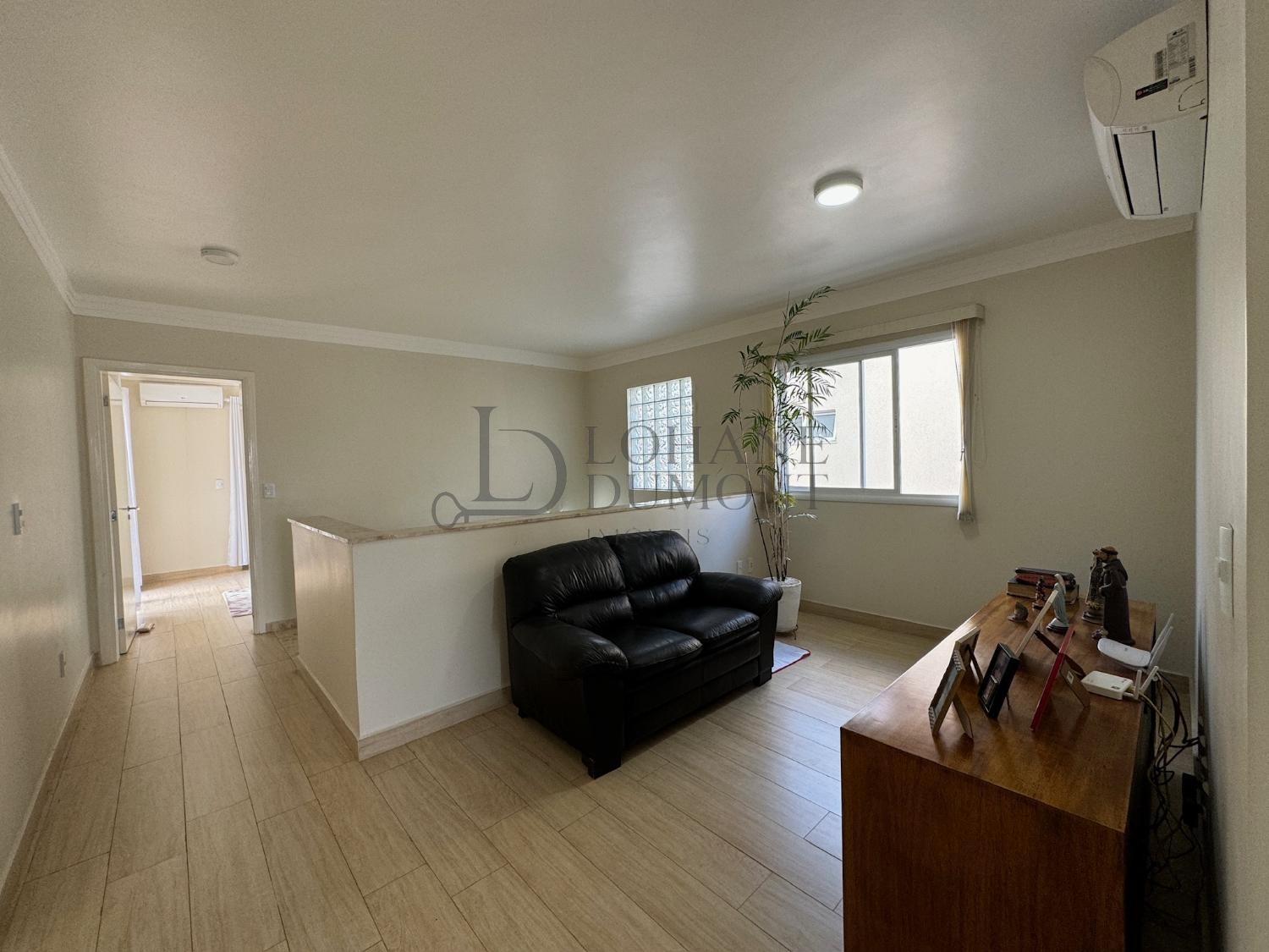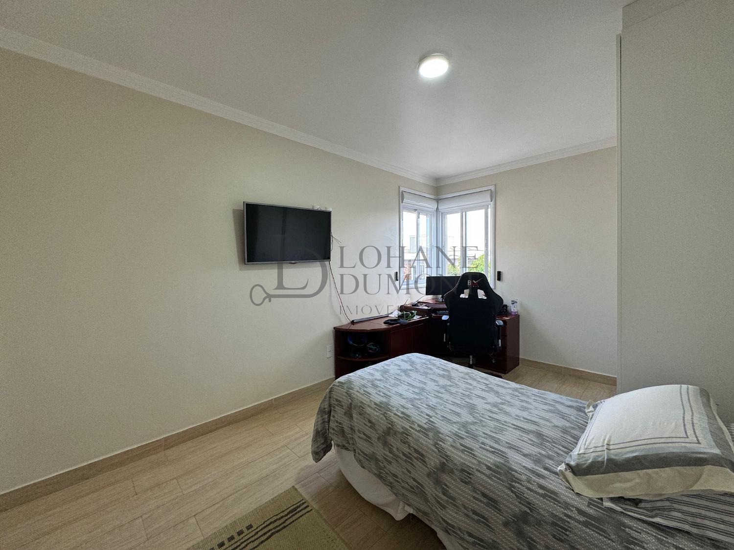 No pavimento superior há 4 amplas suítes com closet e ar condicionado, e um amplo espaço que pode servir de sala de tv, escritório ou até mesmo brinquedoteca.