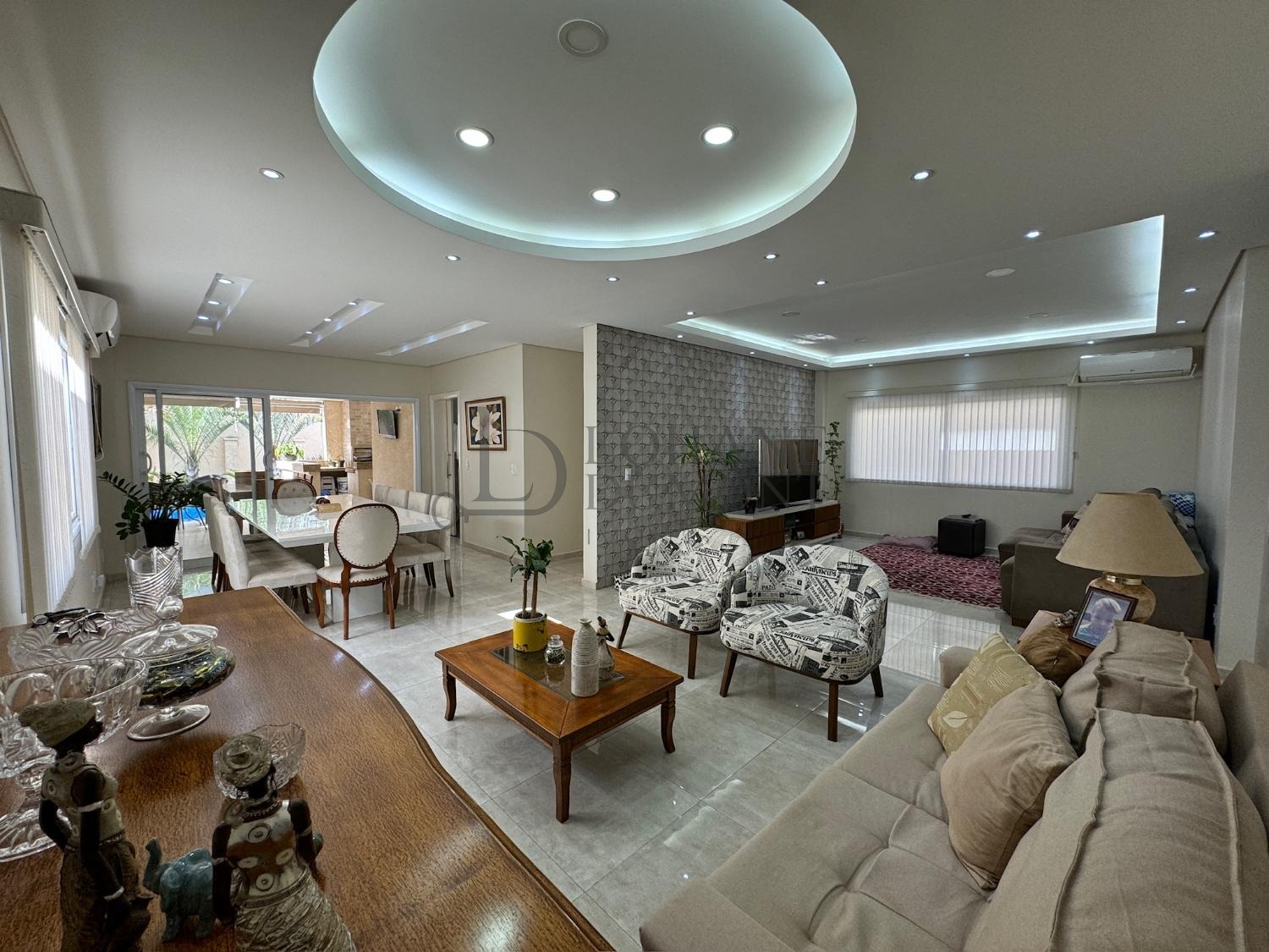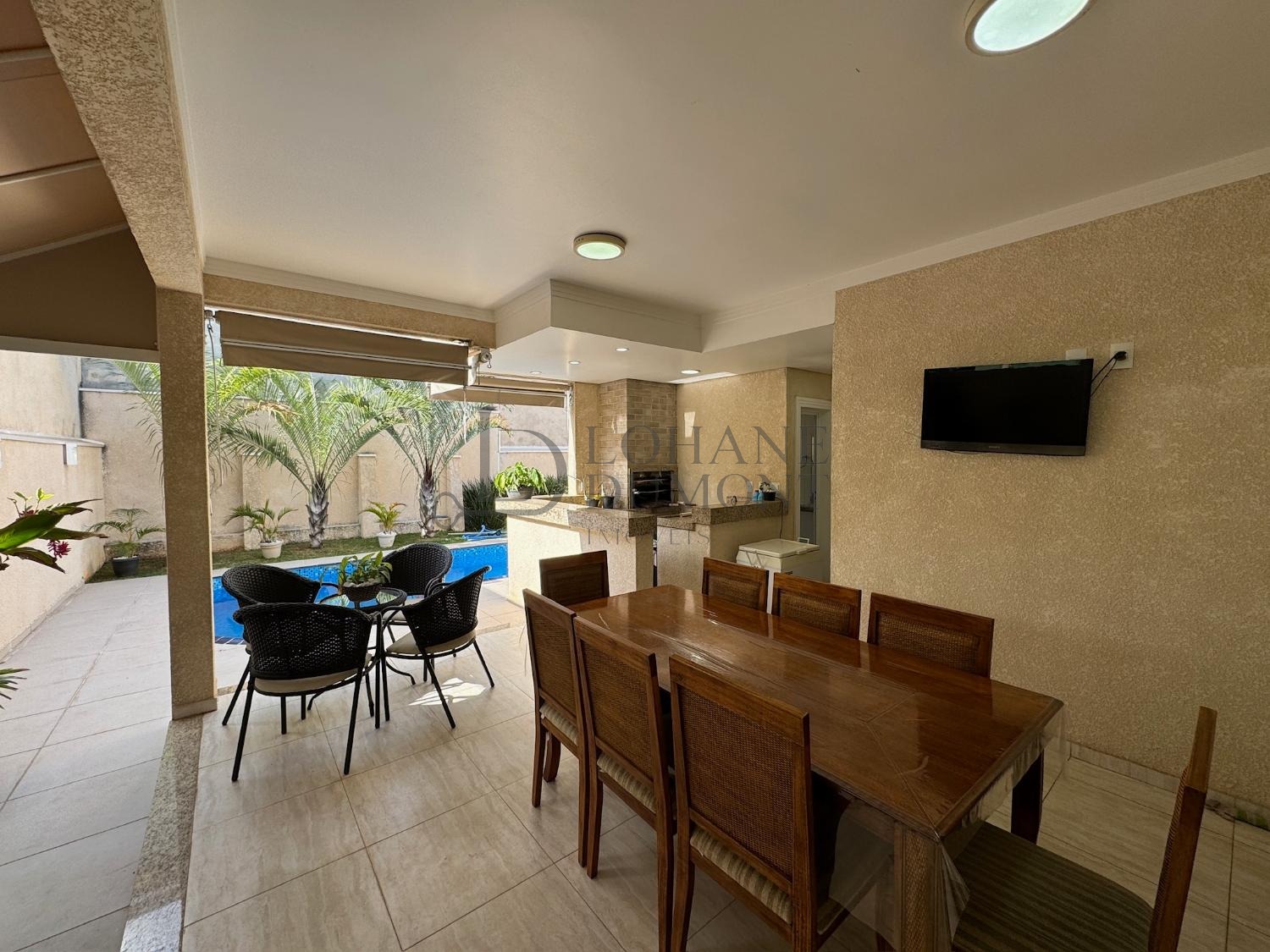 No pavimento térreo temos lavabo, adega, sala de tv, sala de estar integrada com jantar, cozinha completa, despensa, lavanderia, área gourmet completa com banheiro externo social, e piscina com sauna!