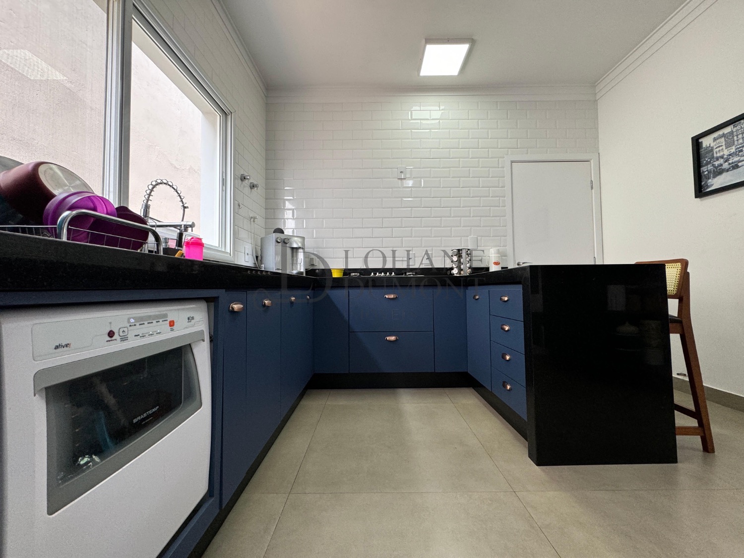 A cozinha é independente, totalmente equipada com armários planejados e eletrodomésticos, unindo funcionalidade e sofisticação.