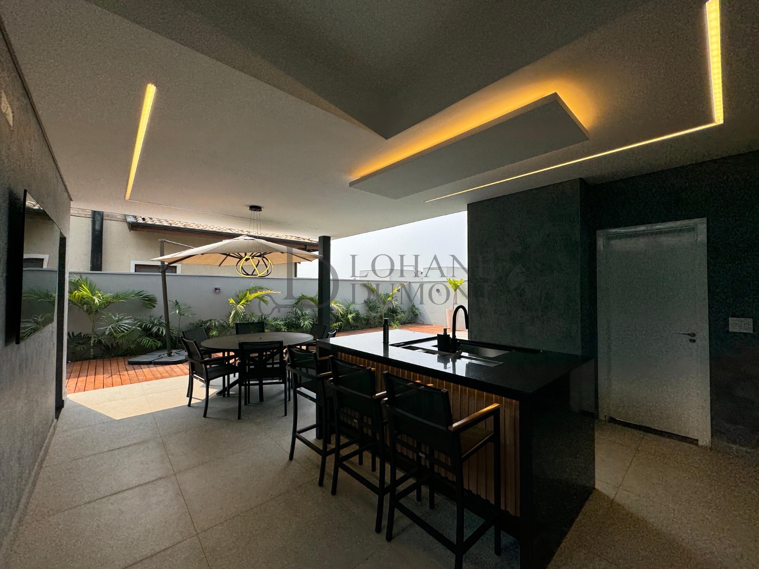 A área social oferece uma ampla sala para dois ambientes, com layout versátil e excelente iluminação natural, além de lavabo e uma suíte térrea que agrega praticidade ao dia a dia. O home theater espaçoso proporciona conforto e privacidade para momentos de entretenimento em família.