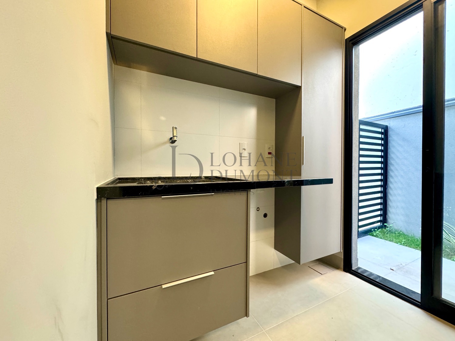 O imóvel dispõe ainda de lavanderia funcional, banheiro de apoio para a área externa e quatro vagas de garagem, garantindo praticidade no dia a dia.