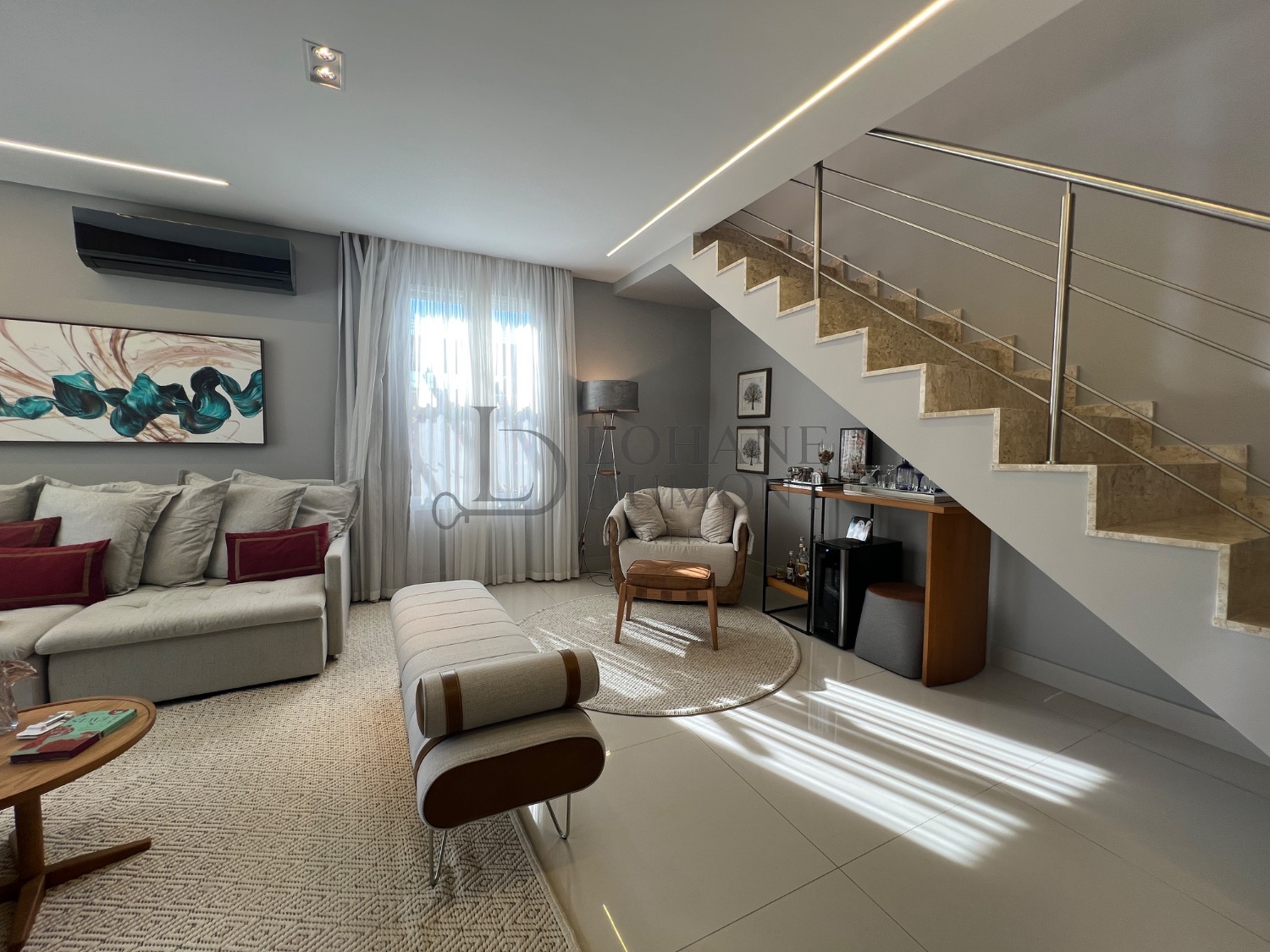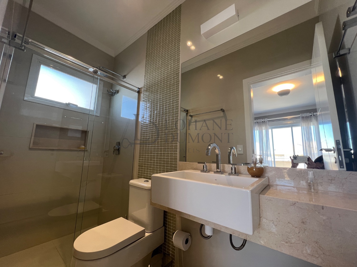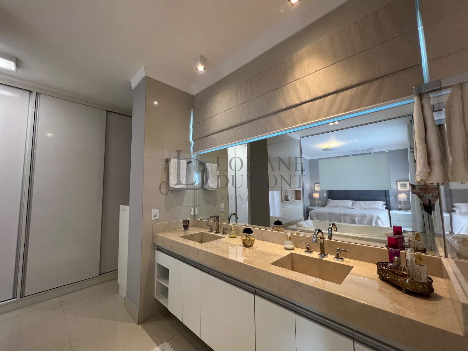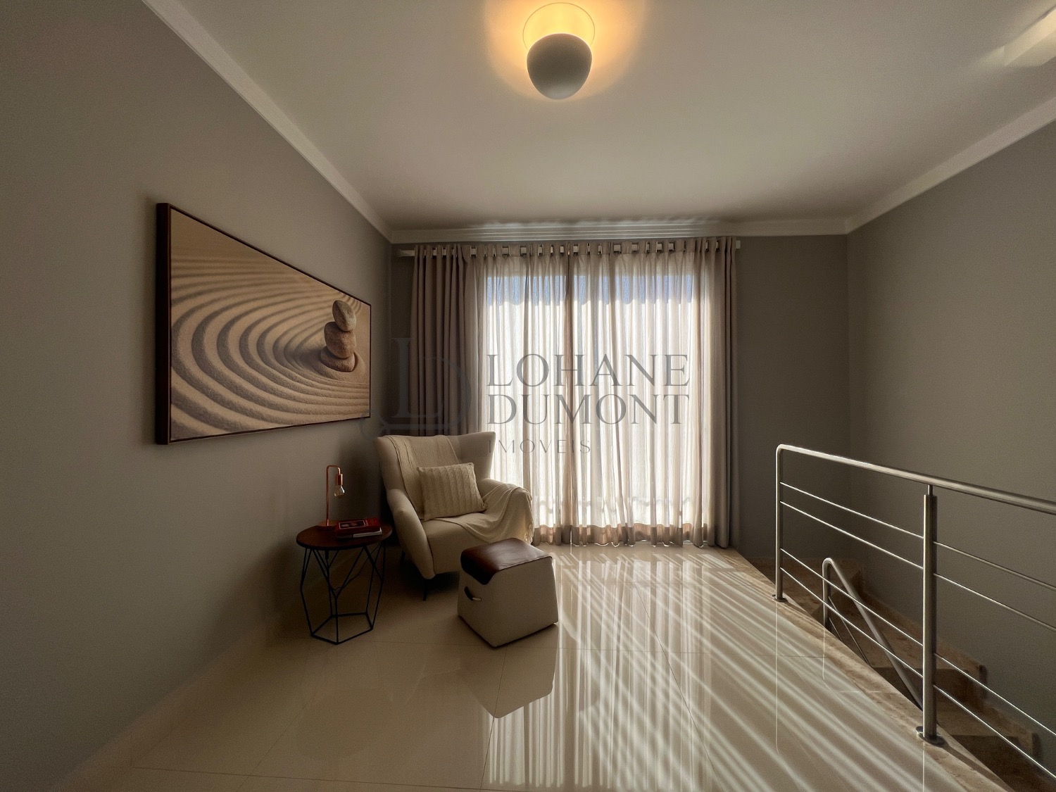 No andar superior encontram-se três suítes avarandadas, todas equipadas com armários planejados, persianas elétricas e ar-condicionado instalado. A suíte master se destaca pelo closet e pela banheira de hidromassagem, oferecendo um ambiente exclusivo de conforto e privacidade.